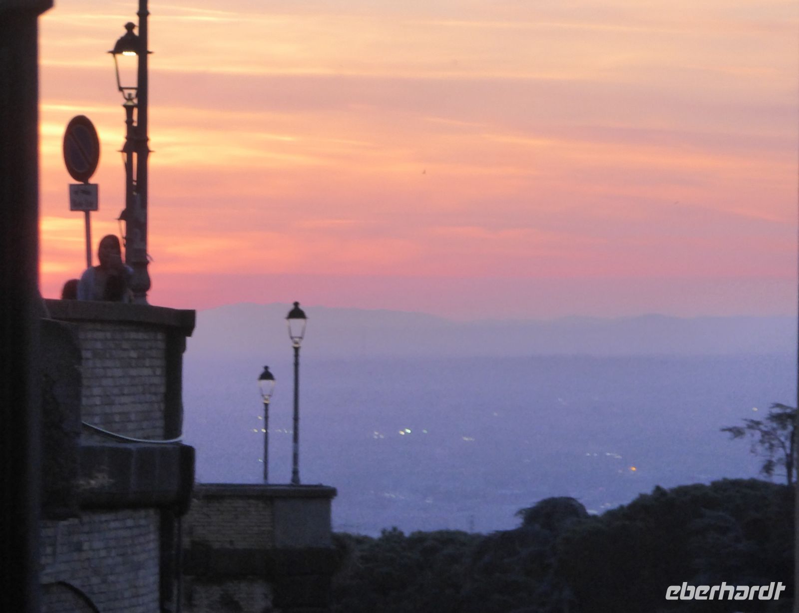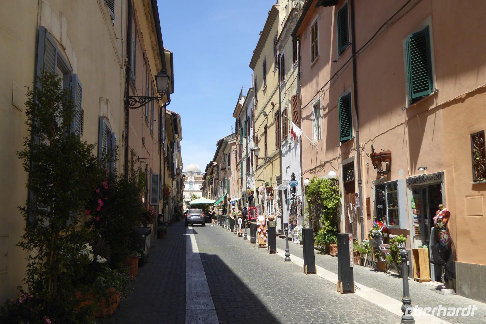 Zurück in Frascati bummelten wir noch durch die Straßen dieser so typischen italienischen Mittelstadt am Rande der Albaner Berge. Überregional bekannt ist die Region um Frascati für ihr ausgezeichnetes Weinanbaugebiet mit etwa 1700 Hektar Rebfläche. Der berühmte Frascati Wein entsteht aus den Rebsorten Greco Bianco, Trebbiano, und den weißen Malvasia Trauben und schmeckt am Besten im offenen Ausschank einer kleinen Hosteria!