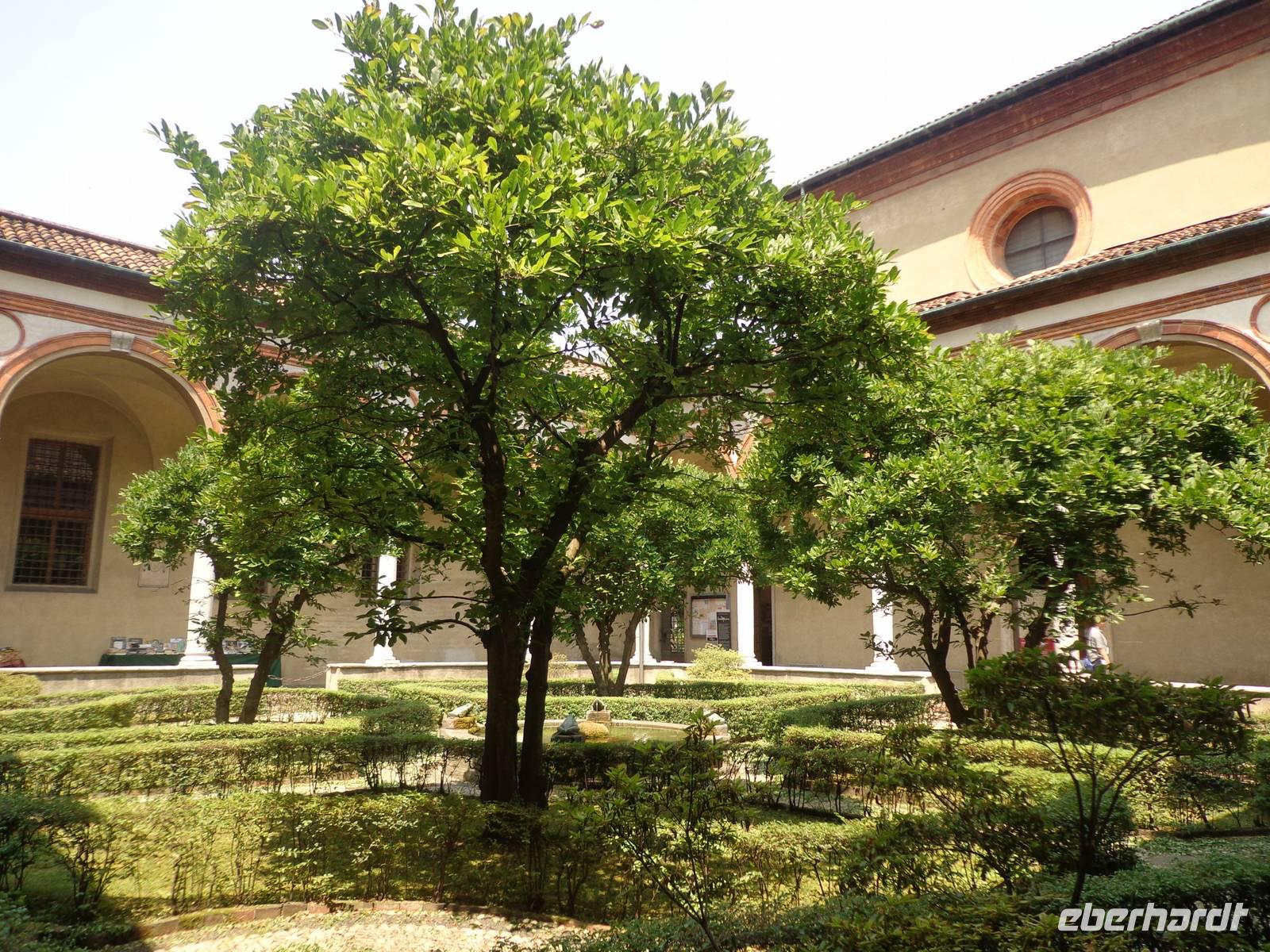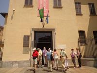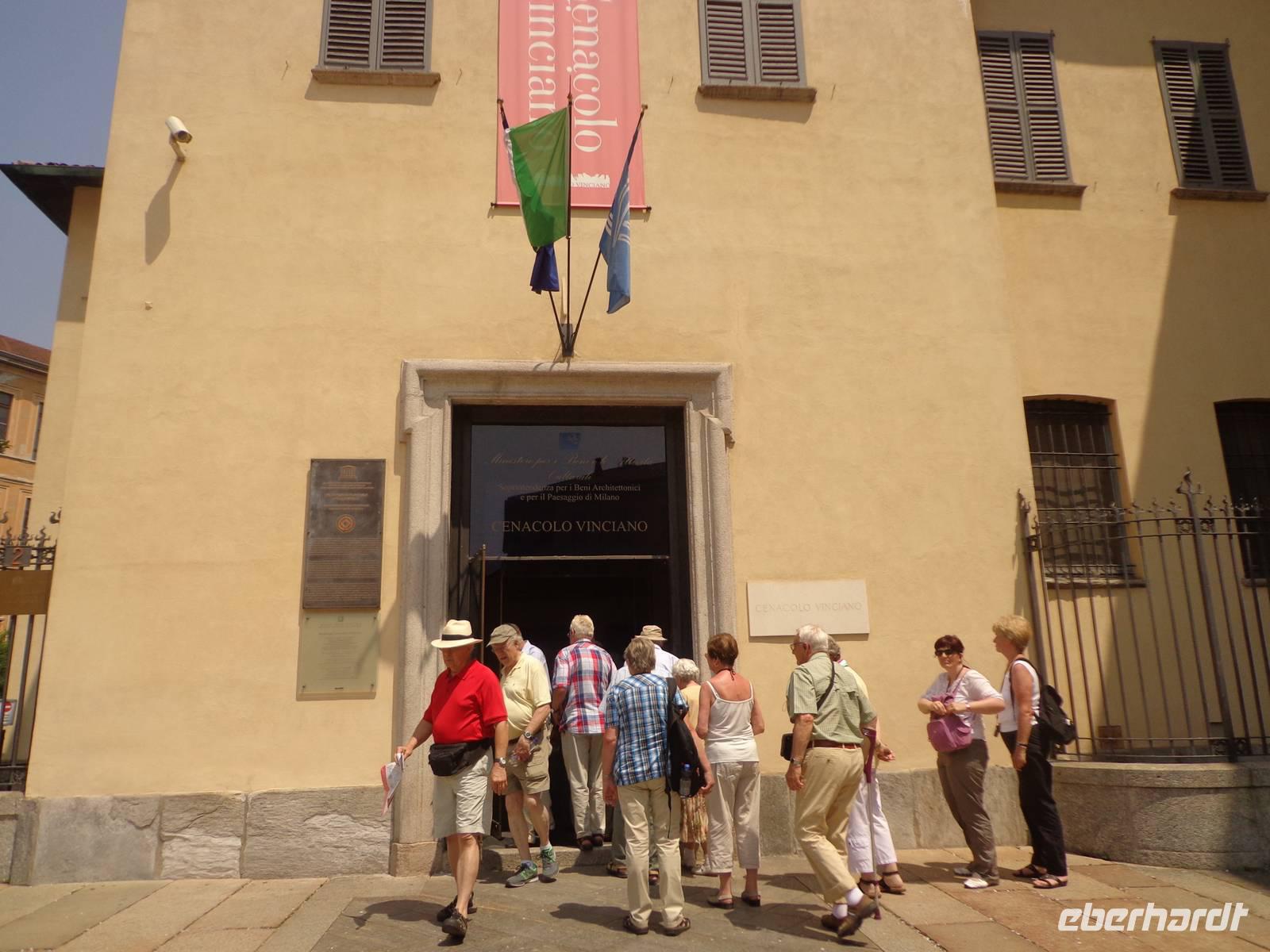 Ein besonderer Höhepunkt während unserer Busreise steht an diesem Tag auf unserem Ausflugsprogramm. Der Besuch des „Letzten Abendmahl" von Leonardo da Vinci. Doch bevor wir dort ankommen steht erst einmal eine Stippvisite des Monumentalfriedhofes von Mailand auf dem Programm. Bei sommerlichen Temperaturen kommen unsere Gäste dabei schon mal ganz schön ins schwitzen. An der Kirche Santa Maria delle Grazie in Mailand sucht Fedra für uns erst einmal ein schattiges Plätzchen. Das finden wir im sich anschließenden Kreuzgang der Kirche. Hier erfahren wir viele Einzelheiten über des Leben von Leonardo da Vinci und auch die Besonderheiten zwischen einem Fresko und einem Wandbild. Dann ist es endlich soweit. Eberhardt Travel hat für uns die Eintrittskarten organisiert und wir dürfen zur bestellten Zeit eintreten. „Das letzte Abendmahl" von Leonardo da Vinci zierte früher den Speisesaal in einem Kloster, während der Zeit von Napoleon waren in dem Raum die Pferde untergebracht und in der heutigen Zeit steht es den Besuchern, unter strengsten Vorsichtsmaßnahmen, zur Besichtigung zur Verfügung.