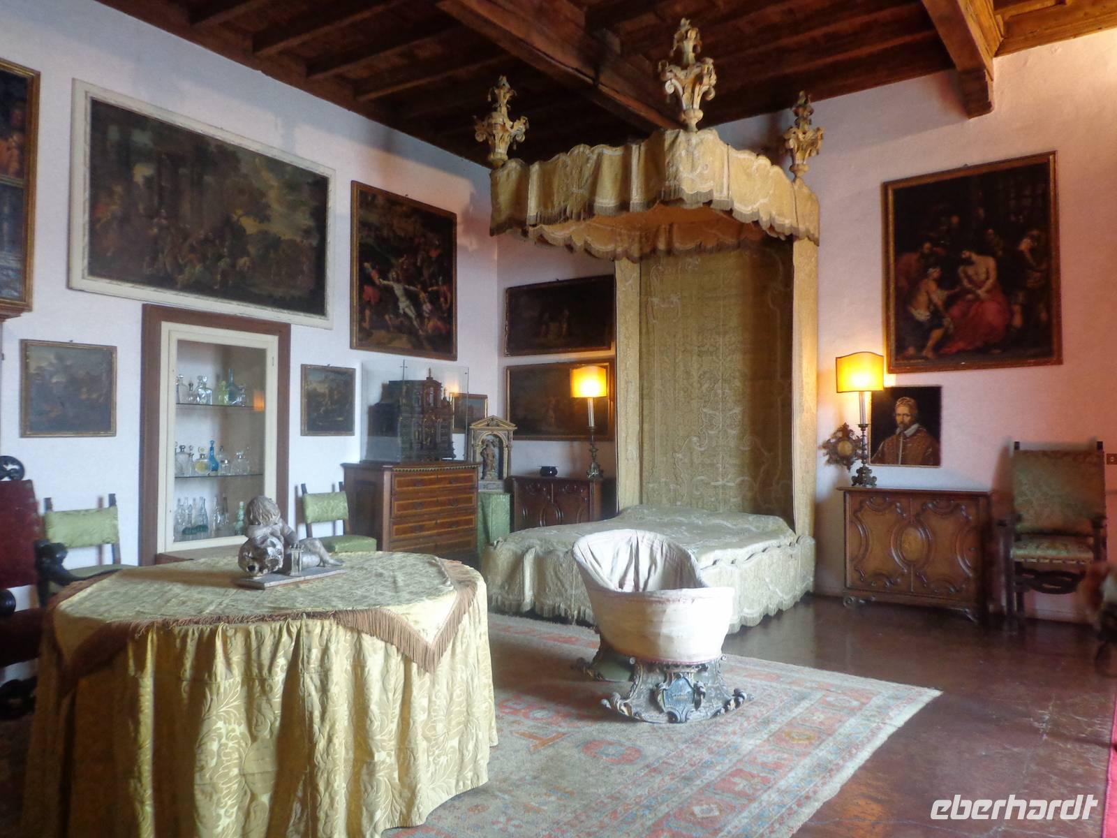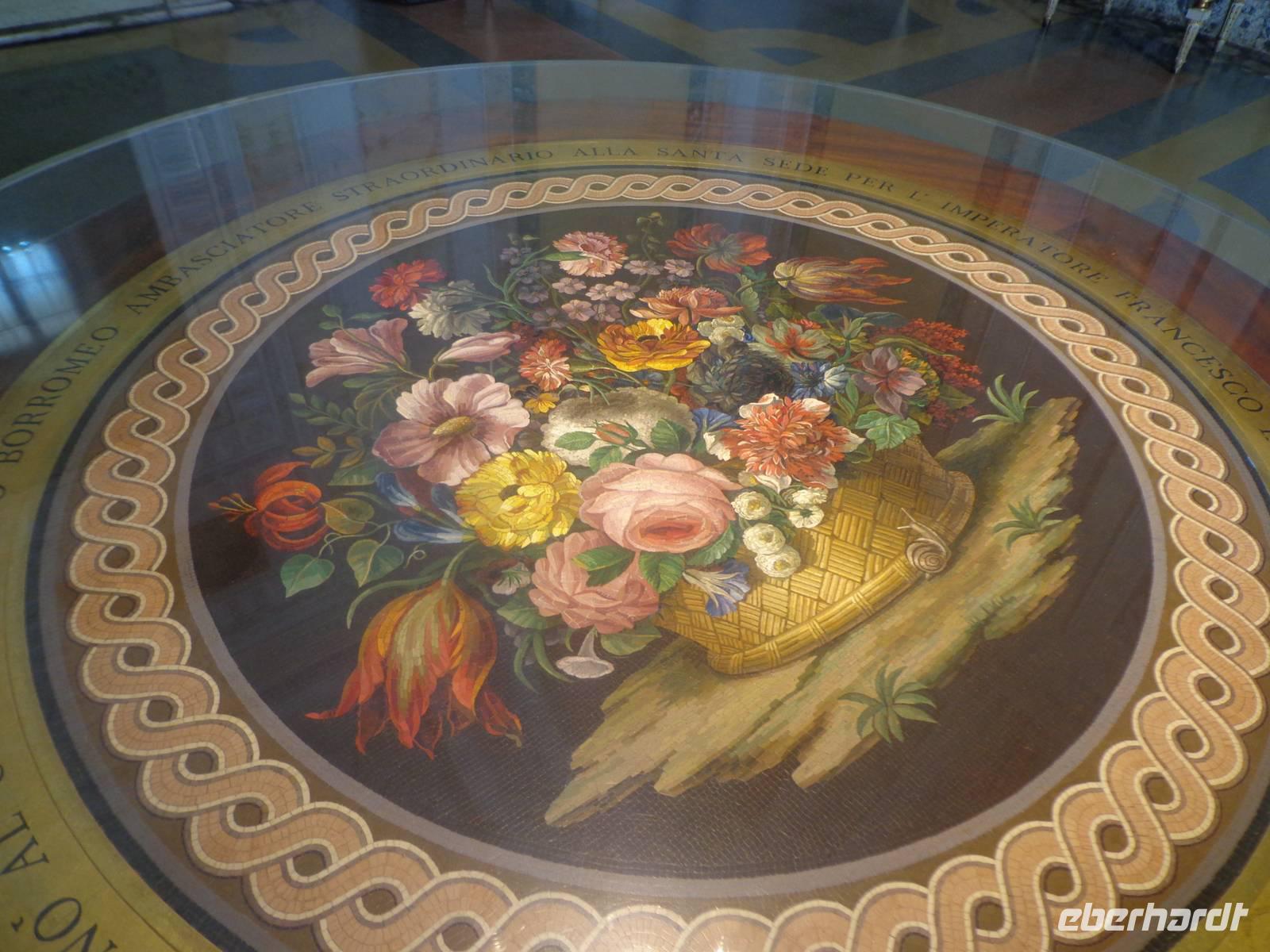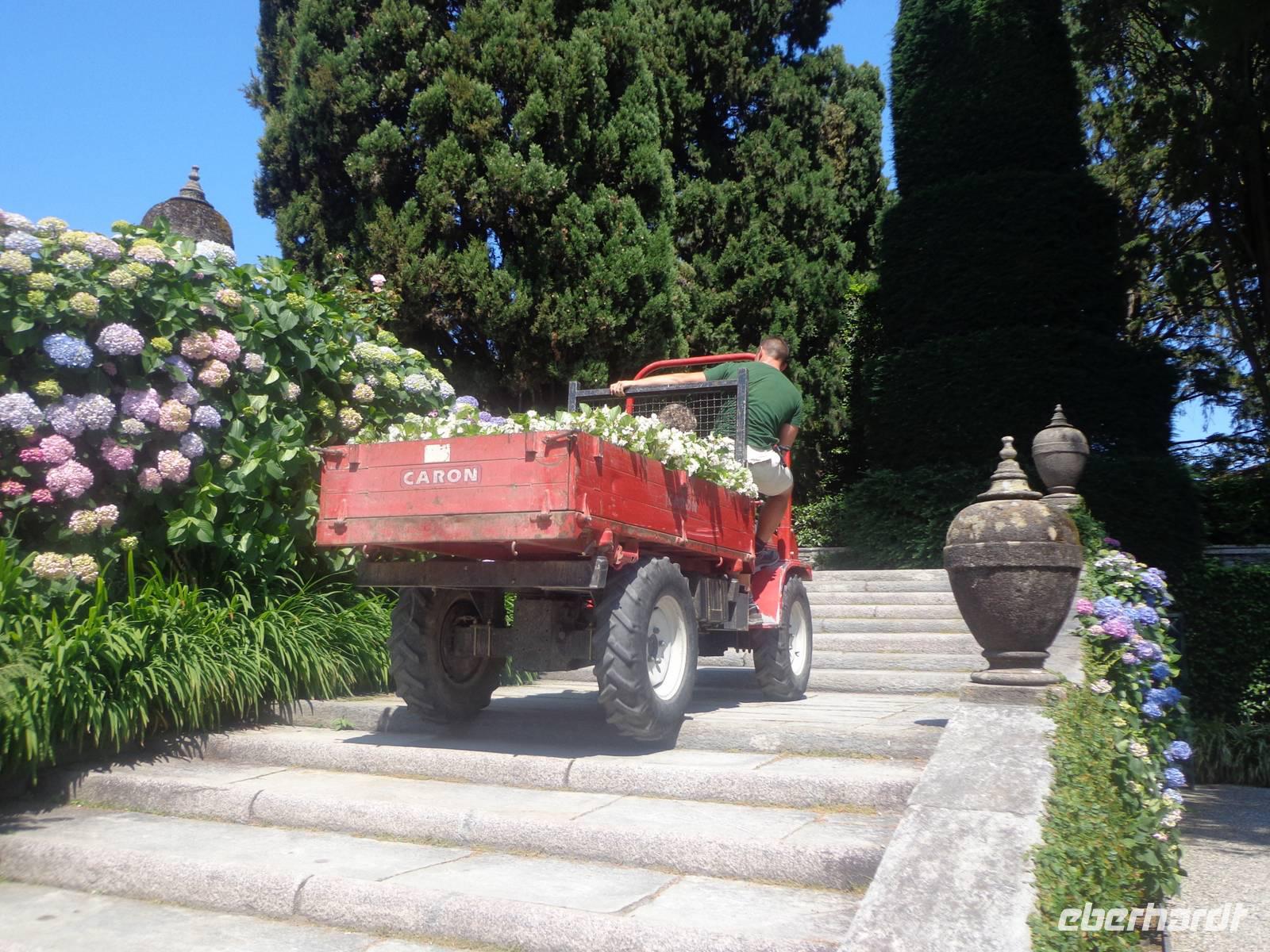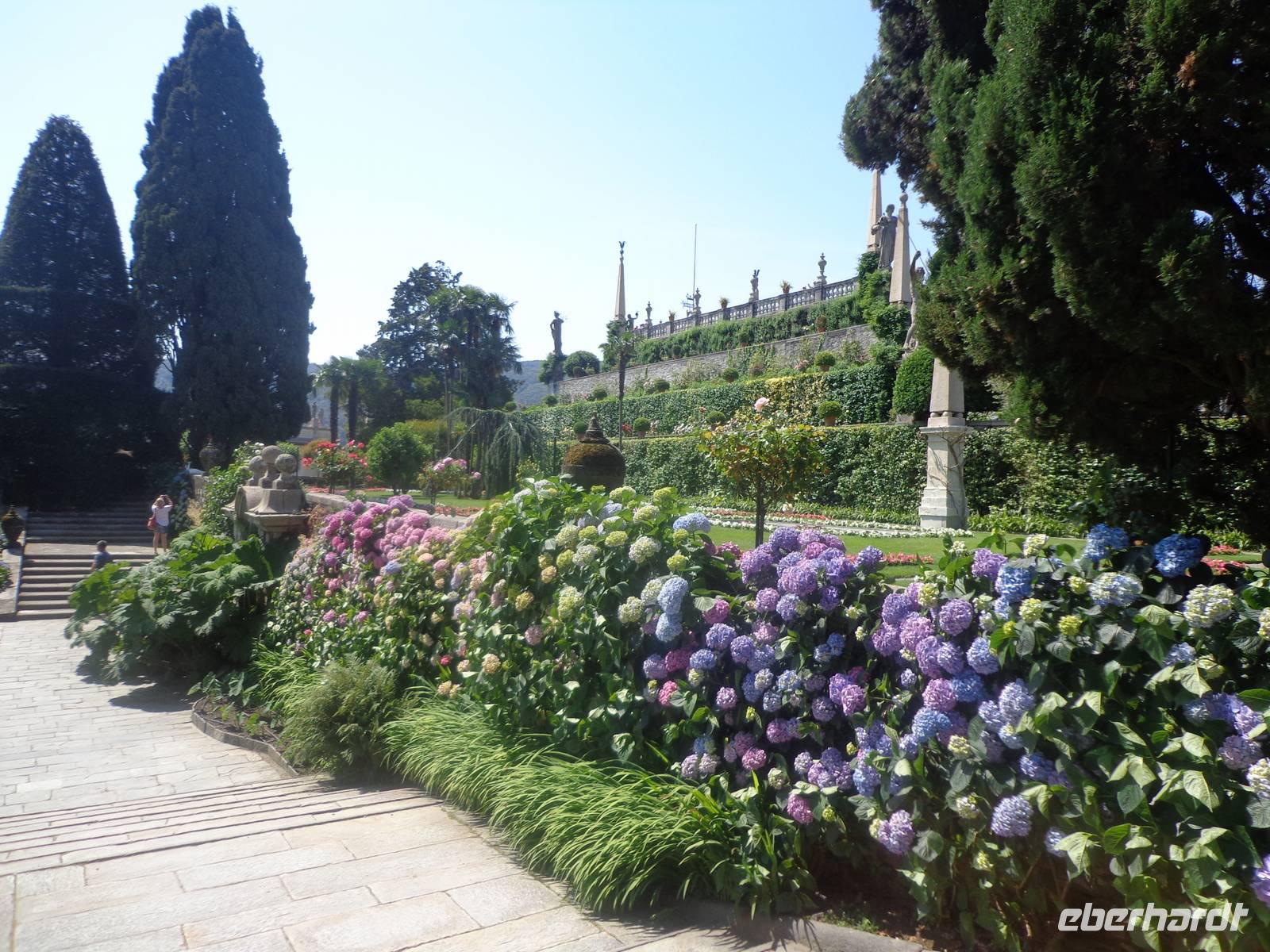 Unser Buschauffeur hat heute seinen Ruhetag. Ausgeruht unternehmen wir einen kleinen Spaziergang zur Anlegestelle der Privatboote. Auf unserem Programm stehen heute die bekannten Inseln im boromäischen Golf. Zunächst bringen uns die Boote zur Isola Bella, der berühmtesten im gleichnamigen Golf im Lago Maggiore. Sie ist ein geschaffenes Kunstwerk, mit dem Palazzo und dem terrassenförmig angelegtem Barockgarten. Bei einer Palastführung mit Romeo durchlaufen wir unter anderem den „Saal der Medaillen", den „Saal der Musik", den „Ballsaal" sehen das Dokument der Konferenz von Stresa, bestaunen den Mosaiktisch und die zahlreichen originalen Möbel, Bilder und die Wandteppiche. Im Anschluss an die Palastführung erreichen wir den Garten. Hier blühen die Rosen und Hortensien, die Pfauen schreiten stolz durch die Anlage und hoch über allem thront das Einhorn, ein Symbol der Familie Boromeo. Die Adelsfamilie ist auch in der heutigen Zeit im Besitz der Isola Bella - ebenso der Isola Madre. Diese erreichen wir am zeitigen Nachmittag. Auch hier haben wir für unsere Reisegruppe eine Palastführung bestellt. Unsere Gästeführerin erwartet uns schon. Anders als auf der Isola Bella erwartet uns hier ein Palazzo der zum wohnen genutzt wurde. Anders als im Palast auf der Isola Bella sind im Palazzo auf der Isola Madre keine originalen Möbel zu sehen. Vielmehr sind es Einrichtungsgegenstände die aus verschiedenen Palästen der Familie aus Mailand stammen.. Besonders sehenswert sind die alten Theaterkulissen und die dazu gehörigen Marionetten. Auch die automatische Tür erweckt die Aufmerksamkeit unserer Reisegäste. Bekannt ist die Isola Madre auch für ihren botanischen Garten, mit der Zypresse aus Kaschmir verschiedenen exotischen Pflanzen und freilaufenden Fasanen und Pfauen. Unseren Reisegästen bleibt Zeit, bei einem Capuccino, die Ausblicke zu genießen, bevor wir mit den Booten zurück fahren.