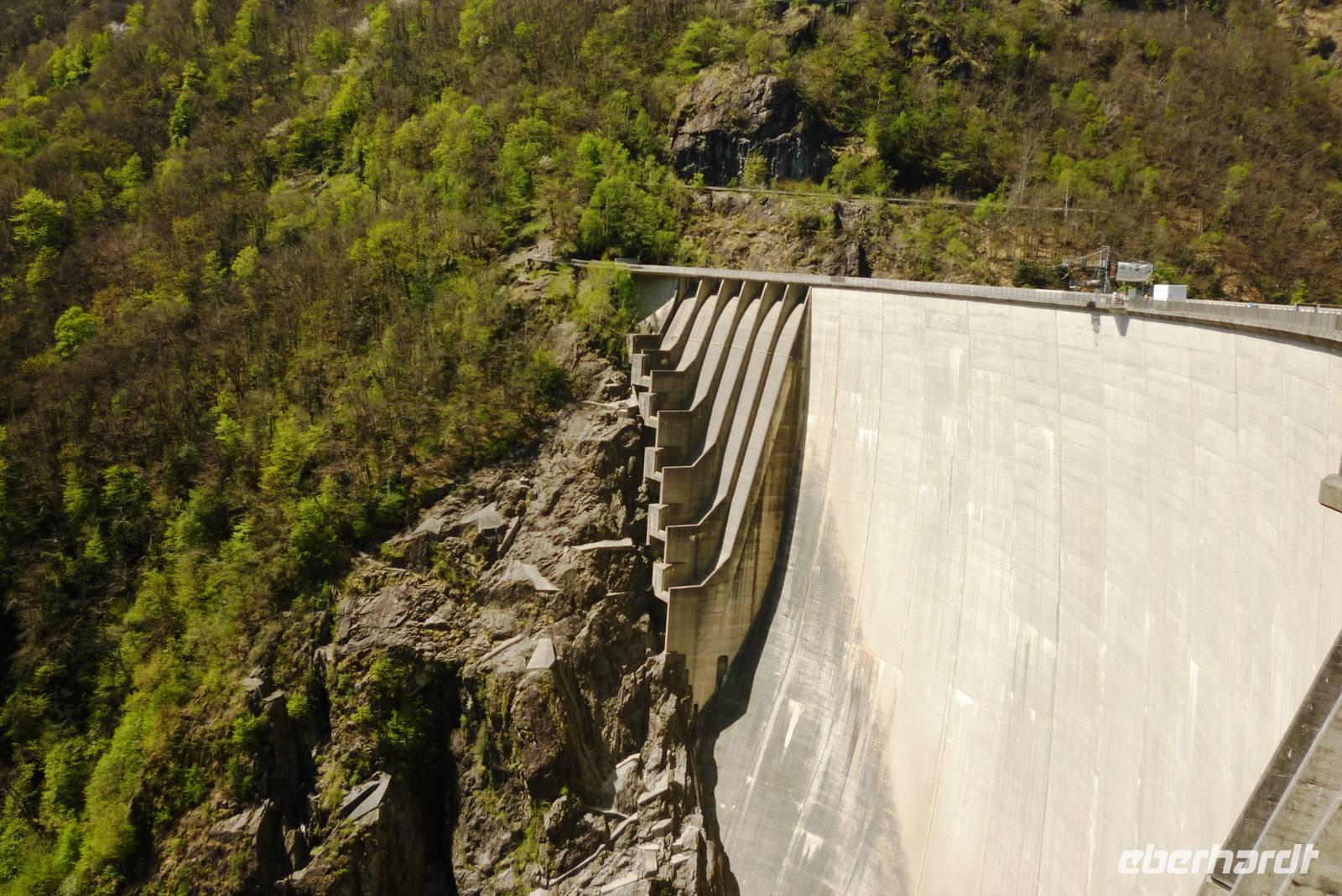 Am Taleingang ist schon der Stausee mit einer 200 m hohen und 7 m breiten Stauwand zu sehen, die im James Bond-Film „Golden Eye" als Übungsplatz für einen Bungeesprung genutzt wurde. Wer will, kanns tun, 10 sec., 200 €, ein günstiges Angebot, für das sich komischerweise keiner interesssieren wollte.