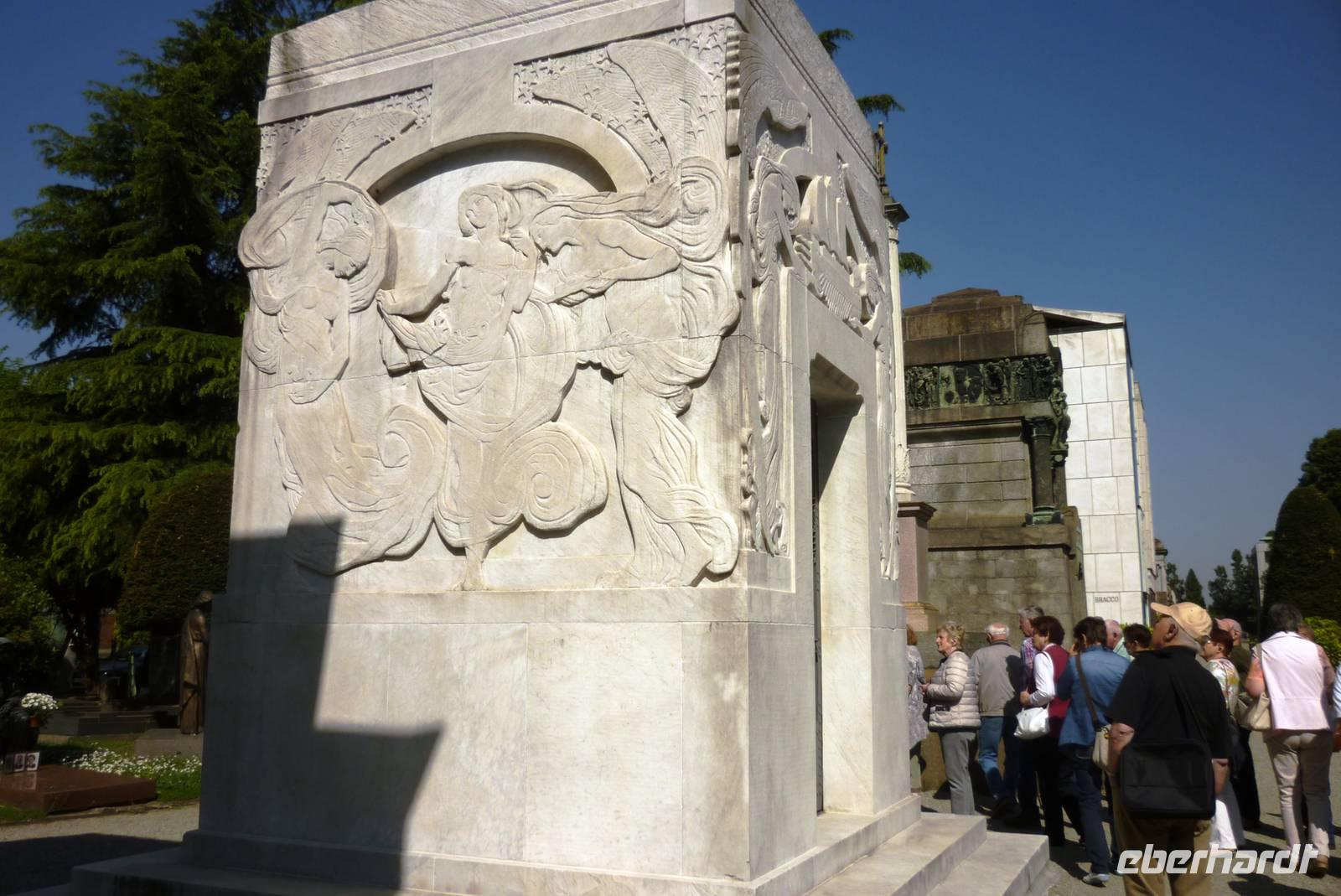 Wir begaben uns nach einer Fahrt am südlichen Lago Maggiore entlang auf der Autobahn vorbei an Legnano ins Mailänder Stadtzentrum und trafen uns am Monumentalfriedhof mit der örtlichen Stadtführerin Fedra. Den imposanten Friedhof mit den sehenswerten Grabarchitekturen zu besichtigen, war für uns ein beeindruckendes Erlebnis.