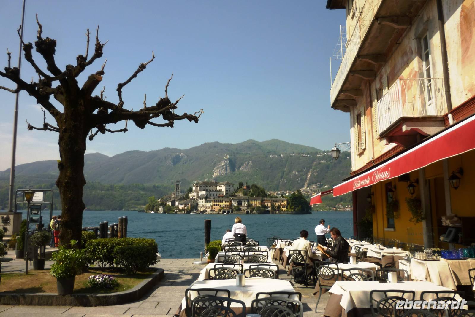 Da der kleine Ort sehr enge Gassen hat, kann man nicht mit dem Bus hineinfahren, sondern vom Parkplatz außerhalb des Ortes gelangt man mit einem kleinen Zug hinunter.Das Städtchen ist malerisch am See gelegen, die Insel San Guilo wirkt zum Greifen nahe. Die Legende besagt, dass sie einst vom Heiligen Julius entdeckt und besiedelt wurde, der auf einen Stock gestützt, mit windgeblähtem Mantel über den See fuhr und alle Drachen, die auf der Insel lebten, furchtbar erschreckte.