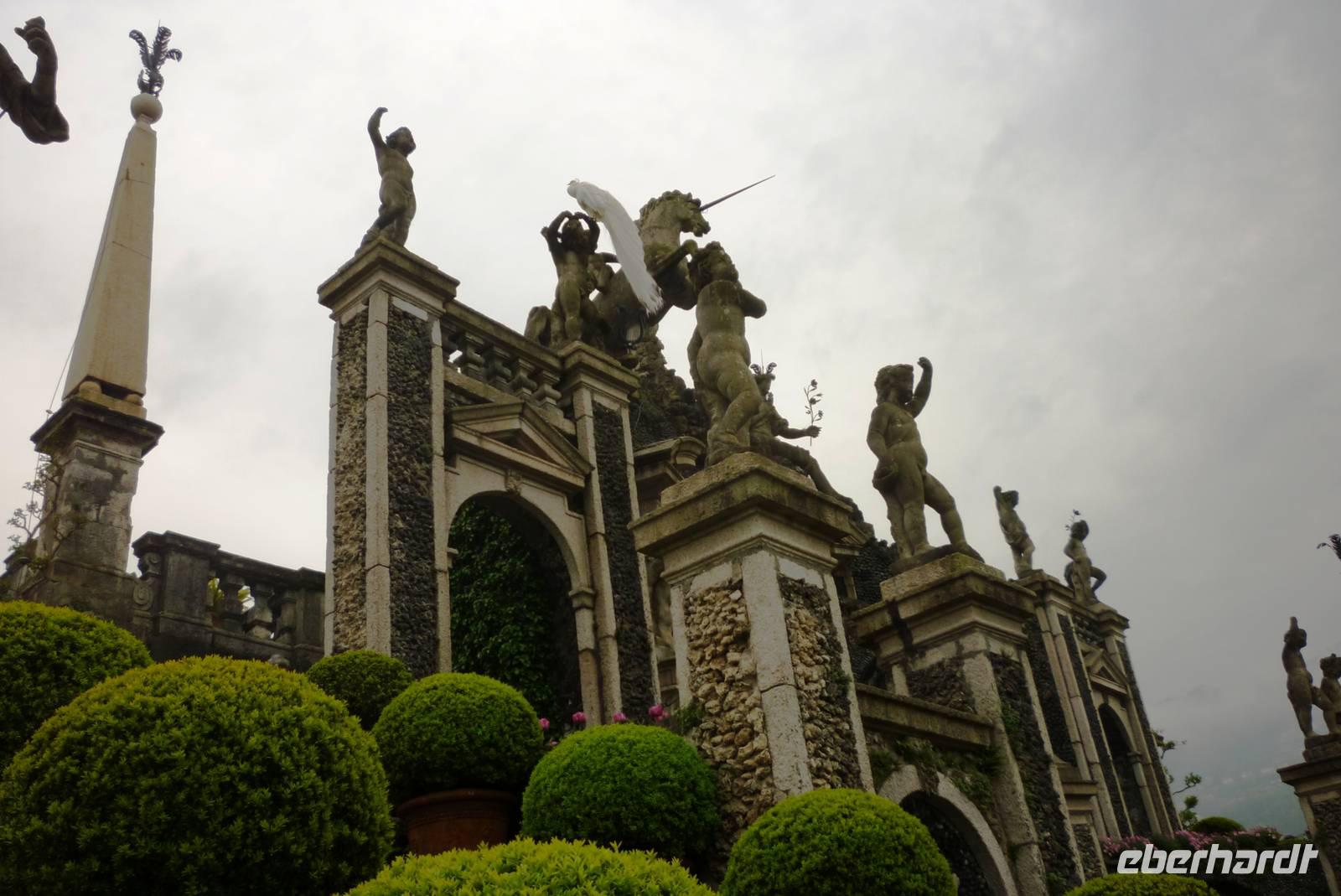 erst ab 10 Uhr. Von der Anlegestelle am Hotel gelangen wir mit einem Boot zur Isola Bella, dort gab es gleich nach unserer Ankunft eine Führung durch den Borromeo-Palast. Die Säle und Grotten sind ganzheitlich im barocken Stile errichtet und zeigen sich in ihrer Pracht wie ein Gesamtkunstwerk.