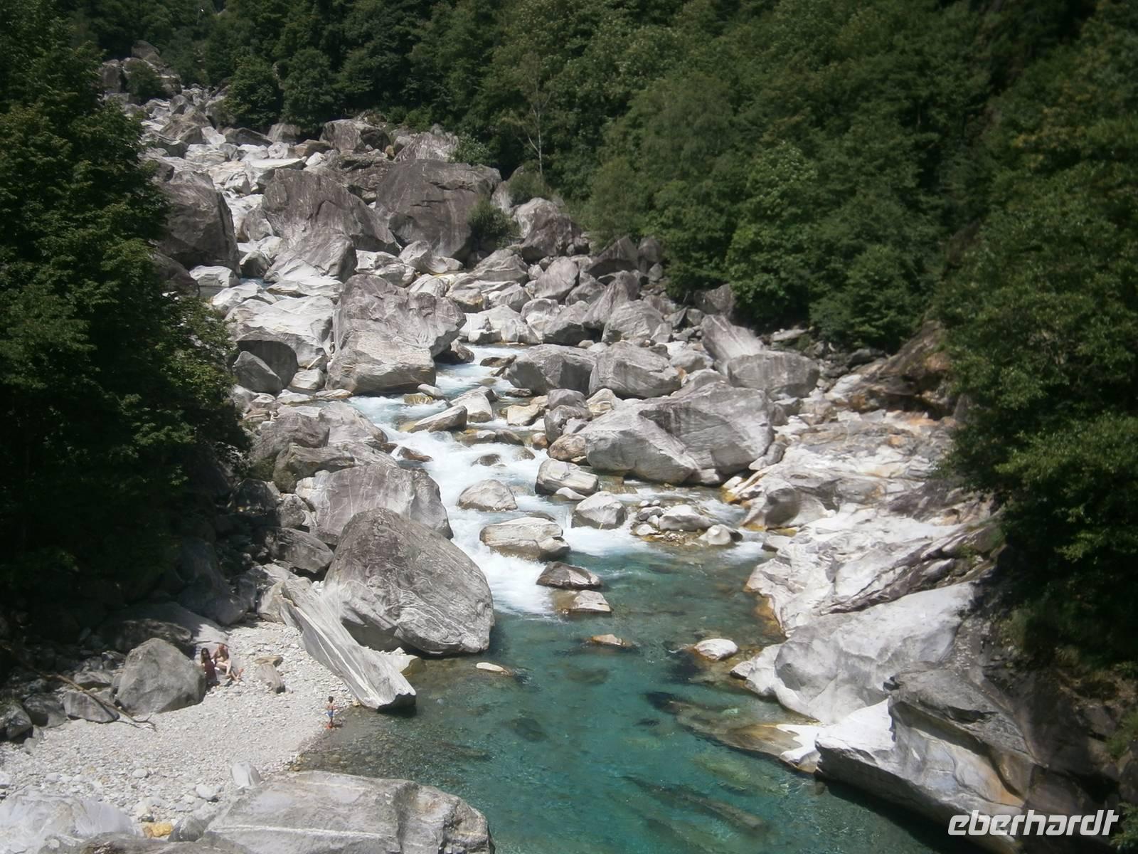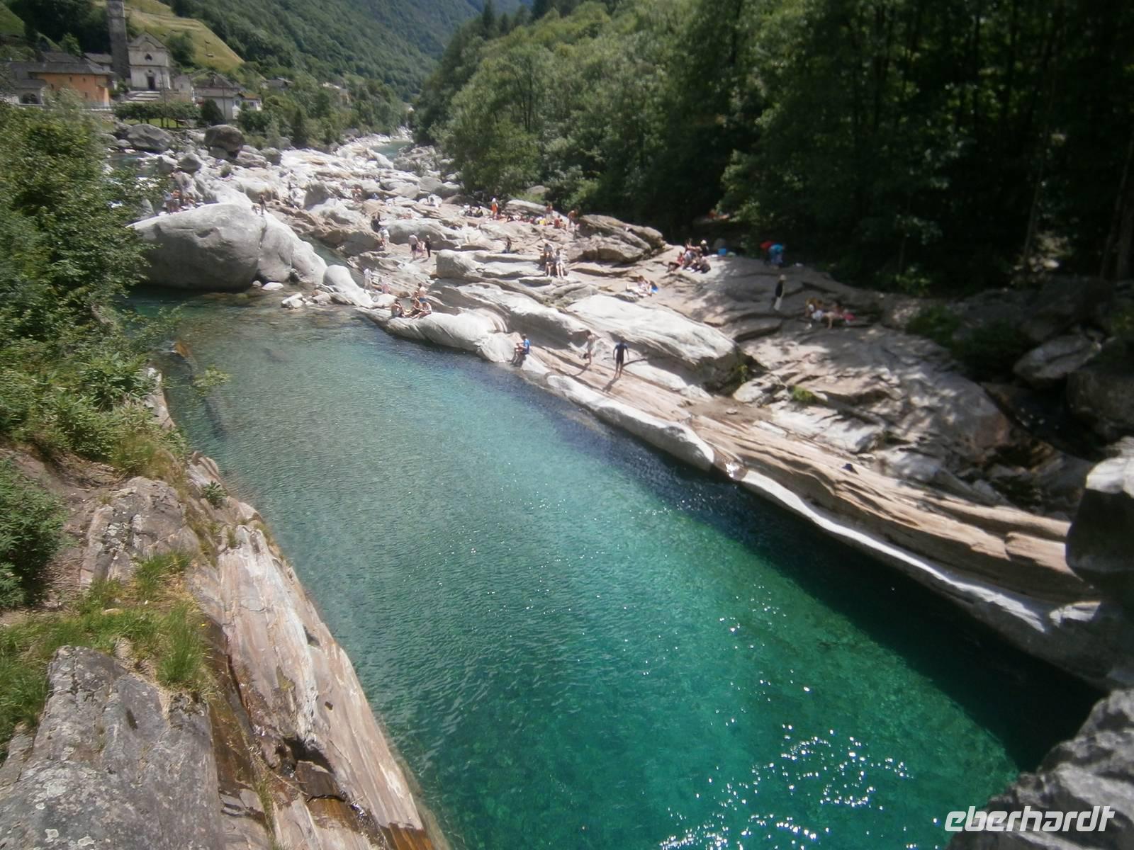 Auf der Höhe von Lavertezzo ist der Flusslauf der Verzasca am schönsten. Tiefgrünes klares Wasser, bizarr geschliffen Felsen bezaubern die Besucher. Hier befindet sich das bekannteste Ziel im Verzascatal, der Ponte dei Salti, fälschlicherweise auch als "Römerbrücke" bezeichnet. In Wirklichkeit stammt der Bau mit den beiden kühnen Bögen aus dem 17. Jahrhundert. Ein romantisches Fleckchen im Tal der Verezasca welches auch zum baden oder tauchen einlädt.
