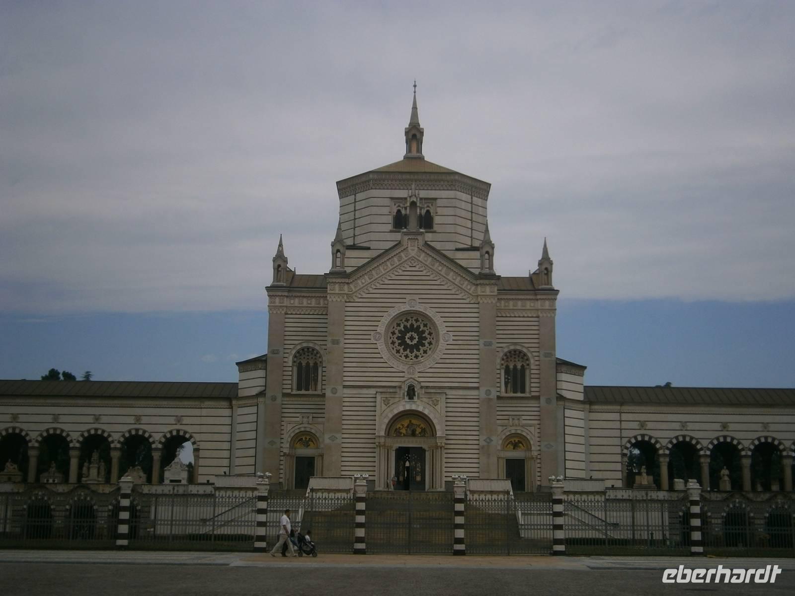 Mailand - die Stadt der Mode - die Stadt der Banken - und dieses Jahr die Stadt der EXPO 2015. Während der Fahrzeit testen wir schon mal den Eberhardt - Reiseleiterfunk. Die Audiogeräte bewähren sich immer wieder bei Stadtführungen. Pünktlich zur verabredeten Zeit erreichen wir den Cimitero Monumentale. Hier treffen wir unsere Gästeführerin Ferda. Mit ihr spazieren wir erst mal zum Friedhof. Der Cimitero Monumentale von Mailand ist ein 1866 eröffneter Zentralfriedhof. Er ist eine Art Freiluftmuseum mit Statuen, Obelisken, Tempeln und vielen Geschichten, die um berühmte Mailänder Persönlichkeiten ranken. Dazu gehören unter anderem die Grabstätte der Familie Campari (Erfinder des gleichnamigen Getränkes), die Grabstätte von Carlo Mozart (jüngster Sohn von Wolfgang Amadeus,) die Grabstätte von Arturo Toscanini (Orchesterdirektor der Mailänder Scala) und und und