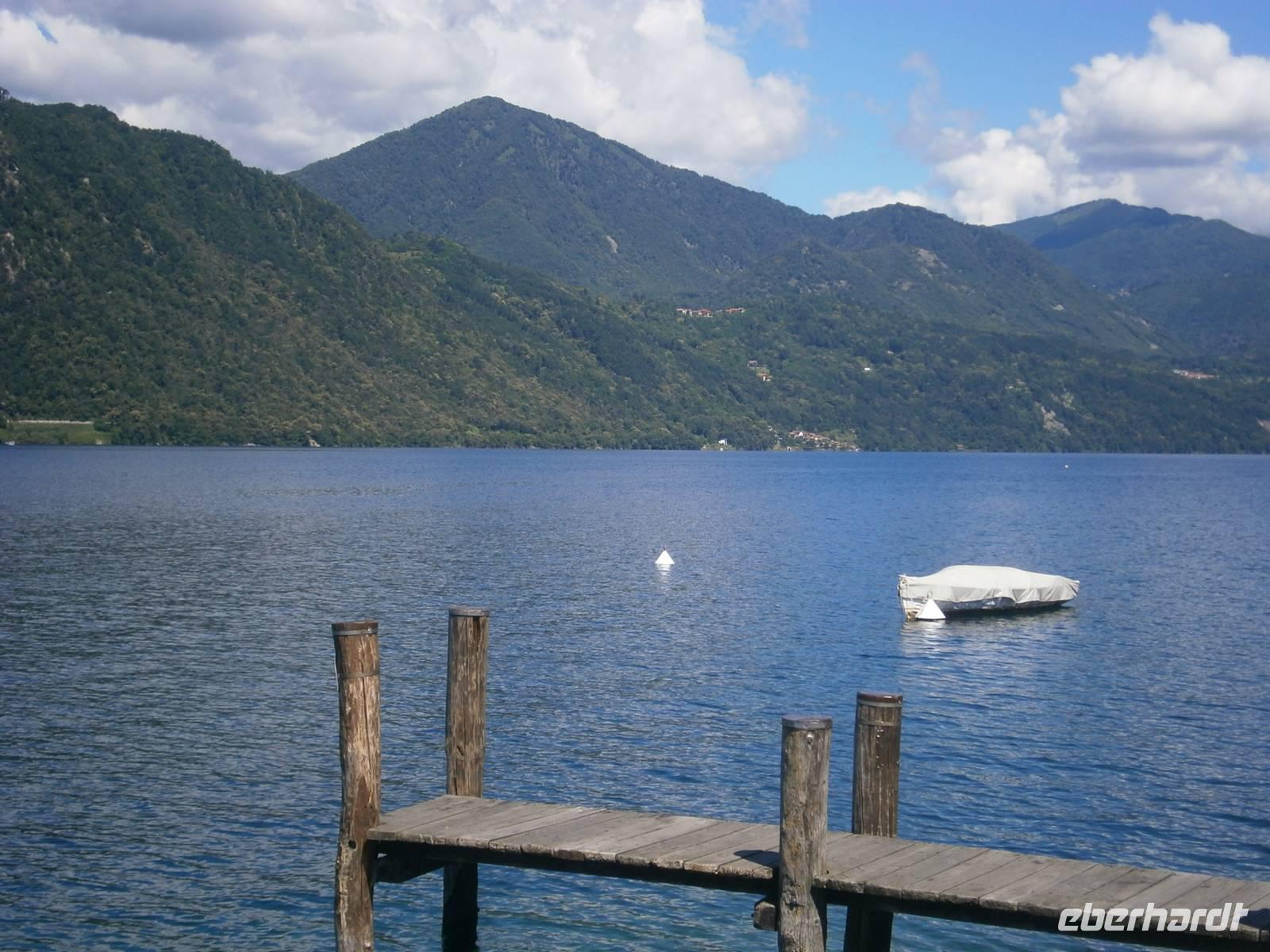 Der Lago Maggiore – ein faszinierender Anblick: glasklares Wasser, blauer Himmel und die Bergketten der südlichen Alpen