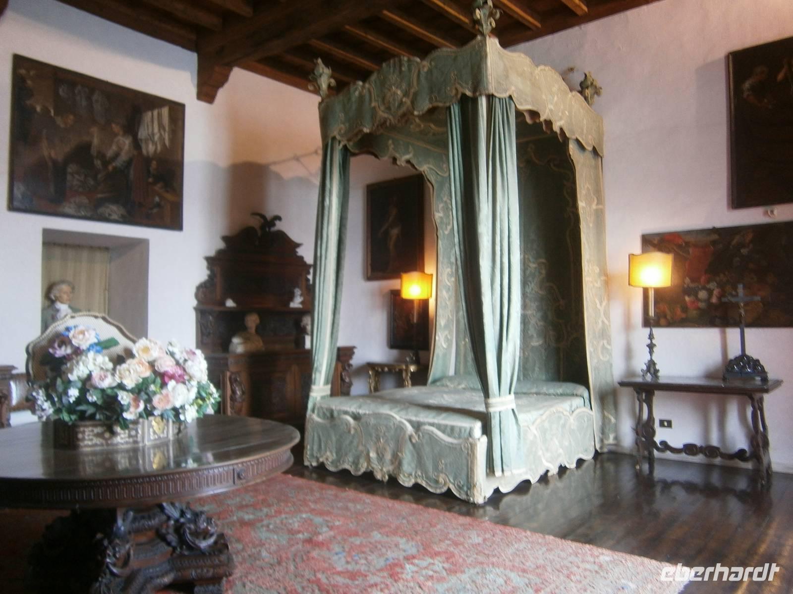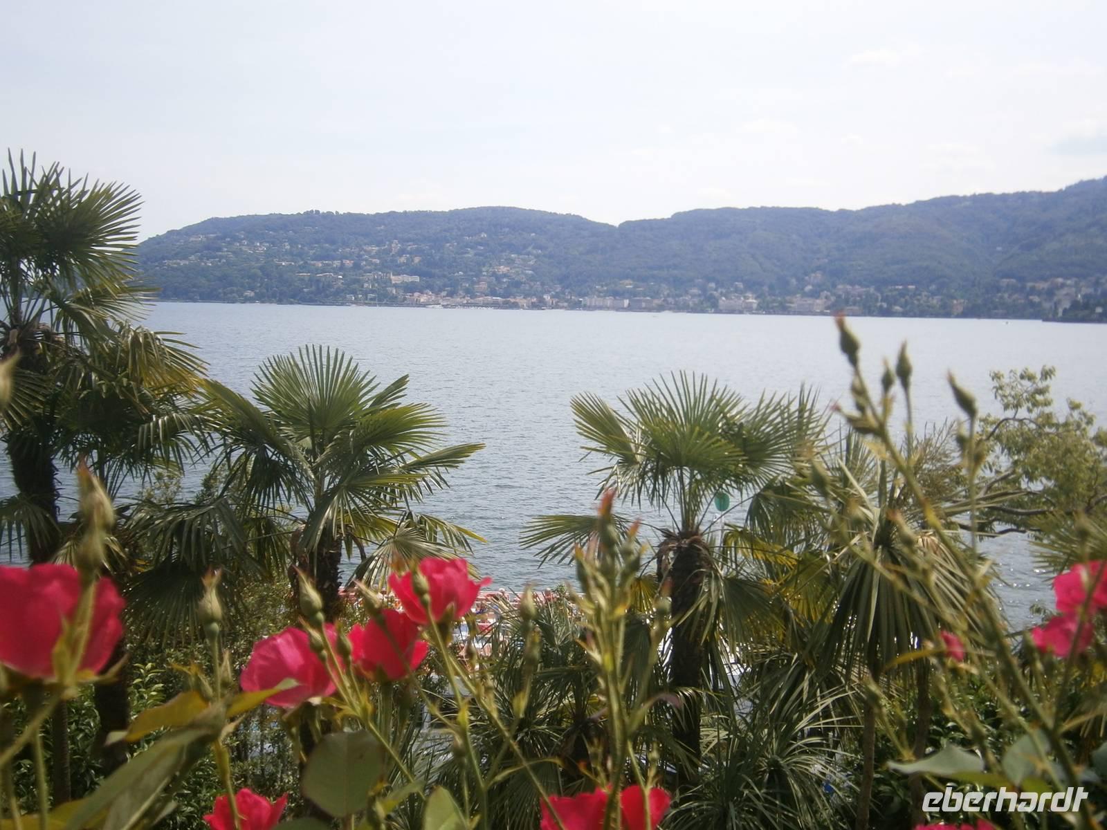 Der letzte Tag unseres Aufenthaltes am Lago Maggiore ist noch mal ein ganz Am nächsten besonderer Ausflug. Mit einem Privatboot fahren wir nach einem ausgiebigen Frühstück hinüber zur Isola Bella. Hier werden wir den Palazzo Boromeo und die Terrassengärten besichtigen. Carlo III. benannte die Insel, als Zeichen seiner Liebe, nach seiner Frau „Isabella von Adda". Gemeinsam mit dem Gästeführer Matteo besichtigen wir den Palazzo. Über den Treppenaufgang erreichen wir zuerst den Saal der Medaillen, dann den Saal der Musik und gelangen schließlich in das Zimmer von Napoleon. Im Saal der Zuccharelli, einem toskanischen Maler, sehen wir Bilder mit der Burg von Arona (hier wurde der Heilige Karl Boromeo geboren) und der Burg von Angera (Geburtsort von Kardinal Federico Boromeo). Im Konservationssaal bestaunen wir den Tisch in der Mitte des Saales. Die Tischplatte zieren allerfeinste Mosaikarbeiten, die eine Vielfalt von Blumen darstellt. Der Tisch war ein Geschenk von Papst Leo XII. an den Grafen Giberto Boromeo. Vom Tanzsaal aus steigen wir hinab in die Grotten. Die verschiedenen Grottensäle bestechen durch ihre meisterhafte Ausgestaltung mit Muscheln und Kieseln aus dem Lago Maggiore und als farblicher Kontrast dunkles vulkanisches Gestein. Durch den Saal der Wandteppiche erreicht man die Gartenanlage der Isola Bella. Mitte des 17. Jahrhunderts begann man mit den ersten Arbeiten und ein halbes Jahrhundert später war die gesamte Insel bepflanzt. Der Garten ist in zehn ineinander greifende Terrassen gegliedert. Auf dem höchsten Punkt, zirka 40 m über dem Lago Maggiore, befindet sich ein Einhorn - das Symbol der Familie Boromeo. Der Garten wird vervollkommnet durch Skulpturen, Wasserspiele und frei laufende weiße Pfaue mit dem flauschigen Nachwuchs.