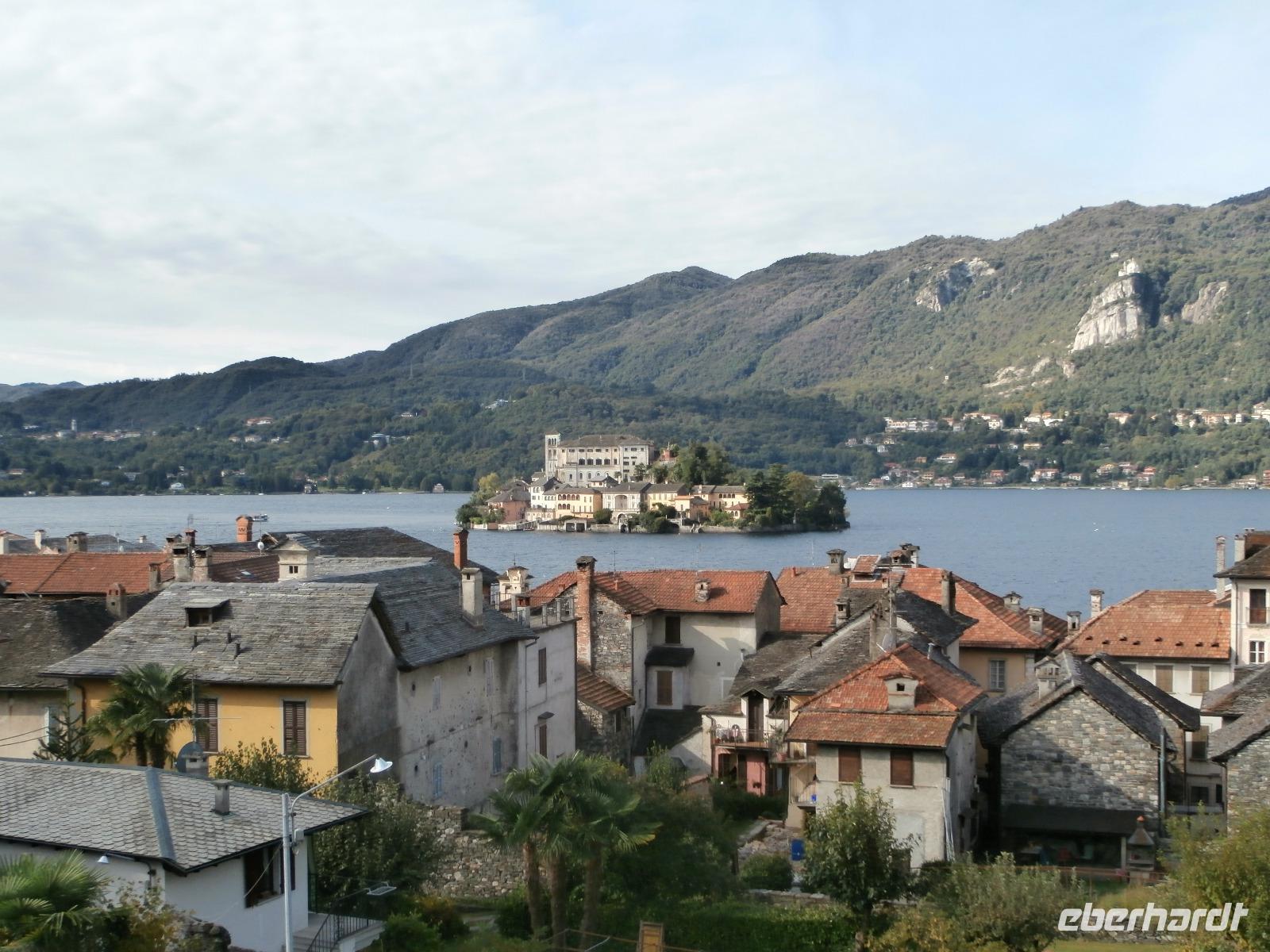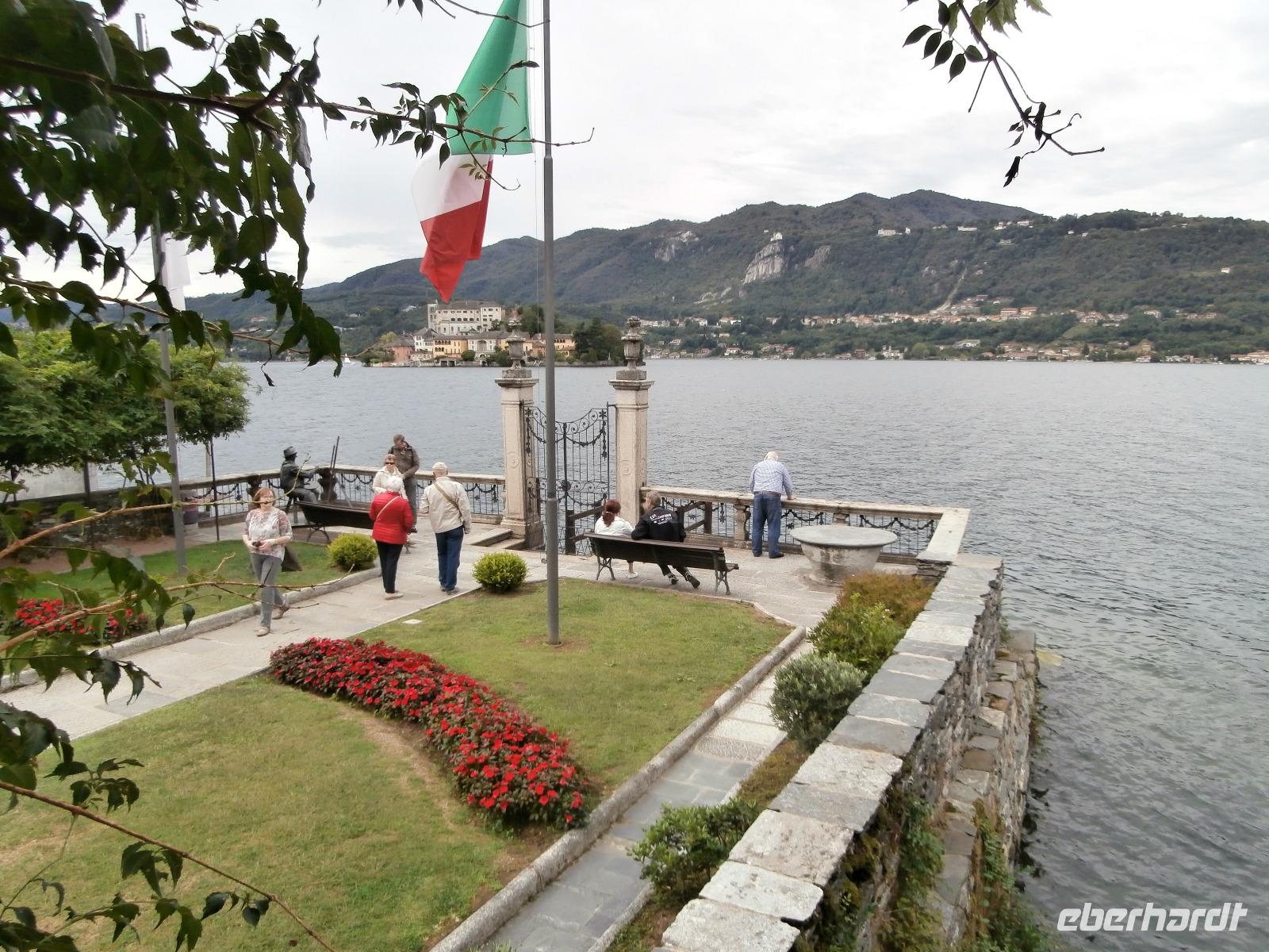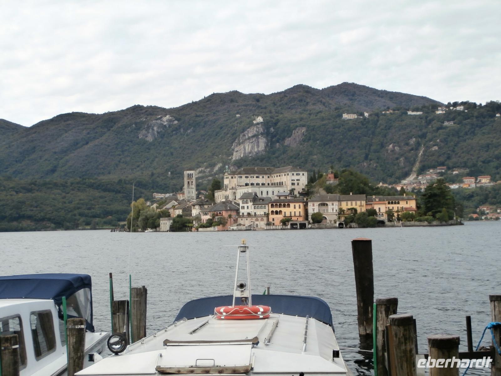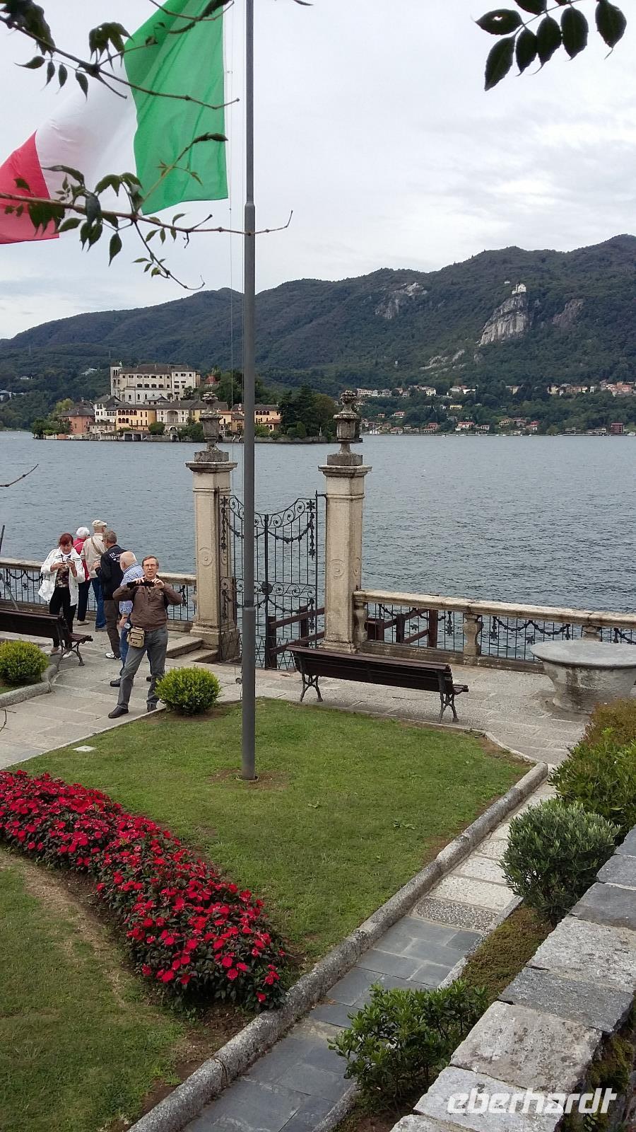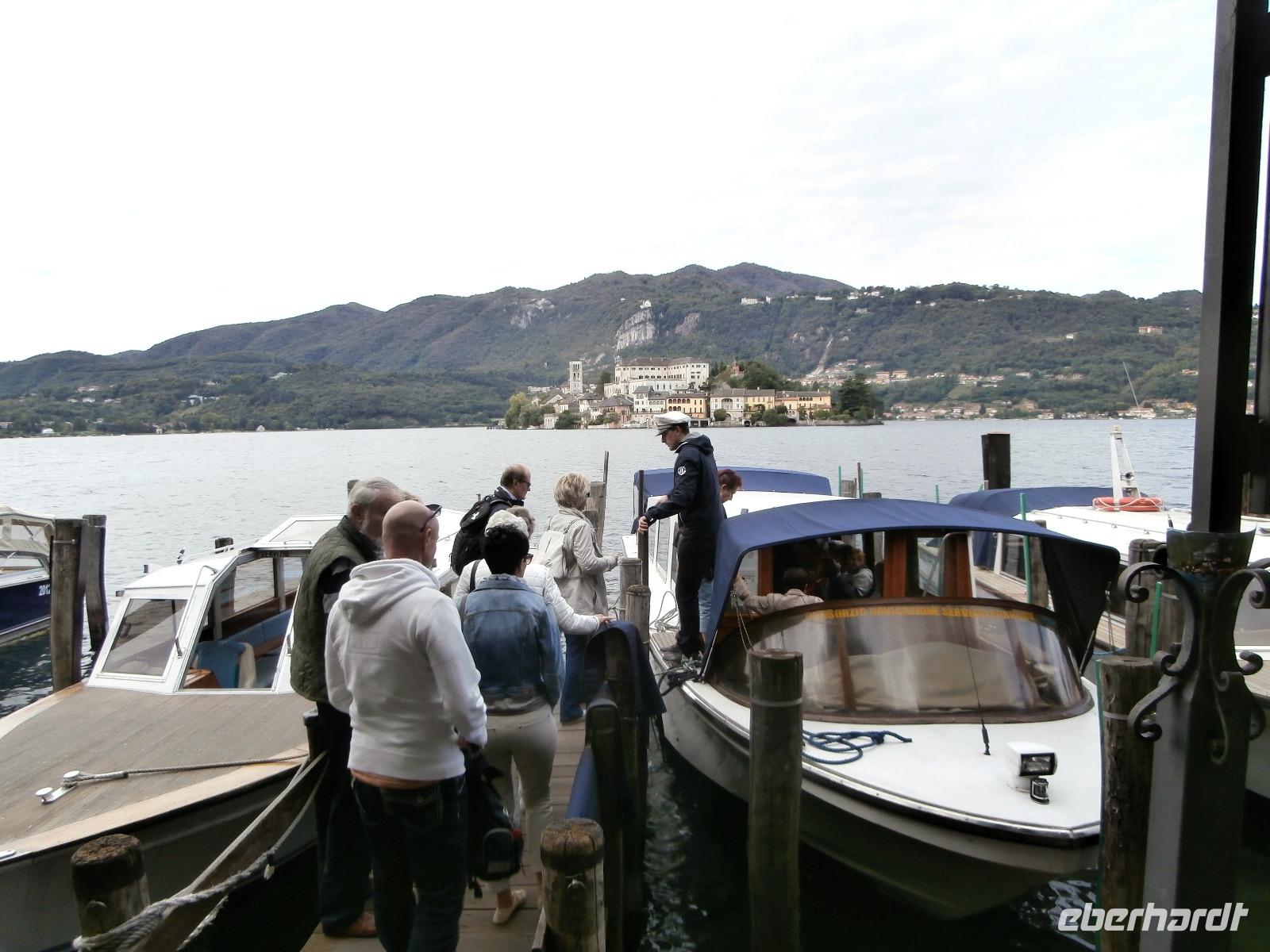 Unser erster Ausflug führt uns zum Ortasee, dieser See liegt westlich vom Lago Maggiore, ist dreizehn Kilometer lang und empfängt uns mit schönem Wetter. Mit dem Bus geht es bis nach Orta San Giulio, wir steigen am Parkplatz ins Zügli um und fahren bis hinein ins Zentrum des Ortes. In Nähe der Piazza Mario Motta steigen wir in ein Boot um, die Fahrt geht hinüber zur Isola San Giulio. Sie ist nach dem griechischen Diakon Julius, der hier im 4. JH lebte und eine kleine Kirche bauen ließ, benannt. Es ist die heutige romanische Basilika, sie hat in ihrem Inneren schöne spätmittelalterliche Fresken. Wir umrunden gemeinsam bei einem Spaziergang die kleine Insel. Zurück geht es wieder nach Orta mit dem Boot, hübsch das Zentrum, reich an Zeitzeugen der Vergangenheit, Palazzi und Kirchen können wir bewundern. Zurück zum Bus fährt uns wieder der kleine Zug, Holger erwartet uns am Bus mit frisch gekochtem Kaffee. Am Nachmittag nutzen unsere Gäste ihre Freizeit zum Stadtbummel in Stresa oder zur Fahrt hinauf auf den Mottarone.
