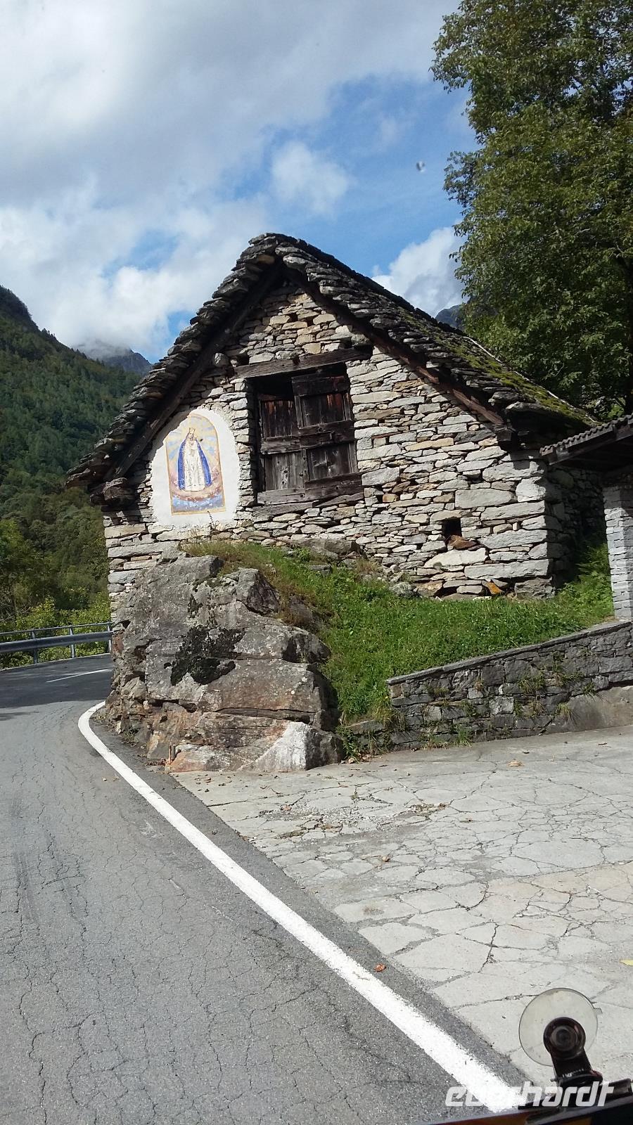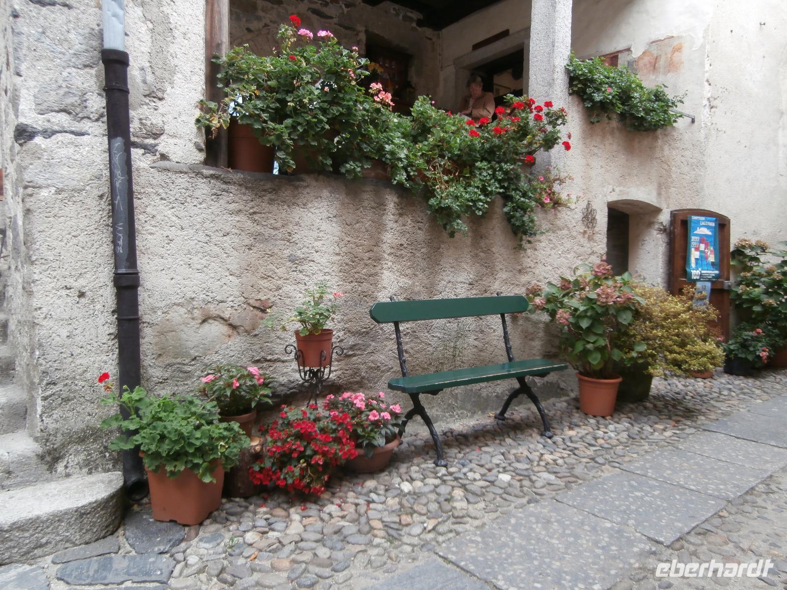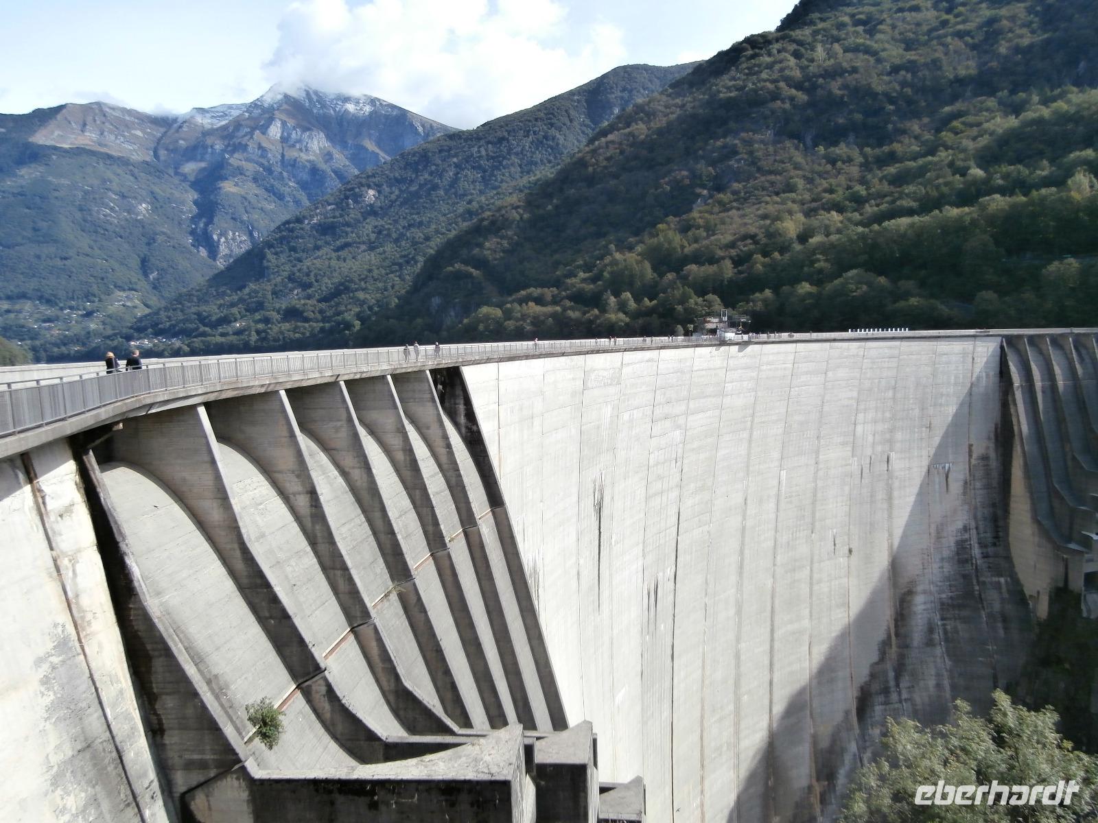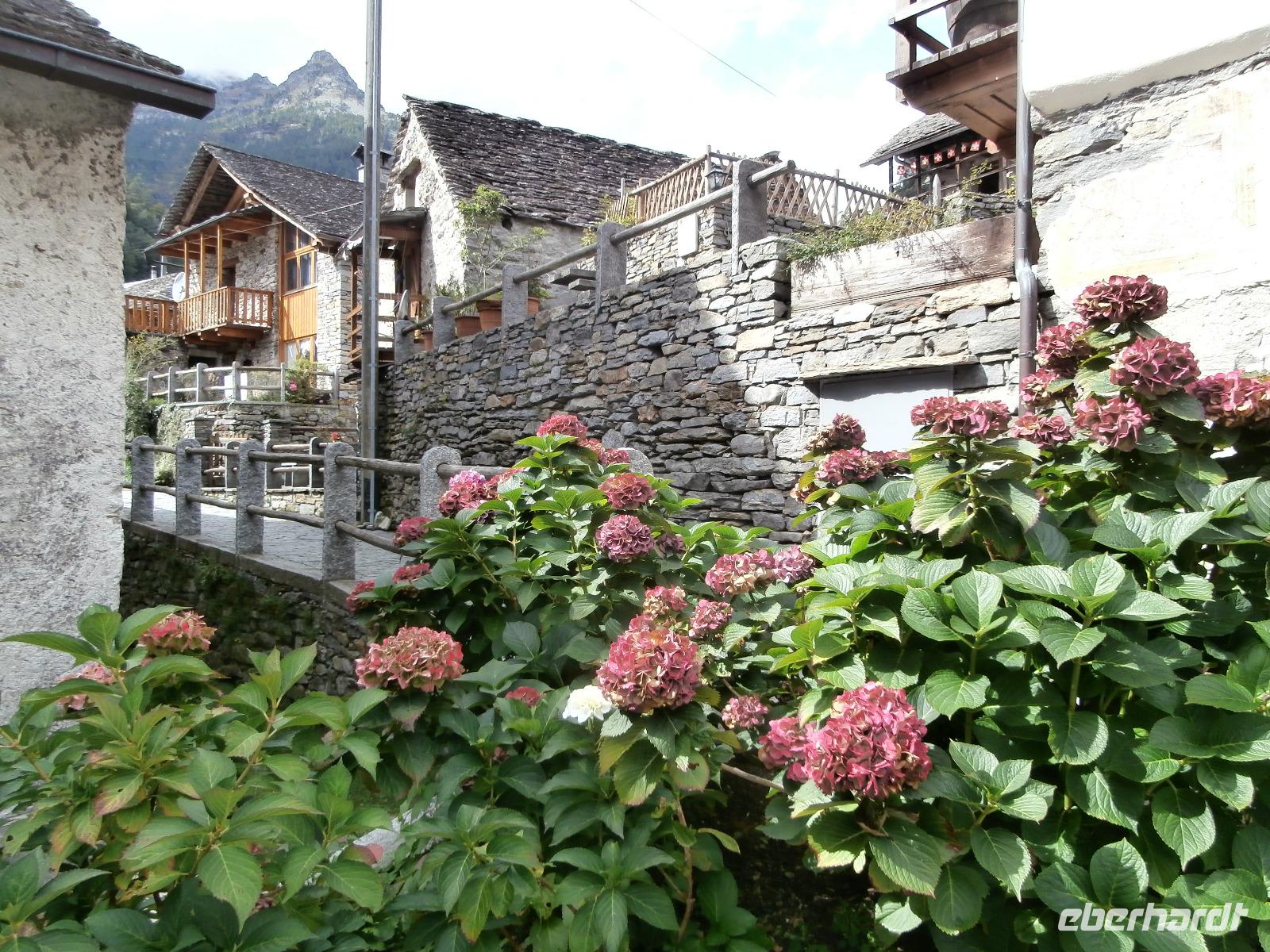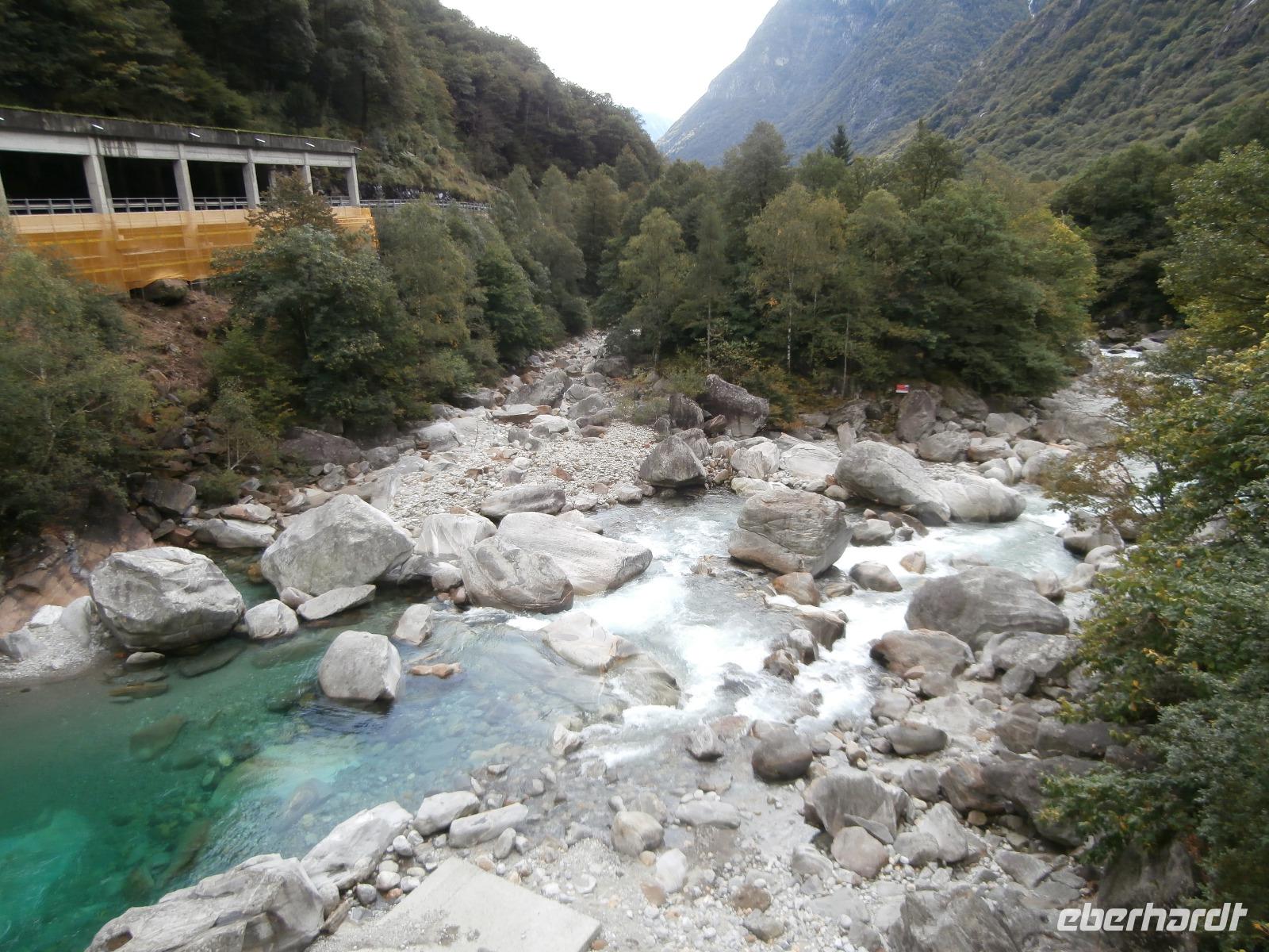 Wir sind hier am Lago Maggiore Glückskinder, verwöhnt mit tollem Wetter und das anders als vorausgesagt. Auch der heutige Ausflug in das Valle Verzasca ist bei schönem Wetter möglich. Entlang des Lago Maggiore fahren wir am Morgen, passieren die Schweizer Grenze und fahren an Ascona und Locarno vorbei in das fantastische Verzascatal, übersetzt auch das grüne Wasser und das sehen wir zwischen sehr großen Steinen, die das Wasser glatt und rund gehobelt hat, dahin fließen. Unseren ersten Stopp legen wir an der Staumauer „ La Selvatica" ein. Sie ist 220 Meter hoch und 380 m lang, wir spazieren auf ihr entlang. Von der Staumauer stürzte sich James Bond im Film „Golden Eye" in die Tiefe. Wir setzen unsere Fahrt im kurvenreichen Tal fort und der nächste Aufenthalt galt dem Ort Sonogno auf 918 m Höhe auch das letzte Dorf des Tales. Typische Häuser im gut erhaltenen Ortskern und die schöne Bepflanzung mit Sommerblumen begeistert uns alle. Zurück auf Fahrt im Verzascatal kommen wir an der römischen 2 Bogen Brücke „Ponte die Salti" an. Diese schöne mittelalterliche Brücke aus Stein ruht auf einem natürlichen Granitpfeiler. Viele junge Leute tummeln sich am grünlich schimmernden Wasser zwischen den glatt geschliffenen Steinen. Unser obligatorisches Gruppenbild nehmen wir hier auf.