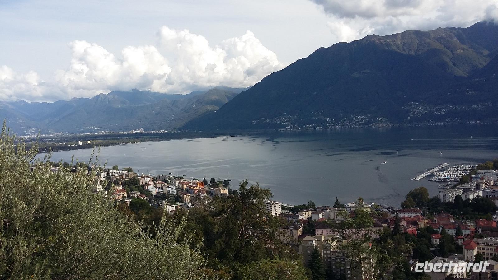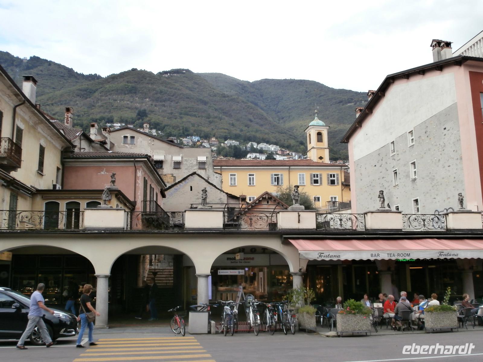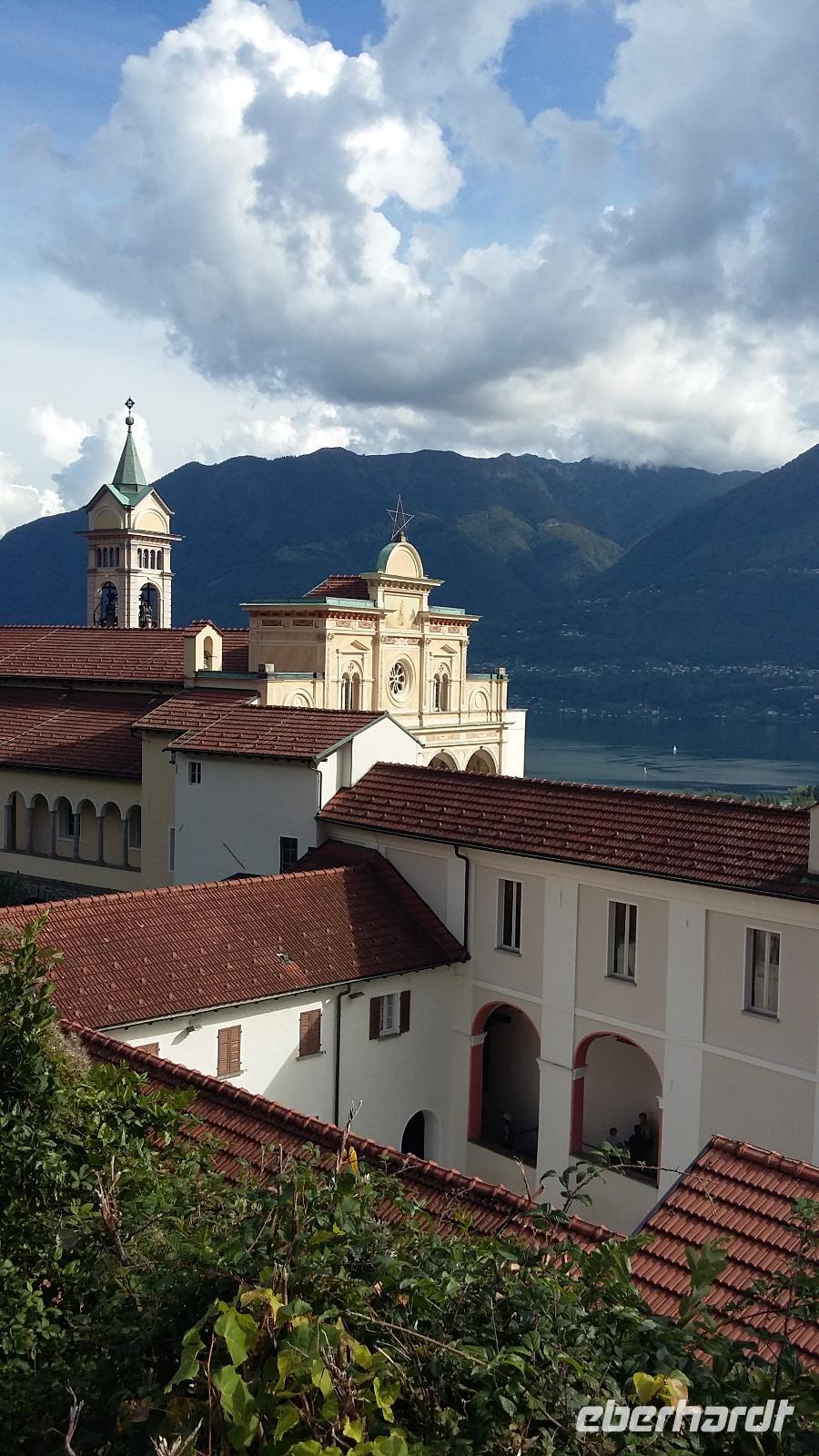 Anschließend erreichen wir Locarno, mit der Standseilbahn fahren wir gemeinsam zur Wallfahrtskirche „Madonna del Sasso". Leider stellt sich hier oben der Spaziergang zur Kirche über viele Stufen hinab und dann wieder hinauf als nicht gerade leichte Übung heraus. Ich bin am Ende froh, dass Sie liebe Gäste alles so gut mitgetragen haben, danke. Unten in Locarno wieder angekommen nutzen wir die Freizeit zum Bummeln am Lago Maggiore, zum Eis essen und Kaffee trinken im noblen Ort.