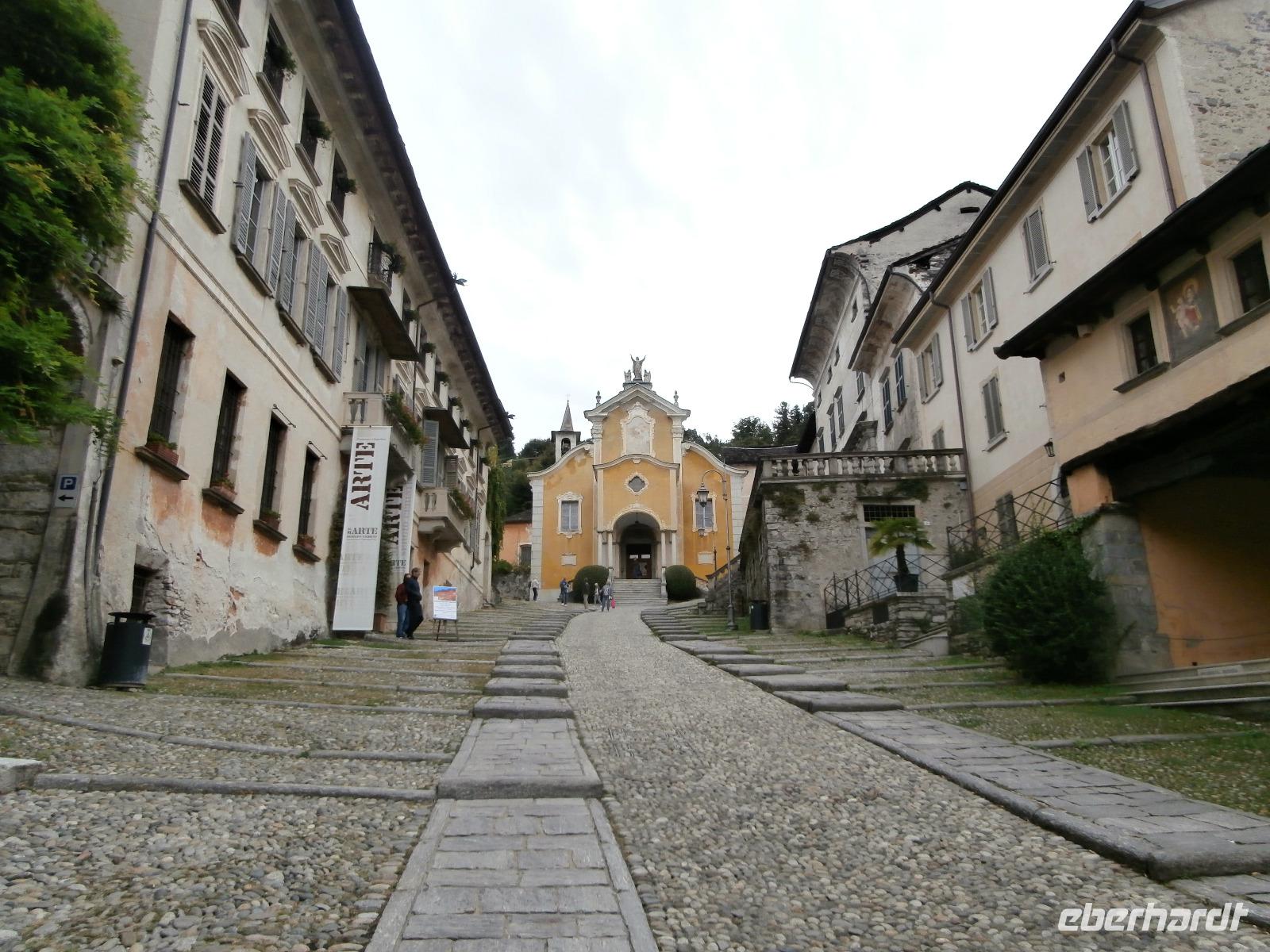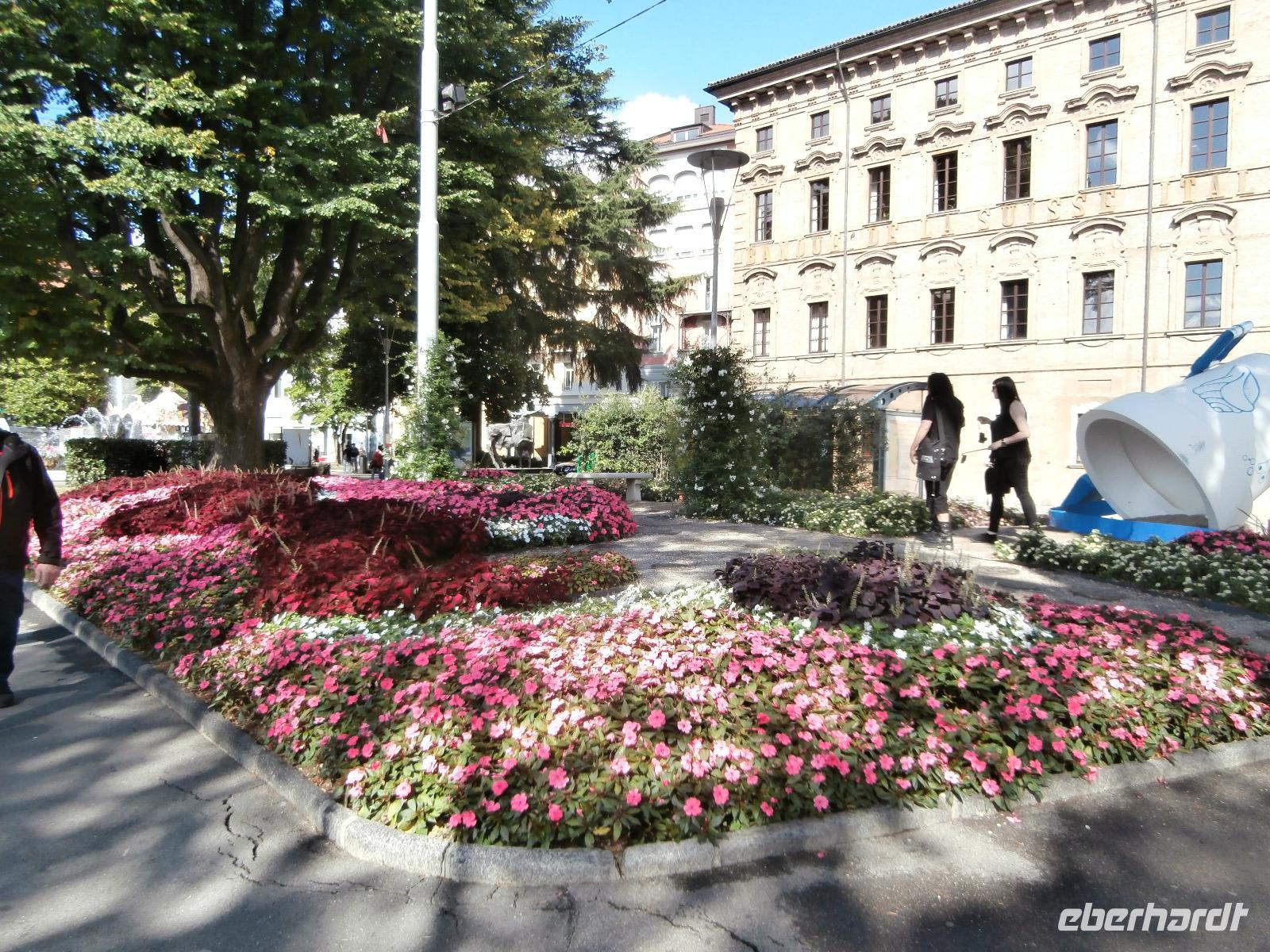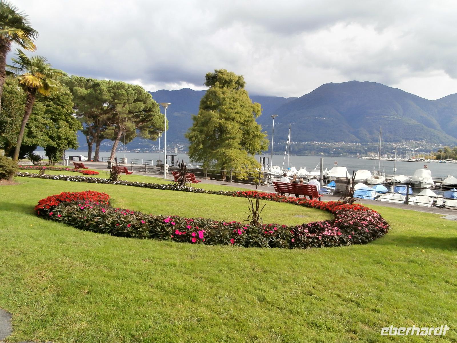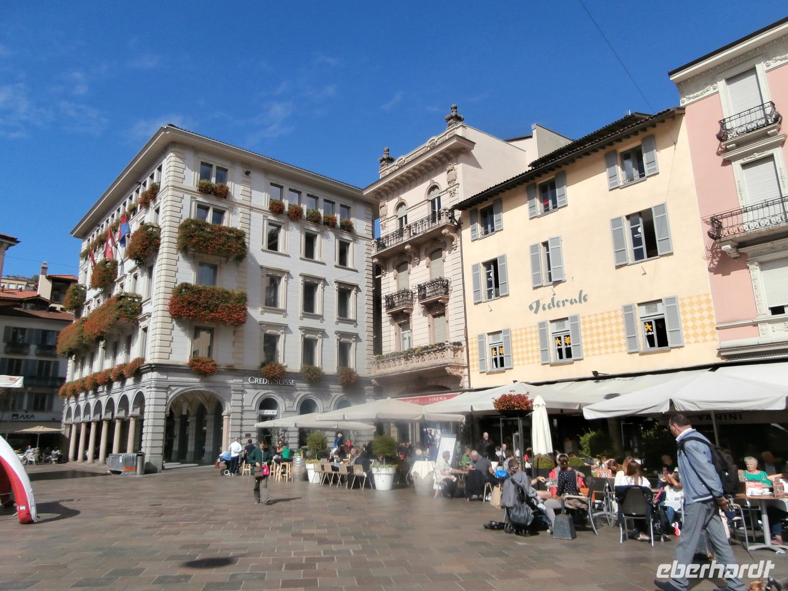 Anschließend erreichen wir Locarno, mit der Standseilbahn fahren wir gemeinsam zur Wallfahrtskirche „Madonna del Sasso". Leider stellt sich hier oben der Spaziergang zur Kirche über viele Stufen hinab und dann wieder hinauf als nicht gerade leichte Übung heraus. Ich bin am Ende froh, dass Sie liebe Gäste alles so gut mitgetragen haben, danke. Unten in Locarno wieder angekommen nutzen wir die Freizeit zum Bummeln am Lago Maggiore, zum Eis essen und Kaffee trinken im noblen Ort.