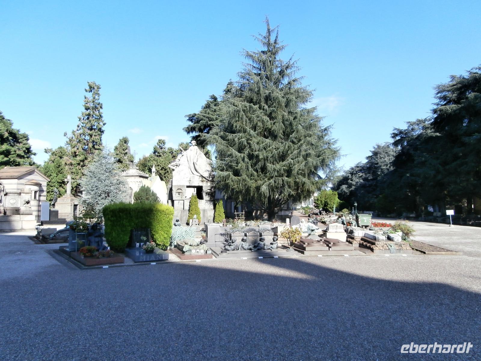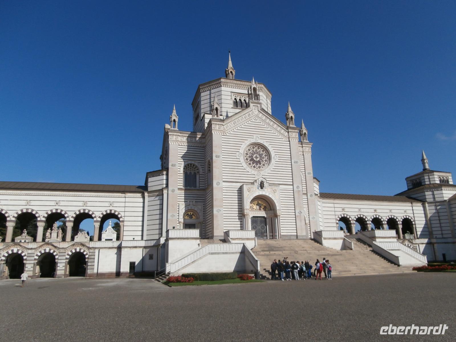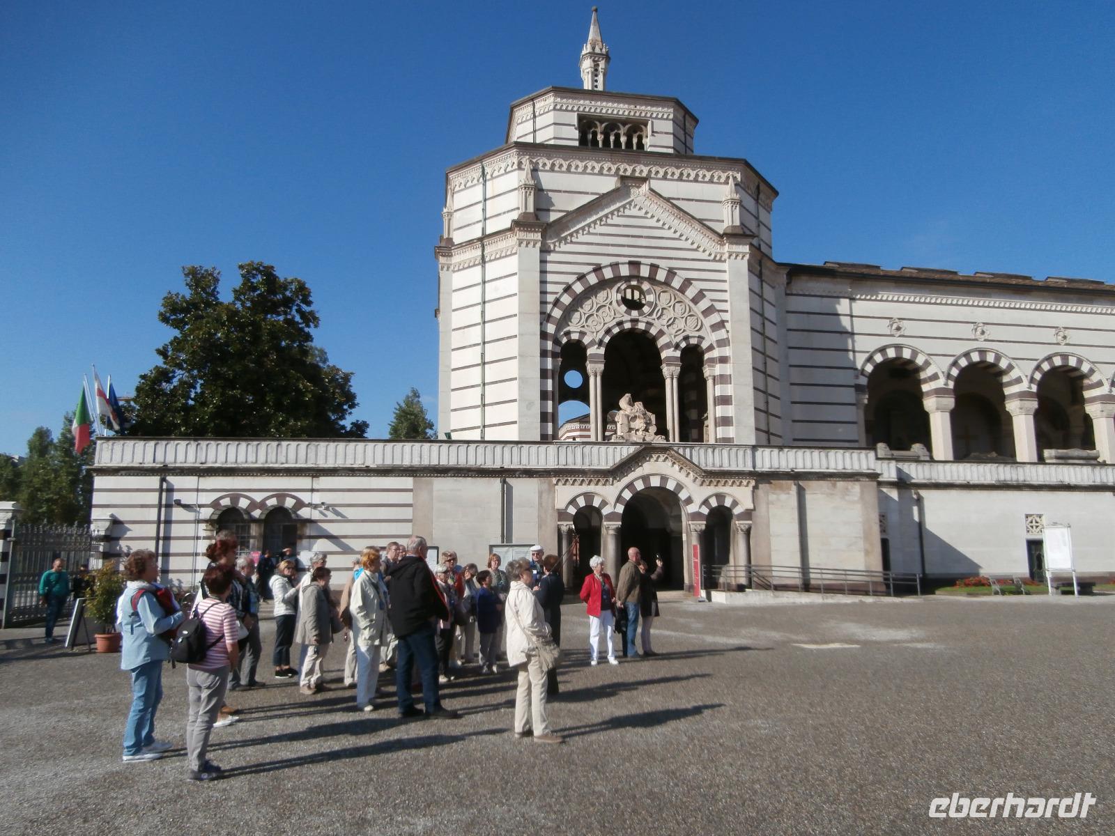Die Modestadt lernen wir mit unserer örtlichen Reiseleitung Mariarosa kennen. Sie treffen wir am Monumentalfriedhof „Cimitero Monumentale", ihn besichtigen wir gemeinsam. 1865 hat man ihn als einen Bürgerfriedhof angelegt, hier sehen wir gigantische Familiengruften, bestattet wird heute immer noch hier, aber nur berühmte und betuchte Menschen finden ihre letzte Ruhe auf diesem Friedhof.