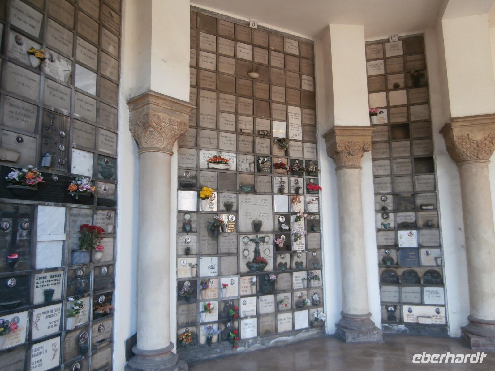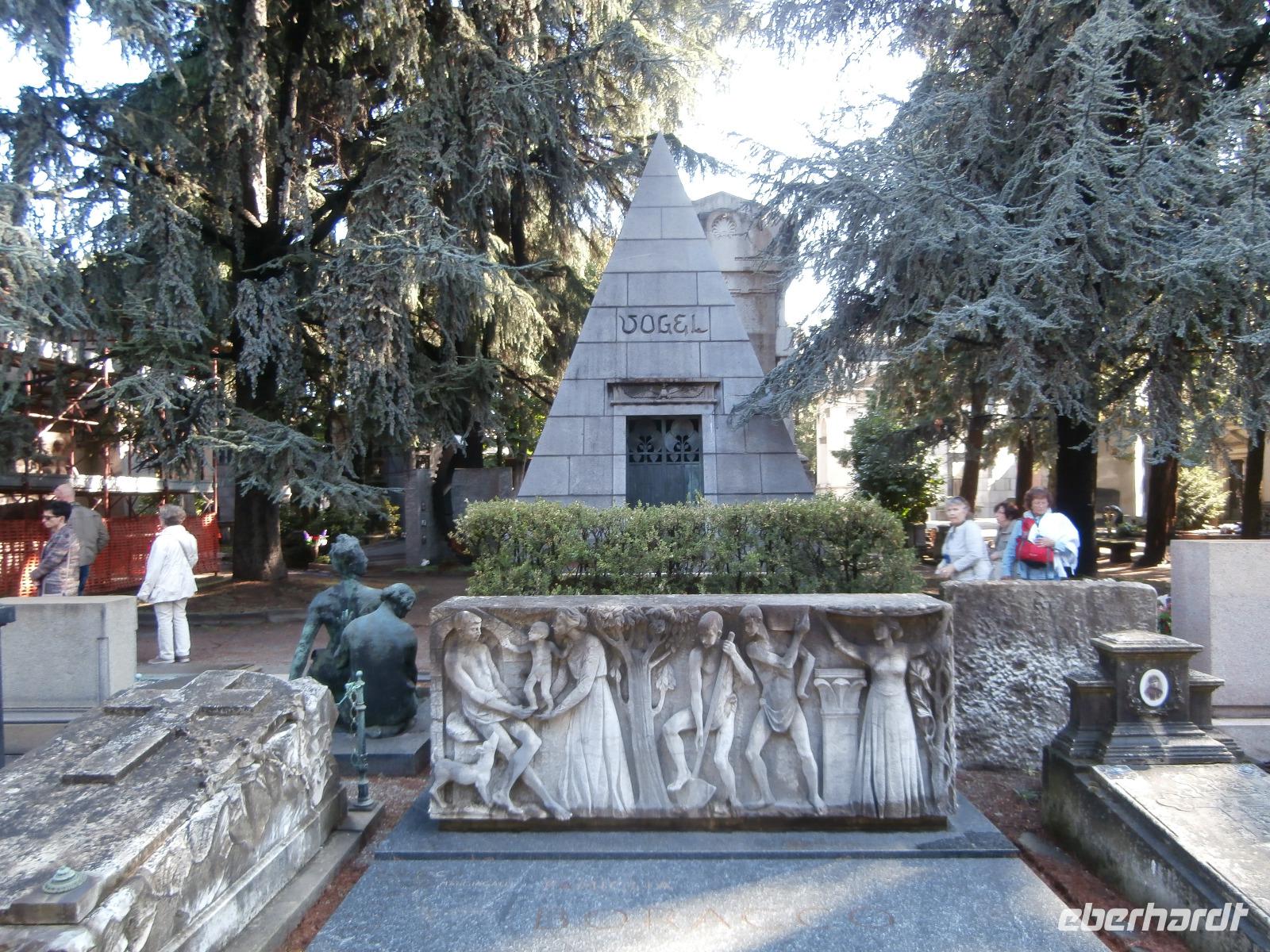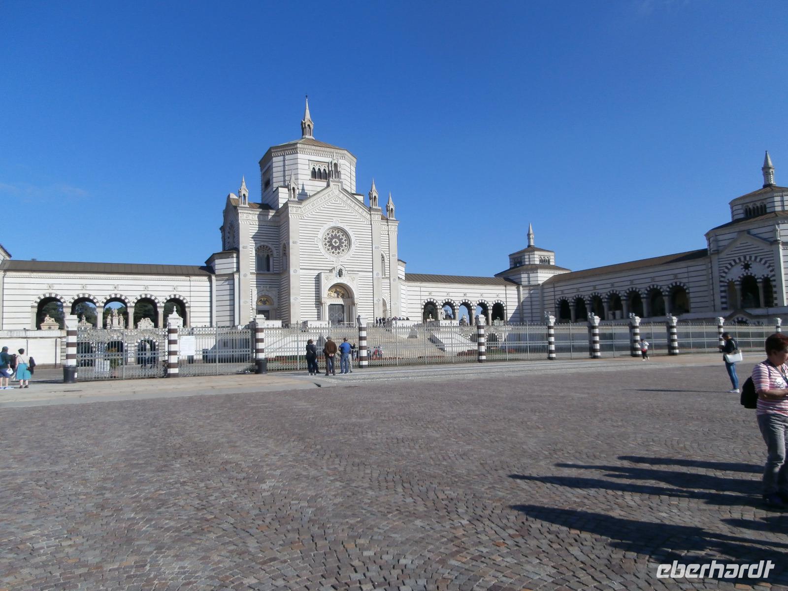 Die Modestadt lernen wir mit unserer örtlichen Reiseleitung Mariarosa kennen. Sie treffen wir am Monumentalfriedhof „Cimitero Monumentale", ihn besichtigen wir gemeinsam. 1865 hat man ihn als einen Bürgerfriedhof angelegt, hier sehen wir gigantische Familiengruften, bestattet wird heute immer noch hier, aber nur berühmte und betuchte Menschen finden ihre letzte Ruhe auf diesem Friedhof.