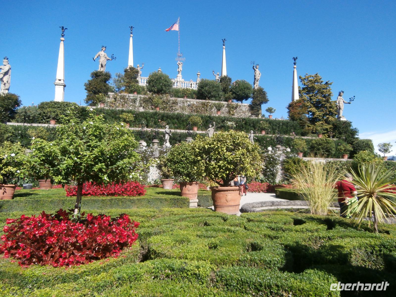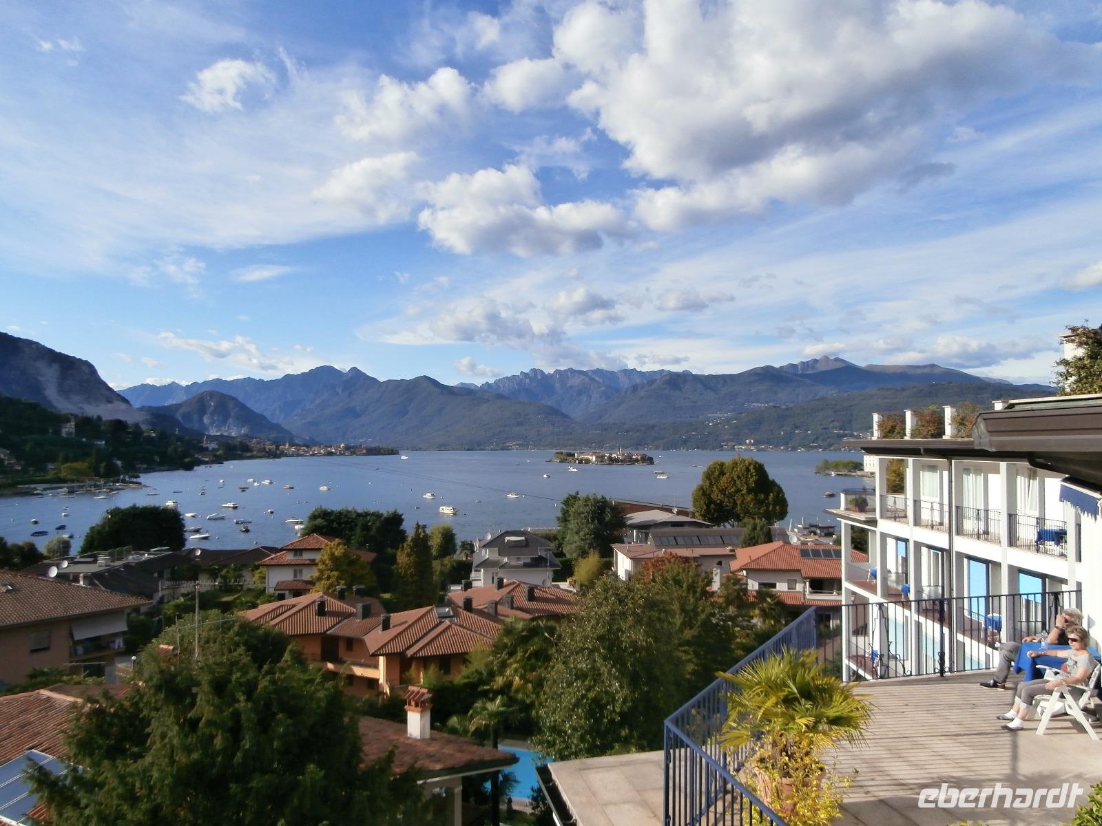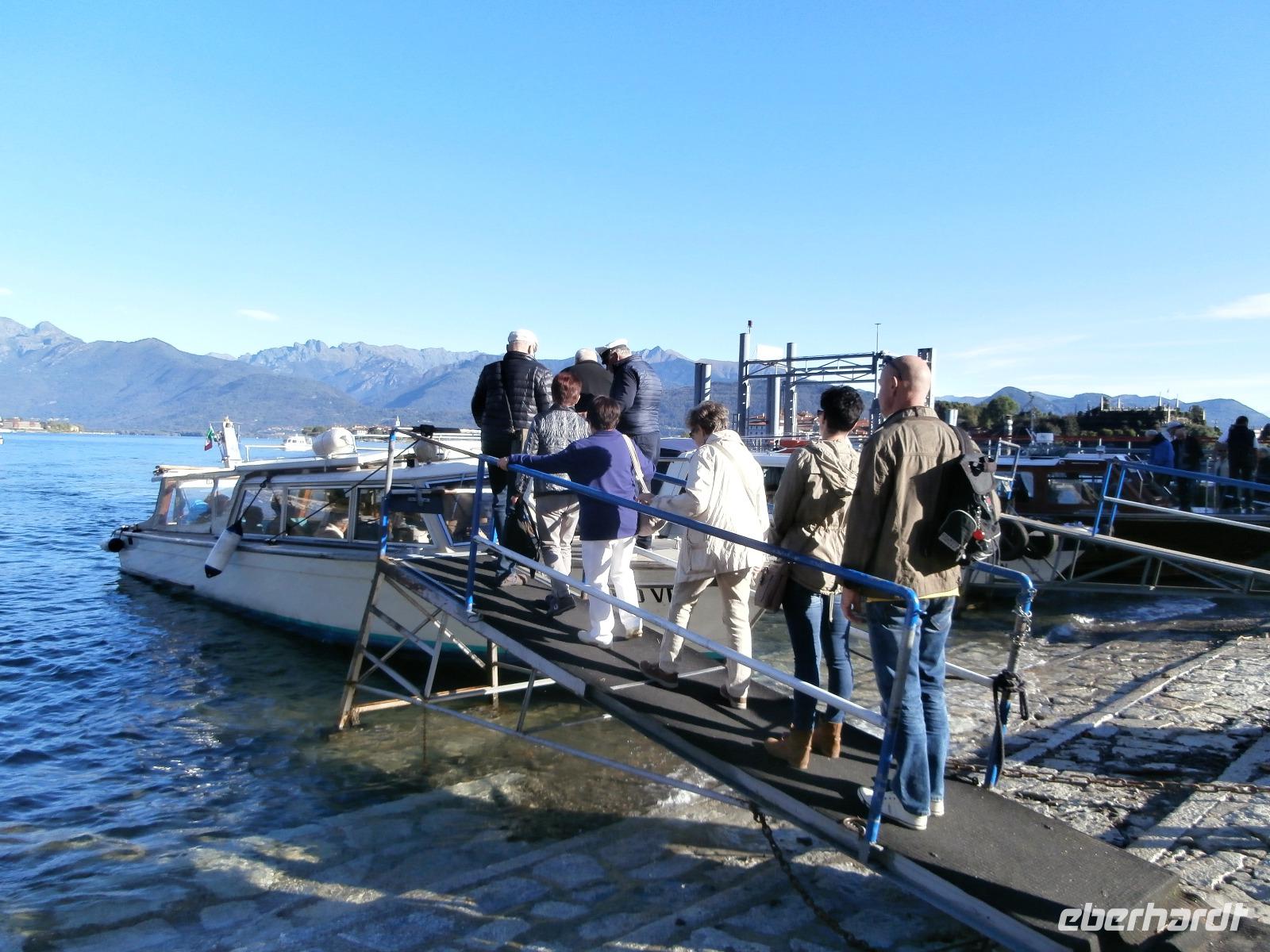 Herrlichen Sonnenschein und gute Laune haben wir wieder mit dabei und einen netten Kapitän mit Privatboot zur Überfahrt zur Isola Bella. Nach etwas Freizeit starten wir mit einer Führerin den Rundgang im Barocken Palast der Familie Borromeo, die Flagge ist zu sehen und das singnalisiert das Dasein vor Ort der Familie. Krönen dürfen wir unseren Ausflug mit dem Besuch der Terrassengärten, die wie ein Schiff angelegt sind. Palmen, exotische Bäume und Statuen können wir beim Rundgang bewundern. Zurück am Anleger bringt uns das Boot zur Isola Madre, die Mutterinsel erschließen wir uns mit Franceca, sie führt zum ersten Mal eine deutsche Gruppe, wir genießen den Rundgang mit ihr. Das besonders milde Klima ermöglicht das Gedeihen einer erstaunlichen Pflanzenwelt, wir bewundern die teilweise sehr seltenen Pflanzen und alten Bäume aus den verschiedensten Ländern im Botanischen Garten. Im Palast des 16. JH. im Renaissancestil können über einhundert historisch wertvolle Gemälde und Einrichtungsgegenstände im Original bewundert werden. Als Zugabe fahren wir noch zur Isola Pescatori, der Fischerinsel. Sie ist die kleinste der drei Borromäischen Inseln, neben der kleinen Kirche stehen die alten Häuser der einfachen Leute, sie beherbergen heute Läden und viele Restaurants, die zum Verweilen einladen. Wir nutzen die Gelegenheit, es ist höchste Zeit für Mittag. Unser netter Kapitän bringt uns zur vereinbarten Zeit wieder zurück an Land und zum Hotel Royal. Den letzten Nachmittag vor Ort nutzen die Gäste für Bummel in Stresa oder die Auffahrt zum Mottarone.