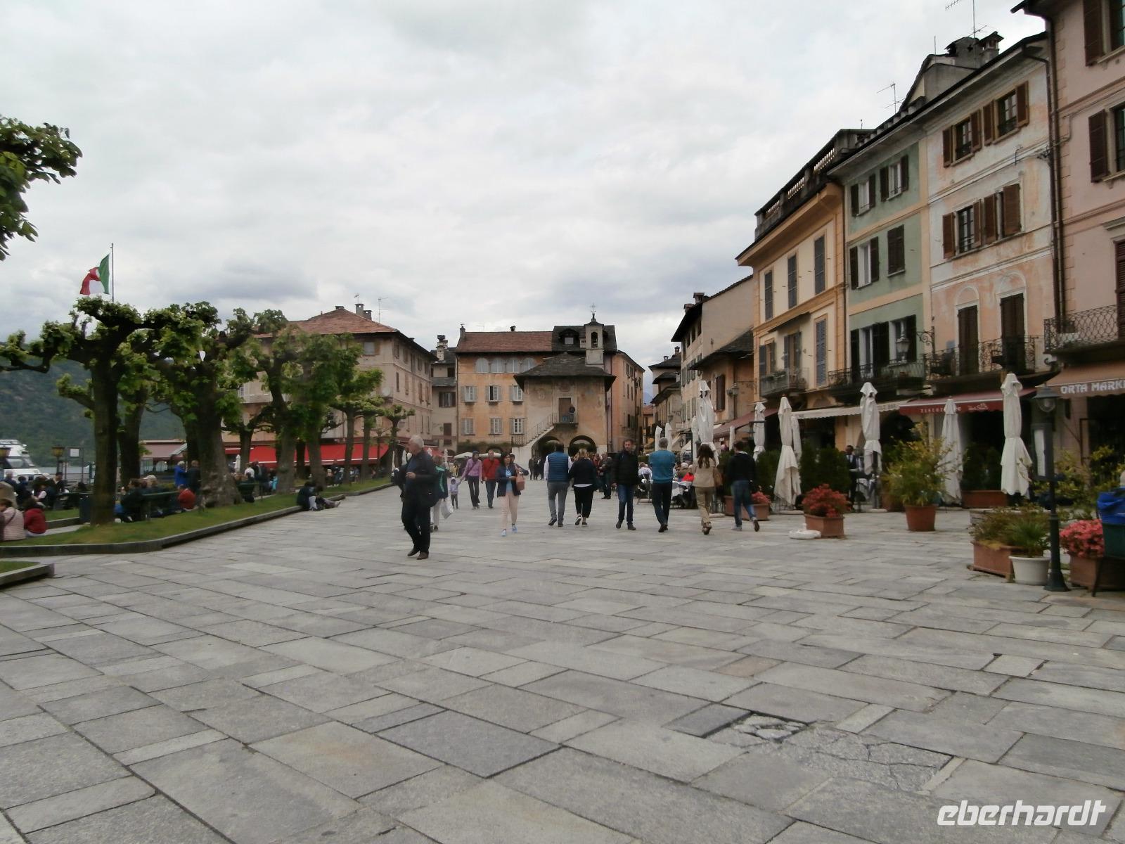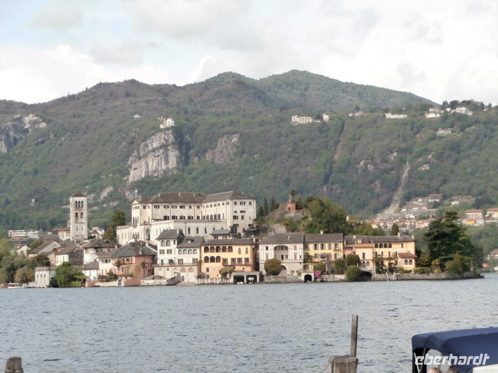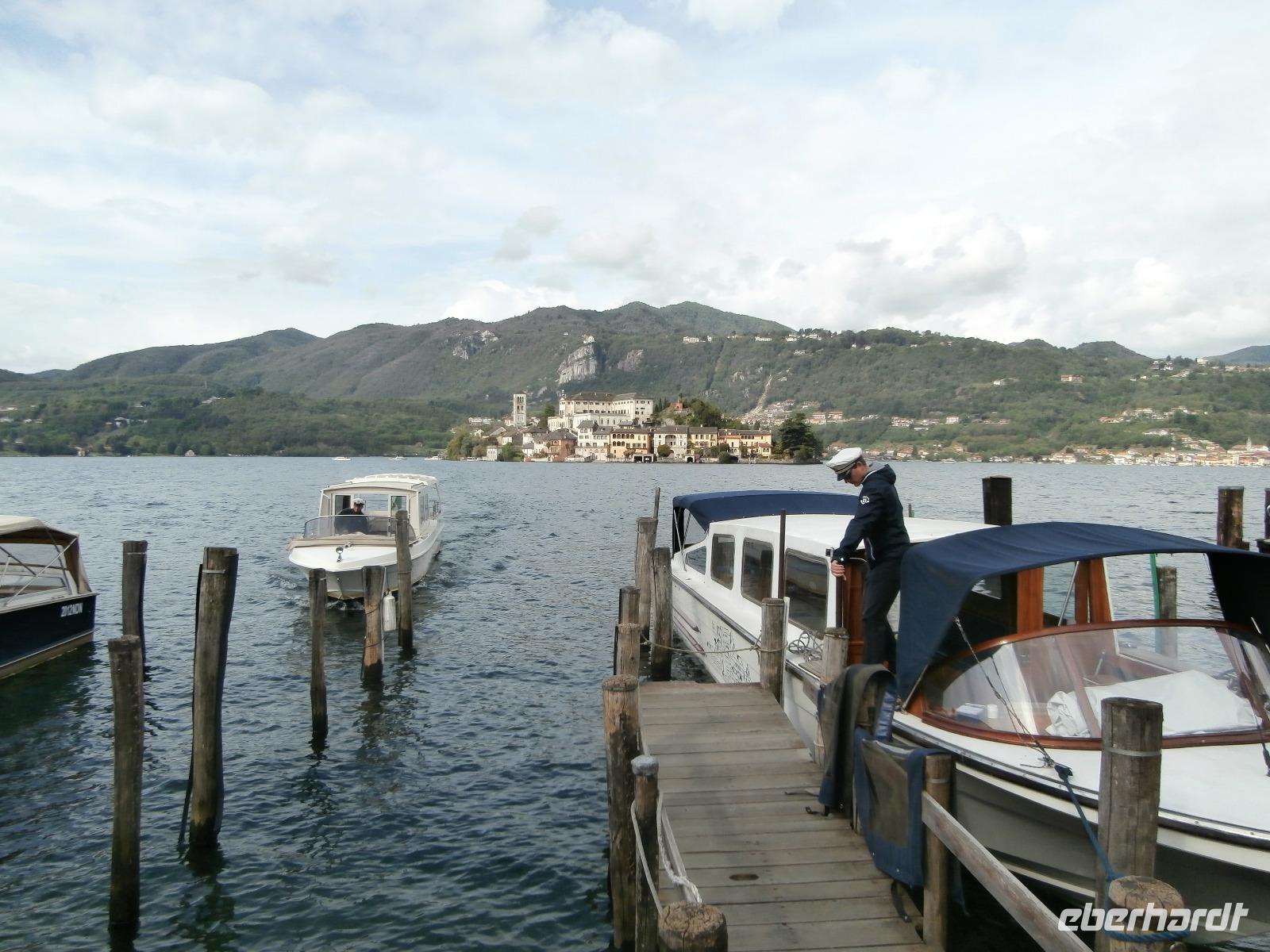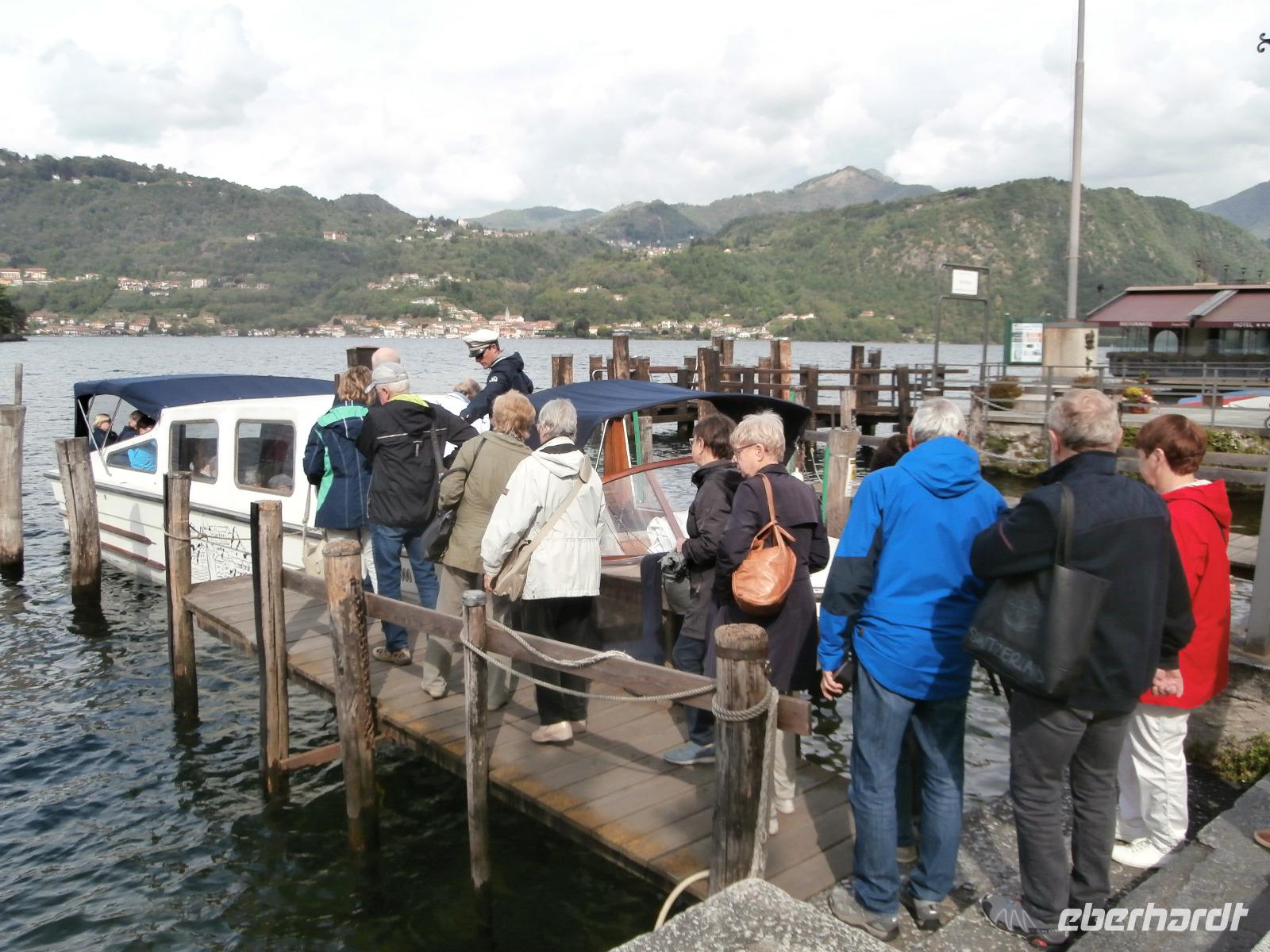 Zum Ortasee fahren wir am Feiertag, dieser See liegt westlich vom Lago Maggiore, ist dreizehn Kilometer lang und empfängt uns mit angenehmem Wetter. Bis nach Orta San Giulio geht die Fahrt, wir steigen am Parkplatz ins Zügli um und fahren bis hinein ins Zentrum des Ortes. Nach einem kurzen Spaziergang bis zur Piazza Mario Motta, steigen wir in ein Boot um, unsere Fahrt geht hinüber zur Isola San Giulio. Sie ist nach dem griechischen Diakon Julius, der hier im 4. JH lebte und eine kleine Kirche bauen ließ, benannt. Es ist die heutige romanische Basilika, sie hat in ihrem Inneren schöne spätmittelalterliche Fresken. Wir umrunden gemeinsam bei einem Spaziergang die kleine Insel. Zurück geht es wieder nach Orta mit dem Boot, das Zentrum ist reich an Zeitzeugen, schön anzusehen das alte Rathaus aus dem 16. Jahrhundert. Vor ihm nehmen wir unser Gruppenfoto auf. Nach der Freizeit für Einkäufe und zum Bummeln, geht die Fahrt zurück zum Bus mit dem Zügli