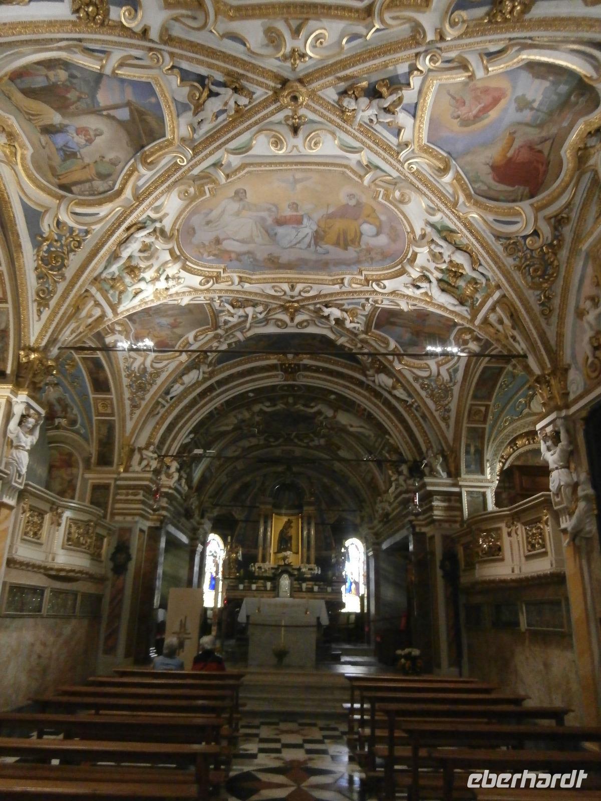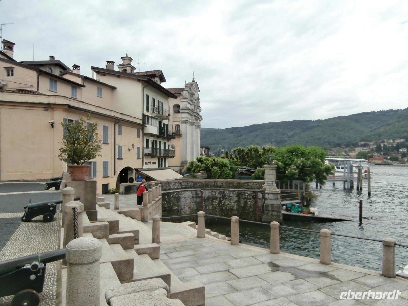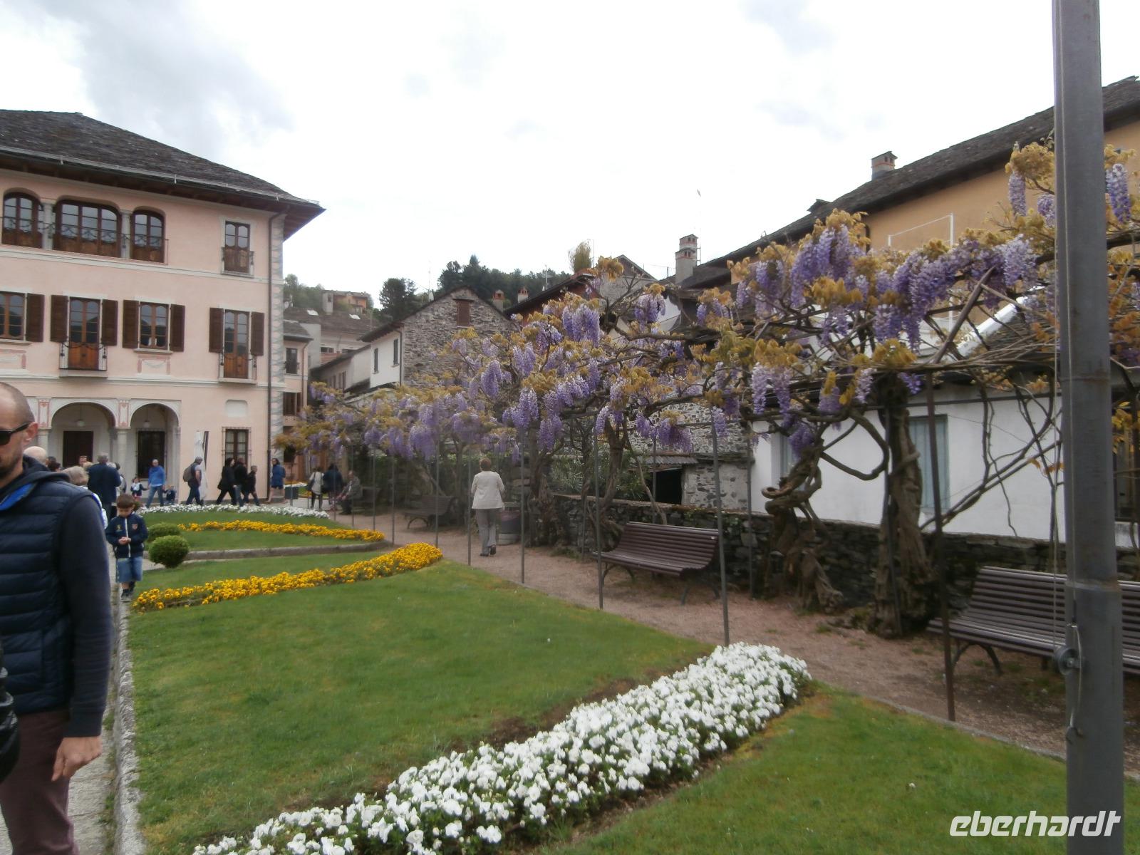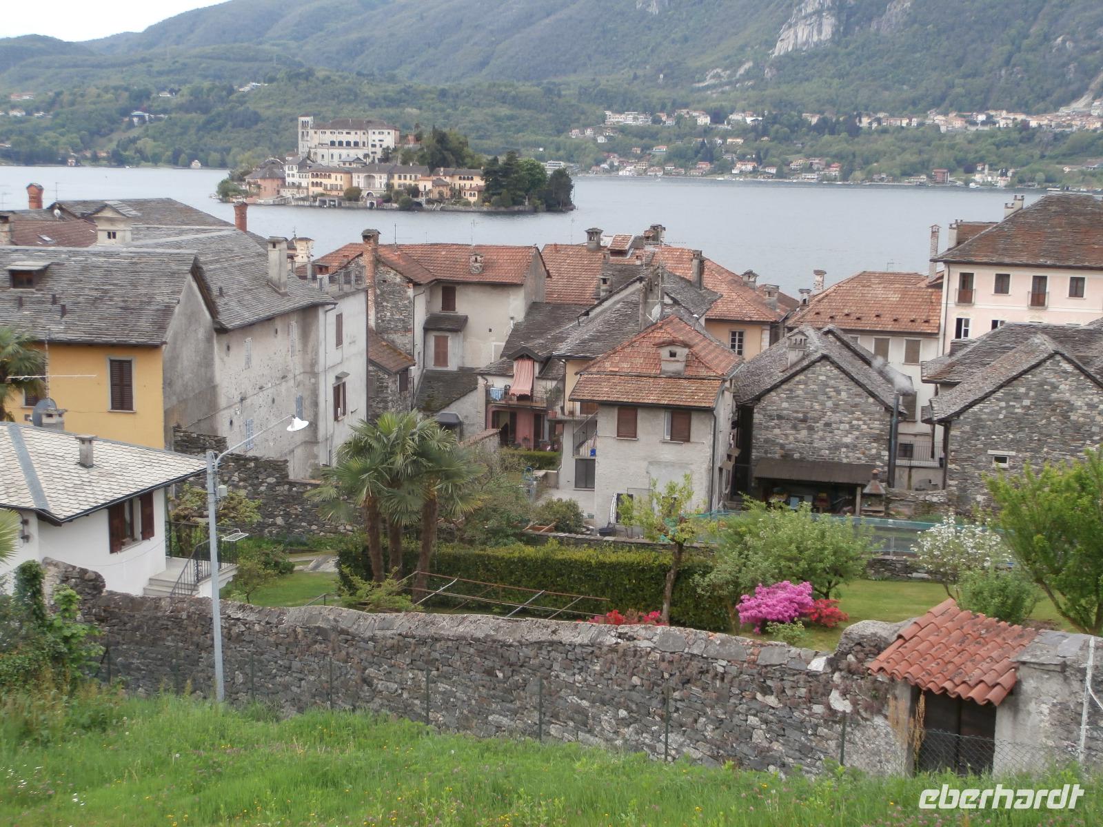 Zum Ortasee fahren wir am Feiertag, dieser See liegt westlich vom Lago Maggiore, ist dreizehn Kilometer lang und empfängt uns mit angenehmem Wetter. Bis nach Orta San Giulio geht die Fahrt, wir steigen am Parkplatz ins Zügli um und fahren bis hinein ins Zentrum des Ortes. Nach einem kurzen Spaziergang bis zur Piazza Mario Motta, steigen wir in ein Boot um, unsere Fahrt geht hinüber zur Isola San Giulio. Sie ist nach dem griechischen Diakon Julius, der hier im 4. JH lebte und eine kleine Kirche bauen ließ, benannt. Es ist die heutige romanische Basilika, sie hat in ihrem Inneren schöne spätmittelalterliche Fresken. Wir umrunden gemeinsam bei einem Spaziergang die kleine Insel. Zurück geht es wieder nach Orta mit dem Boot, das Zentrum ist reich an Zeitzeugen, schön anzusehen das alte Rathaus aus dem 16. Jahrhundert. Vor ihm nehmen wir unser Gruppenfoto auf. Nach der Freizeit für Einkäufe und zum Bummeln, geht die Fahrt zurück zum Bus mit dem Zügli