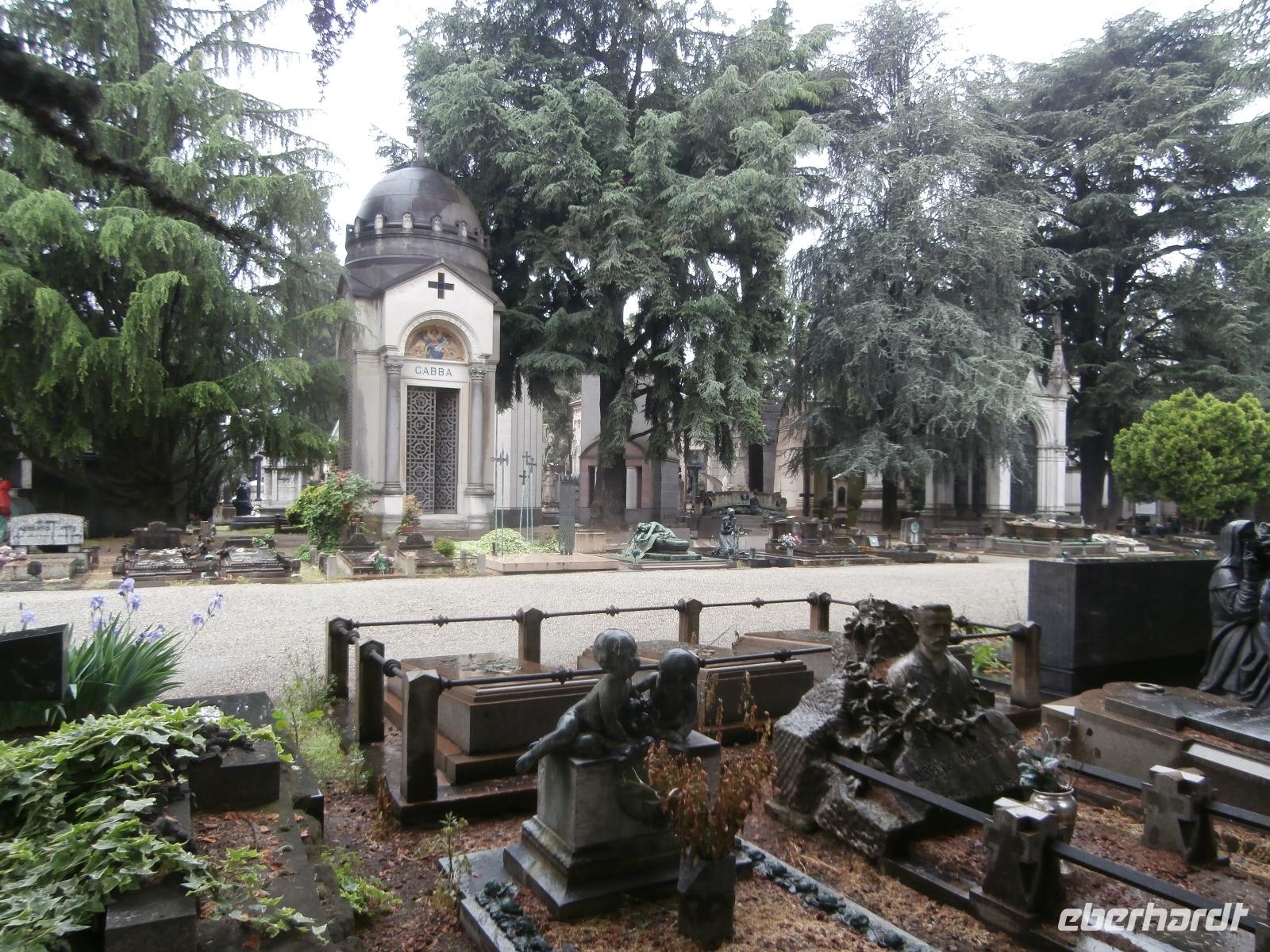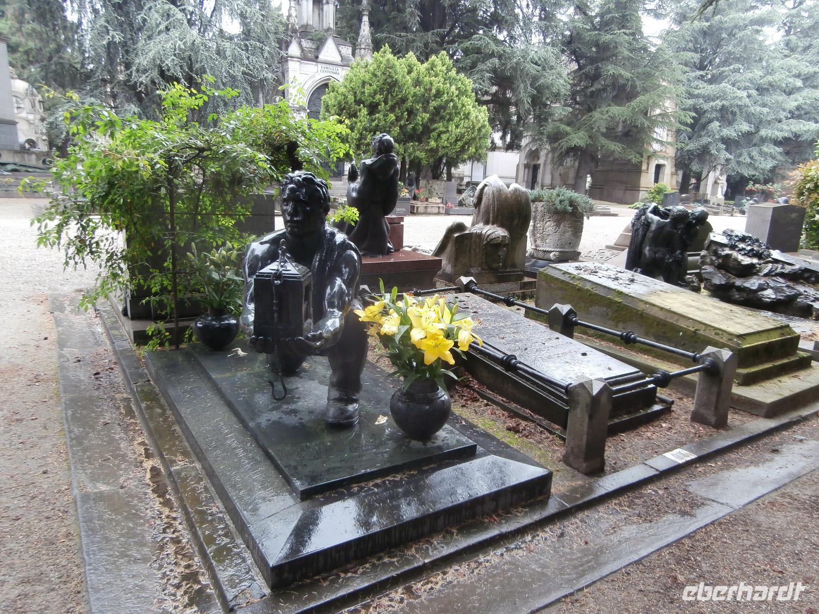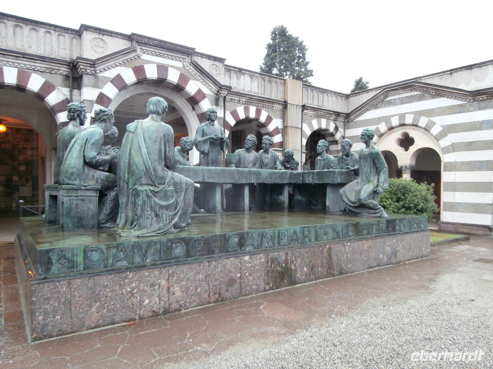 Zeitig geht es heute Morgen los, die Fahrt nach Mailand steht auf dem Programm. Das Wetter bringt uns heute Regen ohne Ende, wir lernen mit unserer örtlichen Reiseleitung Fedra Mailand besser kennen. Sie treffen wir am Monumentalfriedhof „Cimitero Monumentale" und mit ihr besichtigen wir ihn gemeinsam. 1865 hat man ihn als einen Bürgerfriedhof angelegt, hier sehen wir gigantische Familiengruften, bestattet wird heute immer noch hier, aber nur berühmte und betuchte Menschen finden ihre letzte Ruhe auf diesem Friedhof. Die Familie Campari hat sich auf dem Friedhof gleich ein ganzes Abendmahl schaffen lassen.