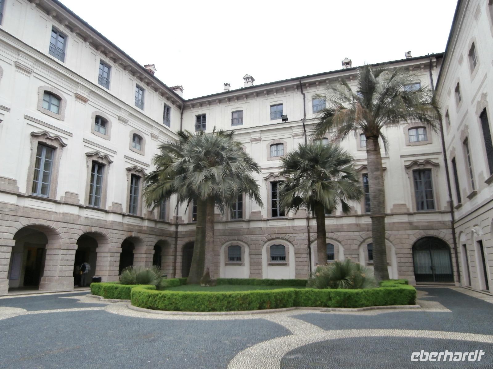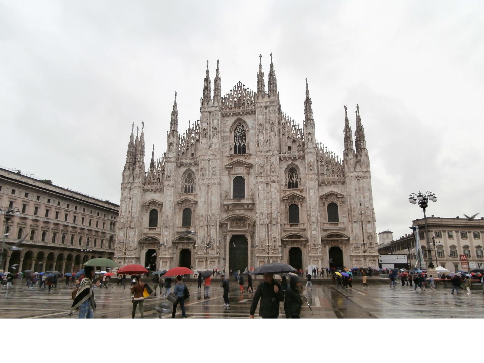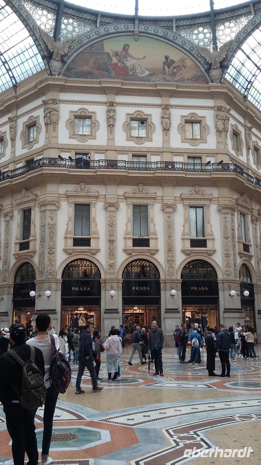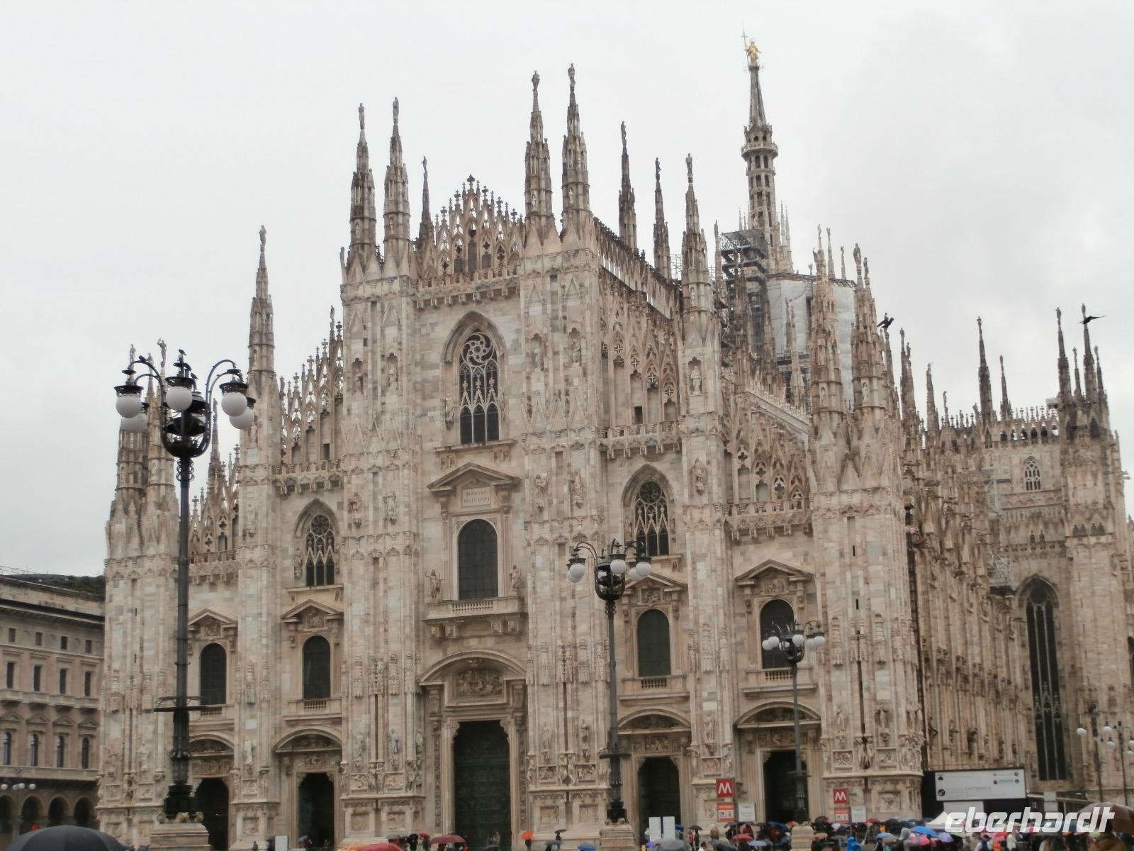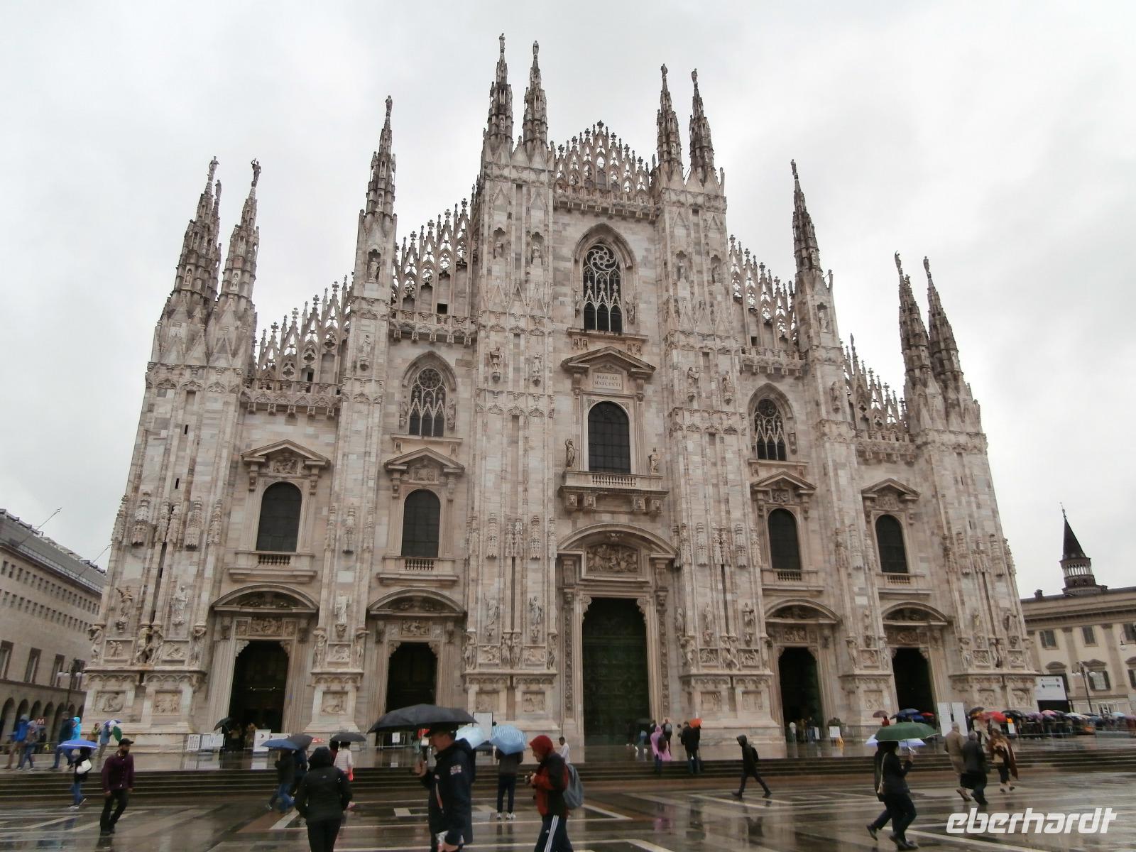 Mit dem Bus starten wir bei Regen zur Stadtrundfahrt. Am Piazza Della Scala dürfen wir heute mit Fedra hinein zur Besichtigung der Scala, Fedra ist sehr verbunden mit dem Opernhaus und berichtet mit Begeisterung von den Aufführungen, die Mailänder Scala ist der älteste im Original erhaltene Opern Bau der Welt. Von außen etwas nüchtern das Bauwerk, begeistert die Scala mit einer prachtvollen Innenausstattung. Wir spazieren gemeinsam durch die edle Galleria Vittorio Emanuele II., prächtig mit Mosaiken ausgestattet und teuren Geschäften. Unser Stadtrundgang endet am Dom, wie Zuckerbäckerwerk wirkt der Duomo auf uns. Über seinem Vierungsturm in 108 m Höhe wacht die vergoldete Marienstatue als Symbolfigur Mailands über das Wohl der Stadt. Bis Anfang des 16. JH war der Mailänder Dom die größte Kirche der Welt. Bei viel Regen nutzen wir die Zeit zum Shoppen in der Modestadt Mailand und zum Bummeln in geschützten Laubengängen.
