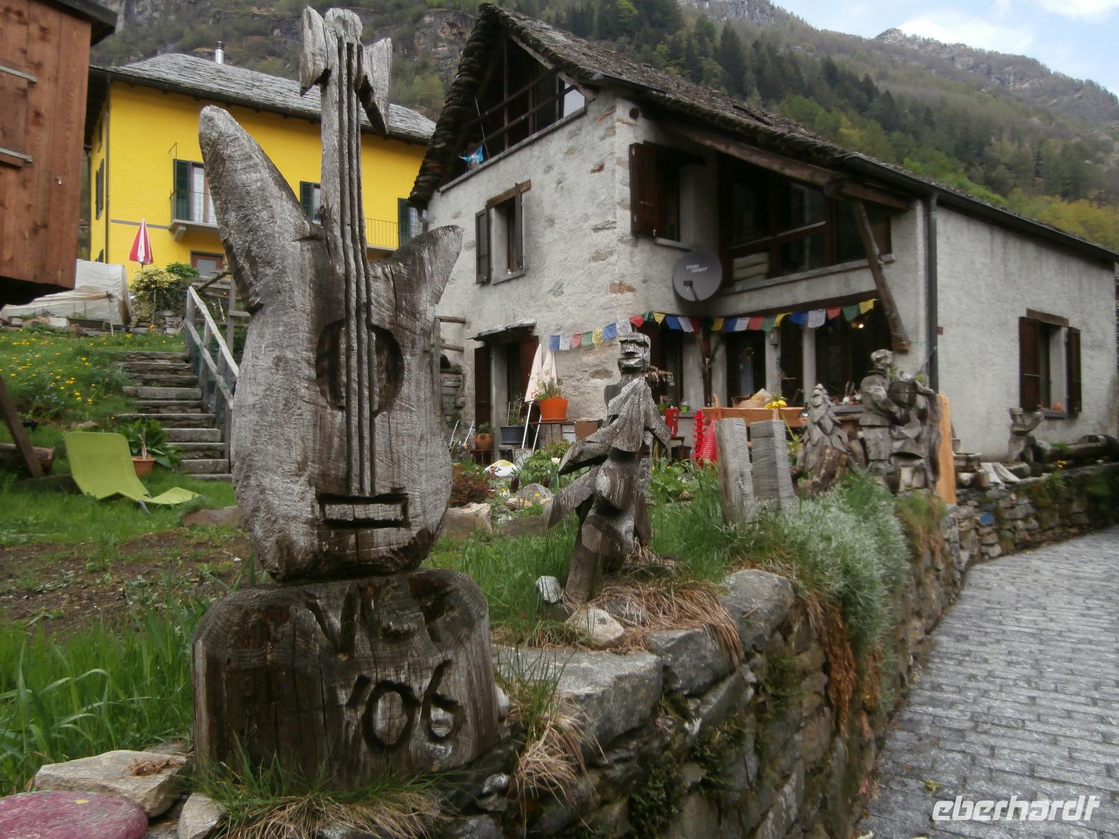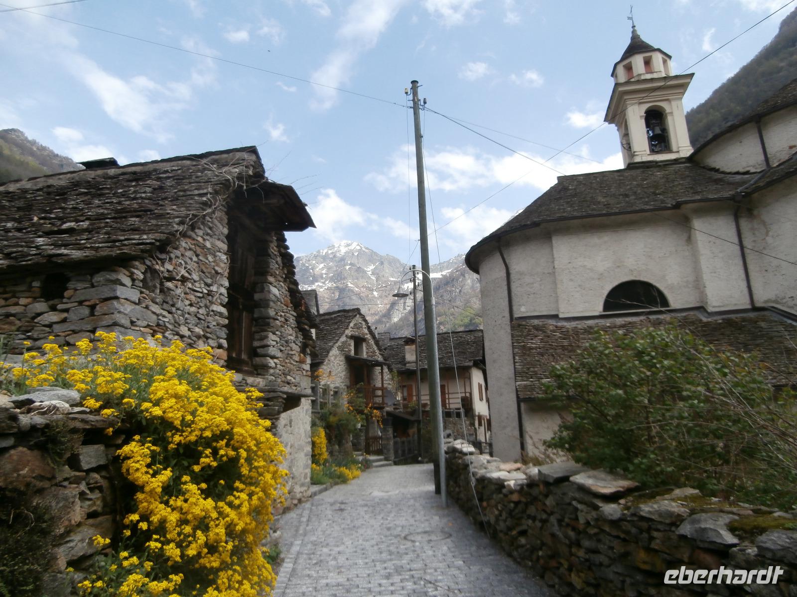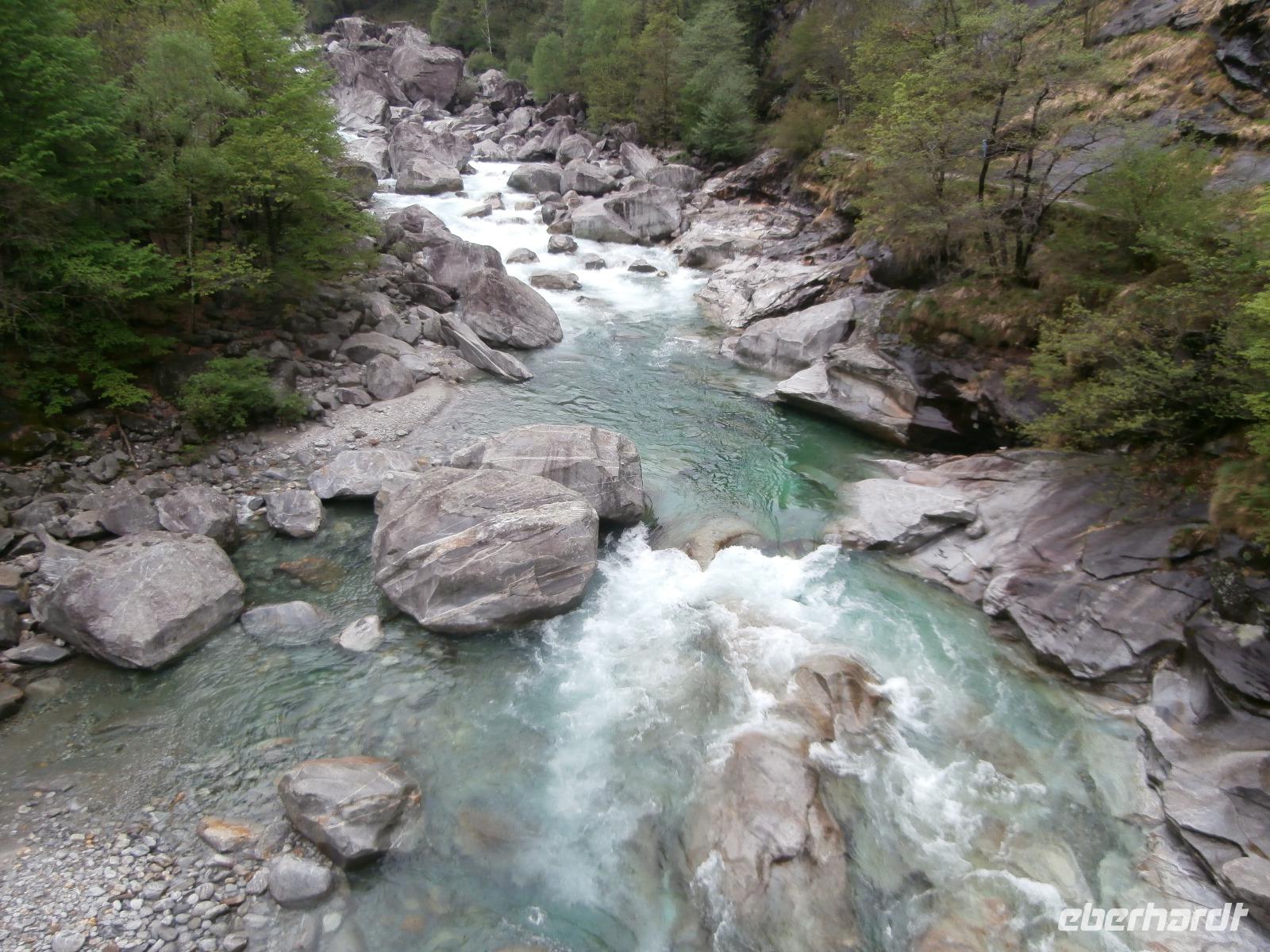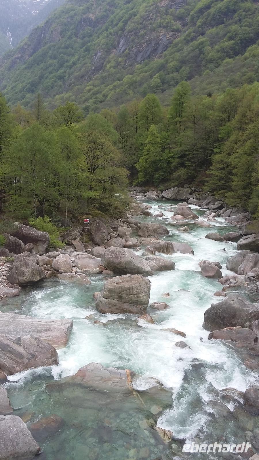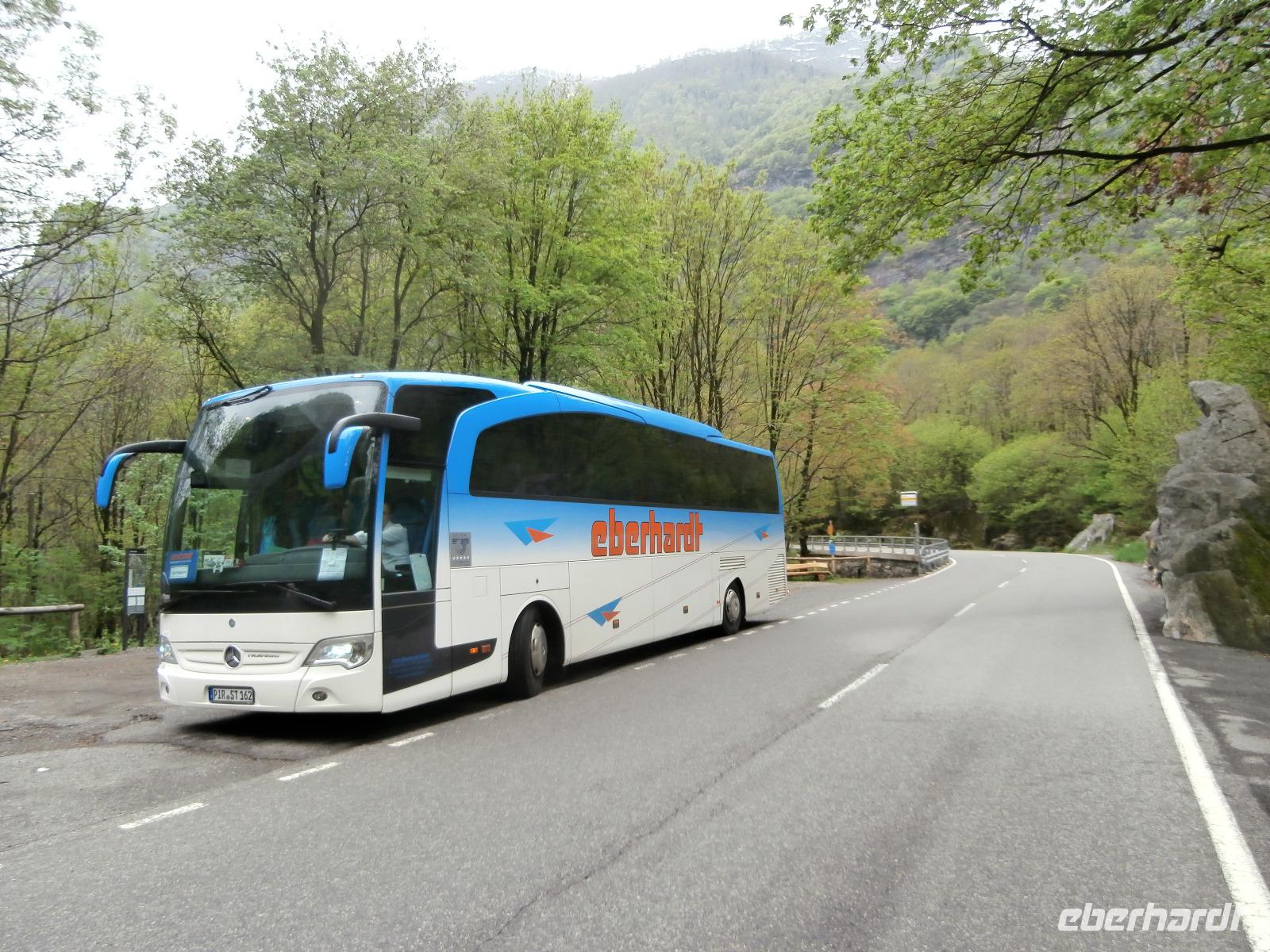Entlang des Lago Maggiore fahren wir am Morgen, passieren die Schweizer Grenze und fahren an Ascona und Locarno vorbei in das fantastische Verzascatal, übersetzt auch das grüne Wasser und das sehen wir zwischen sehr großen Steinen, die das Wasser glatt und rund gehobelt hat, dahin fließen. Unseren ersten Stopp legen wir an der Staumauer „ La Selvatica" ein. Sie ist 220 Meter hoch und 380 m lang, wir spazieren auf ihr entlang. Von der Staumauer stürzte sich James Bond im Film „Golden Eye" in die Tiefe. Wir setzen unsere Fahrt im kurvenreichen Tal fort und der nächste Aufenthalt gilt dem Ort Sonogno auf 918 m Höhe, auch das letzte Dorf des Tales. Typische Häuser im gut erhaltenen Ortskern und die schöne Bepflanzung mit Frühlingsblumen begeistert uns alle. Zurück auf Fahrt im Verzascatal kommen wir an der römischen 2 Bogen Brücke „Ponte die Salti" an. Diese schöne mittelalterliche Brücke aus Stein ruht auf einem natürlichen Granitpfeiler.