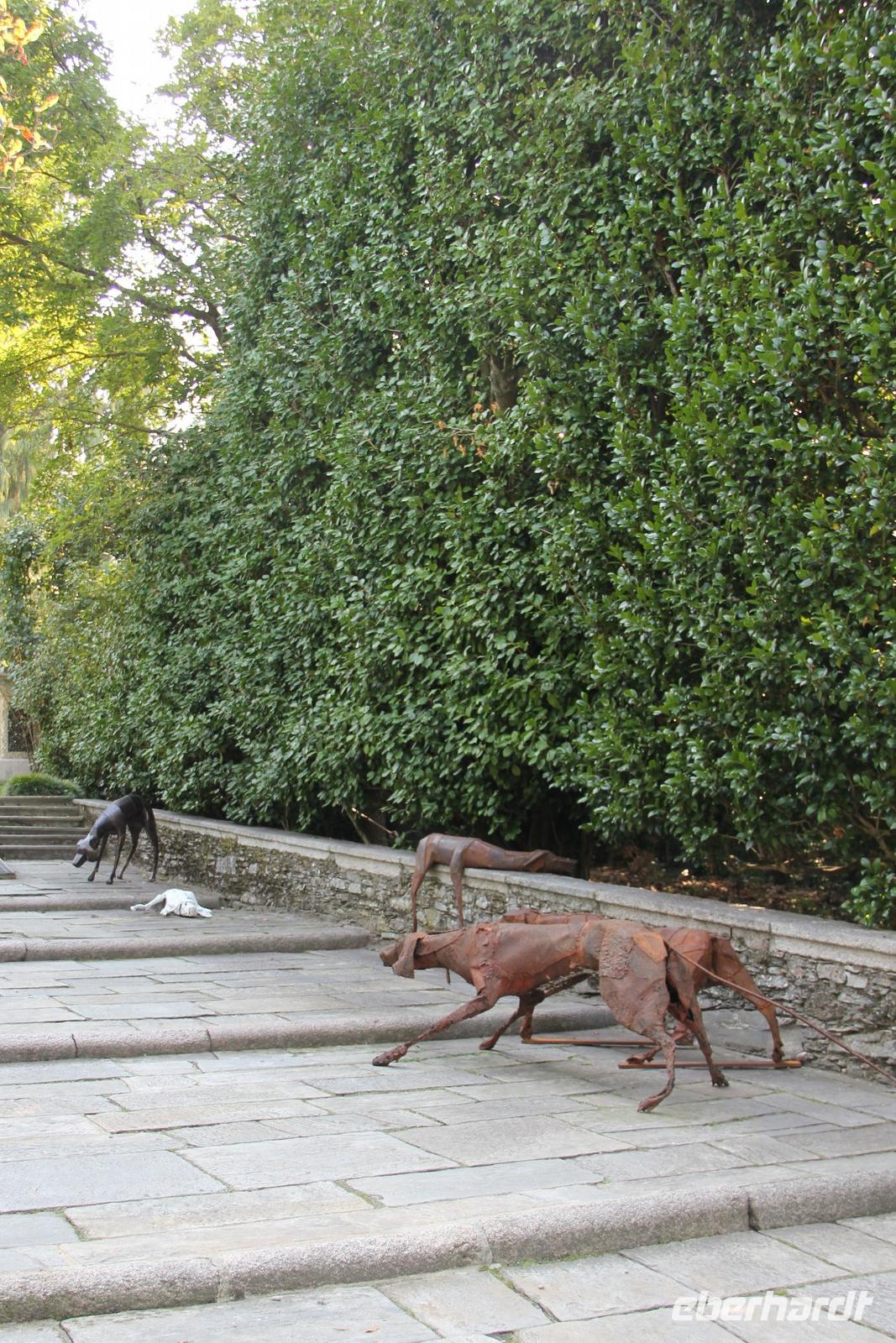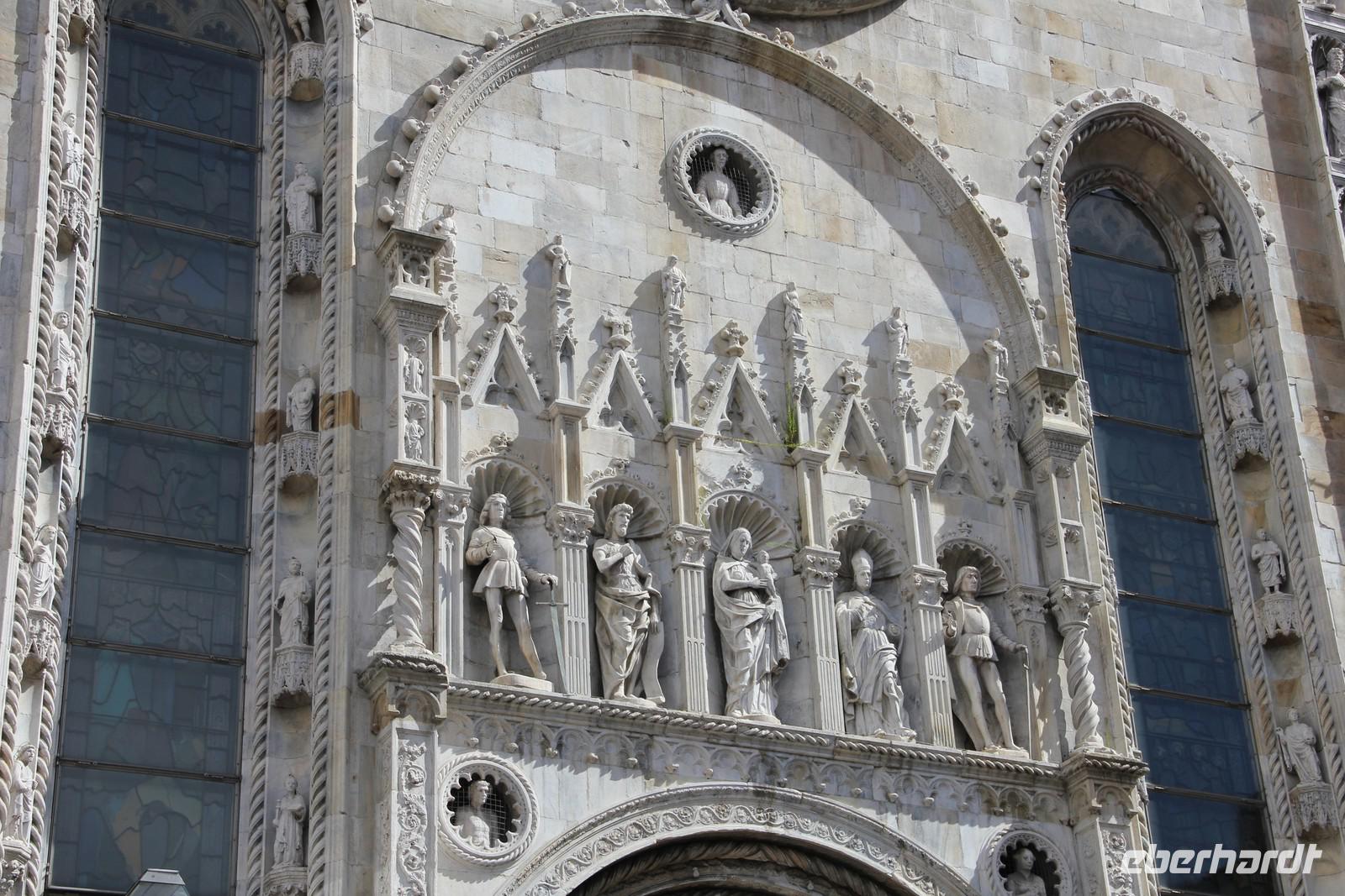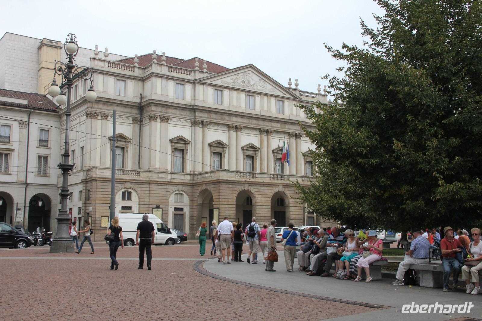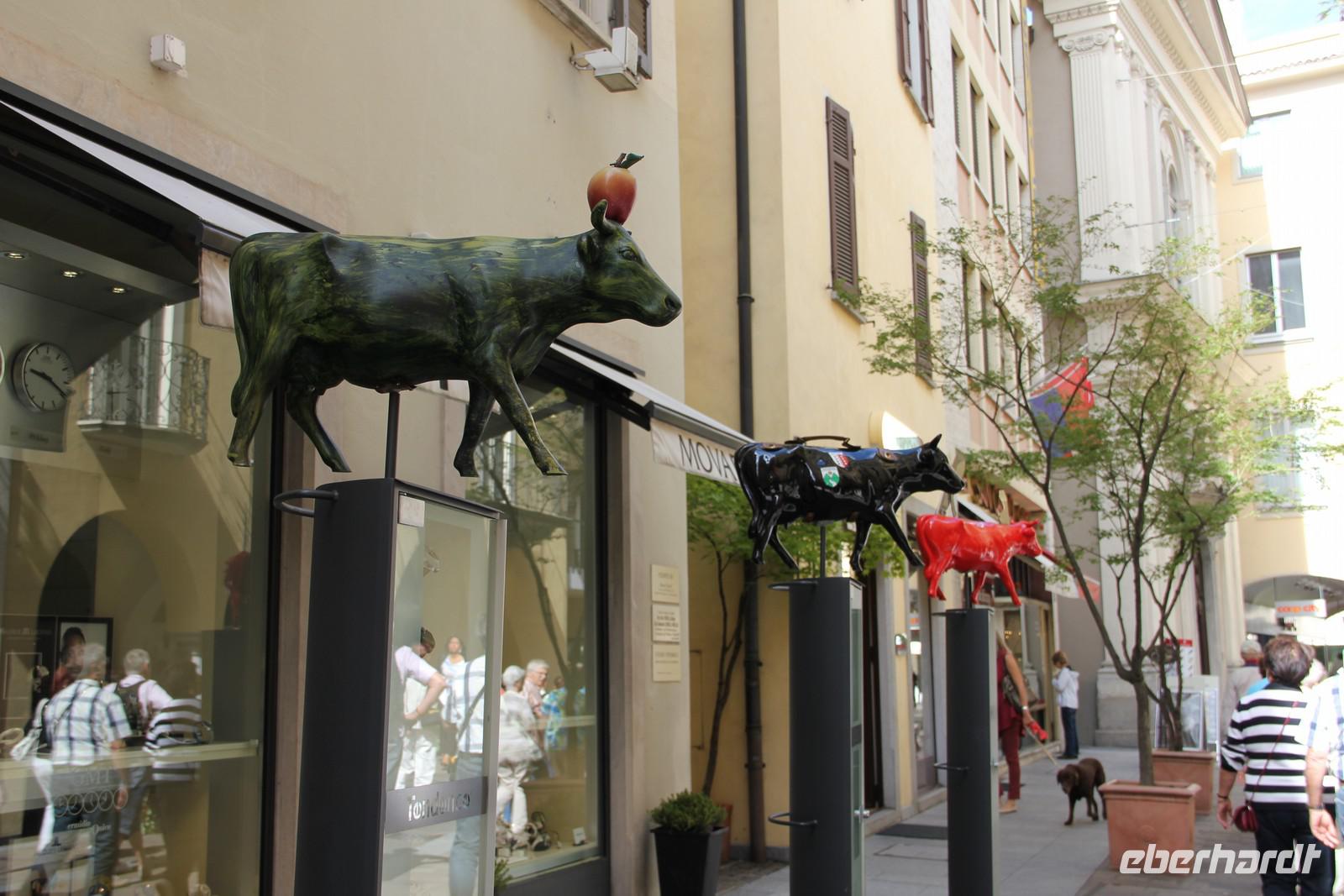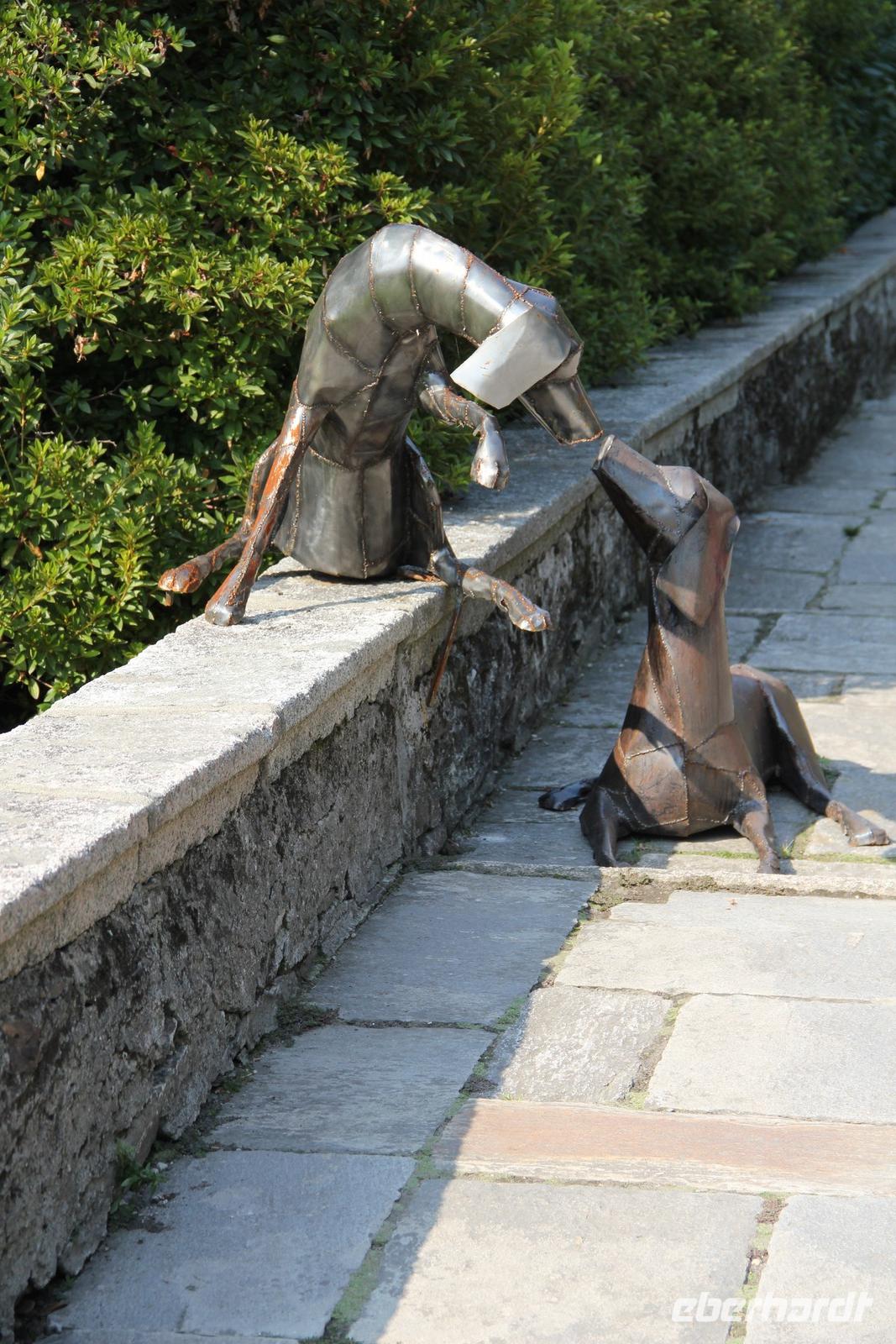 Mailand, das wirtschaftliche Zentrum des Landes, zweitgrößte Stadt nach Rom und ganz klar DIE Modemetropole Italiens. Ausgestattet mit Audio-Guides führte Freda uns durch Mailand. Als erstes sahen wir das Castello Sforzesco, welches eigentlich mal der Familie Visconti gehörte. Wir hörten und lernten einiges über diese beiden einflussreichen italienischen Familien, die auch eng mit der Familie Borromeo verbunden sind. Später fuhren wir auf den Monumentalfriedhof, welcher durch aufwändig vollzierte Grabmälern besticht. Hier auf diesem Friedhof werden nur die großen italienischen Familien mit Rang und Namen beerdigt und jede hat ihre eigene Grabstätte. Die bekannteste auf diesem Friedhof ist wohl die der Familie Campari. Das Grabmal stellt - wie es die Italiener gern sagen - „Den letzten Aperitif" dar, eine Art Abwandlung des letzten Abendmahls. Später ging es weiter in die Innenstadt zur Außenbesichtigung des Teatro alla Scala, dem berühmten Mailänder Theater. Gleich nebenan wartete auch schon die Galleria Vittorio Emanuele II (kurz: Galleria) auf uns, ein Kaufhaus der teureren Art. In diesem Kaufhaus befindet sich eine Fußbodenplatte mit dem Stier von Turin darauf. Man sagt, dass eim Glück wiederfährt, wenn man sich dreimal auf dem Stier dreht. Schließlich führte Freda uns vorbei am Campari-Café zum Dom, welcher den Abschluss unserer heutigen Stadtführung bildete. Danach hatten alle etwas Freizeit zum Besichtigen des Doms oder auch gern der Scala. Im Laufe des Tages fing es ziemlich stark an zu regnen, doch wir ließen uns davon nicht unter bekommen, schließlich gab es genug Schirmverkäufer, die das große Geschäft witterten und so wurden wir auch nicht nass! Zudem hatte der Regen noch einen Vorteil: die Wasserspeier des Mailänder Doms kamen voll zum Einsatz und waren wunderschön anzuschauen. Bei Sonnenschein waren sie uns gar nicht so aufgefallen und somit hatten wir ein Fotomotiv mehr. Am späten Nachmittag ging es dann wieder Richtung Stresa ins Hotel, wo am Abend wieder ein fantastisches Abendessen auf uns wartete.