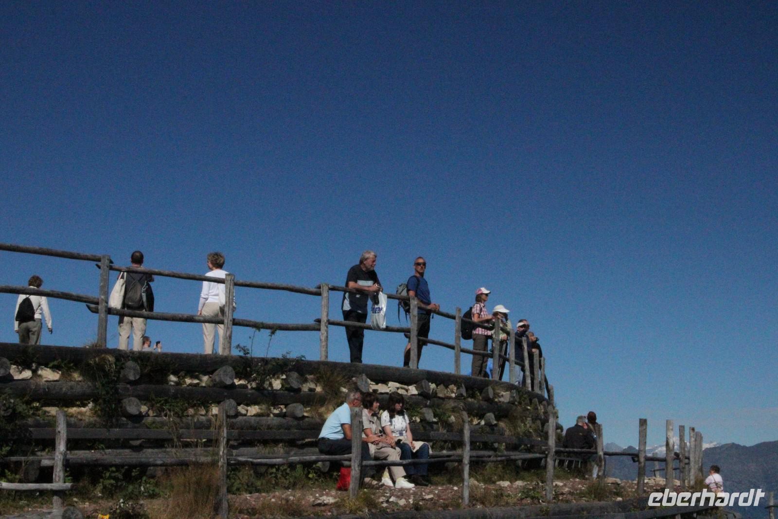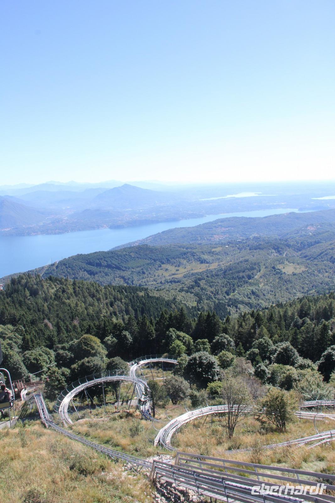 Heute stand der fakultative Ausflug auf den Monte Mottarone an. Mit der Seilbahn und dem Sessellift ging es am Morgen hoch auf 1491 Meter Höhe. Oben angekommen hatten wir einen wunderbaren Panoramablick auf die umliegenden Seen - so auch auf unser morgiges Ziel den Orta See. Die Sonne begleitete uns wieder einmal und so konnte man die Ruhe oben auf dem Gipfel wunderbar genießen und die kleine Terrasse lud zum Verweilen ein. Einige Mutige wagten eine Fahrt mit der 1,2 km langen Sommerrodelbahn oben auf dem Berg, bevor es wieder mit der Seilbahn zur Mittelstation ging. Der Alpina-Garten auf halber Höhe des Berges bot noch einmal einen fantastischen Blick auf den Borromäischen Golf mit den vier vor Stresa vorgelagerten Inseln Isola Bella, Isola Madre, Isola die Pescatori sowie der Liebesinsel. Leider blühten kaum noch Pflanzen, doch der zum Alpina-Garten gehörende Wald mit seinen vielen verschiedenen Baumsorten bot sich perfekt für einen kleinen Spaziergang nach dem Mittagessen an. Nach dem Mittag waren dann fast alle wieder im Hotel, doch bei diesem schönen Wetter bot sich ein Bummel in die Altstadt von Stresa förmlich an. Kleine Gässchen mit vielen Bars, Cafés und Restaurants sowie Souvenirläden machen den Charme dieser Kleinstadt aus und so sah man sich in der Altstadt bei einem Kaffee oder beim Postkarten-schauen wieder.