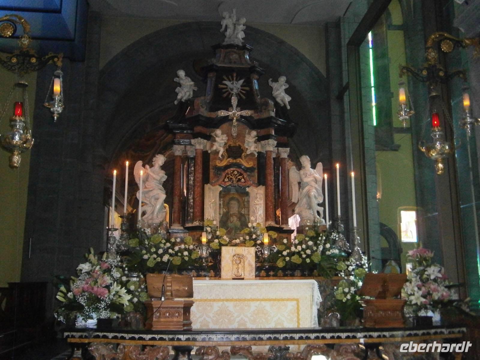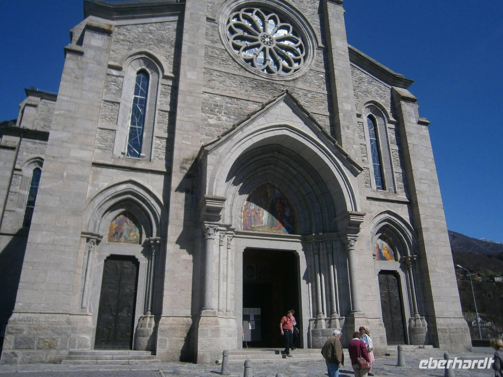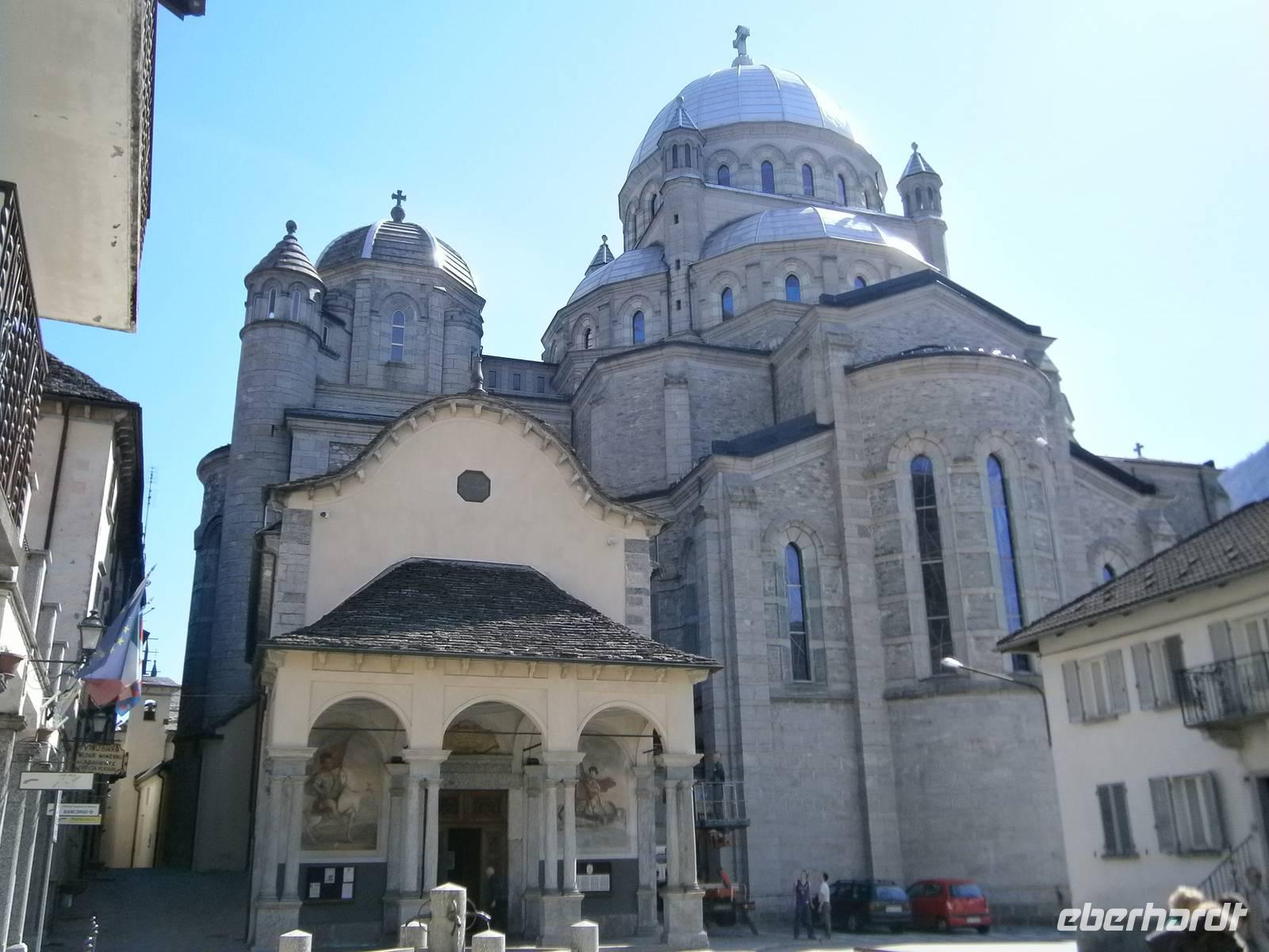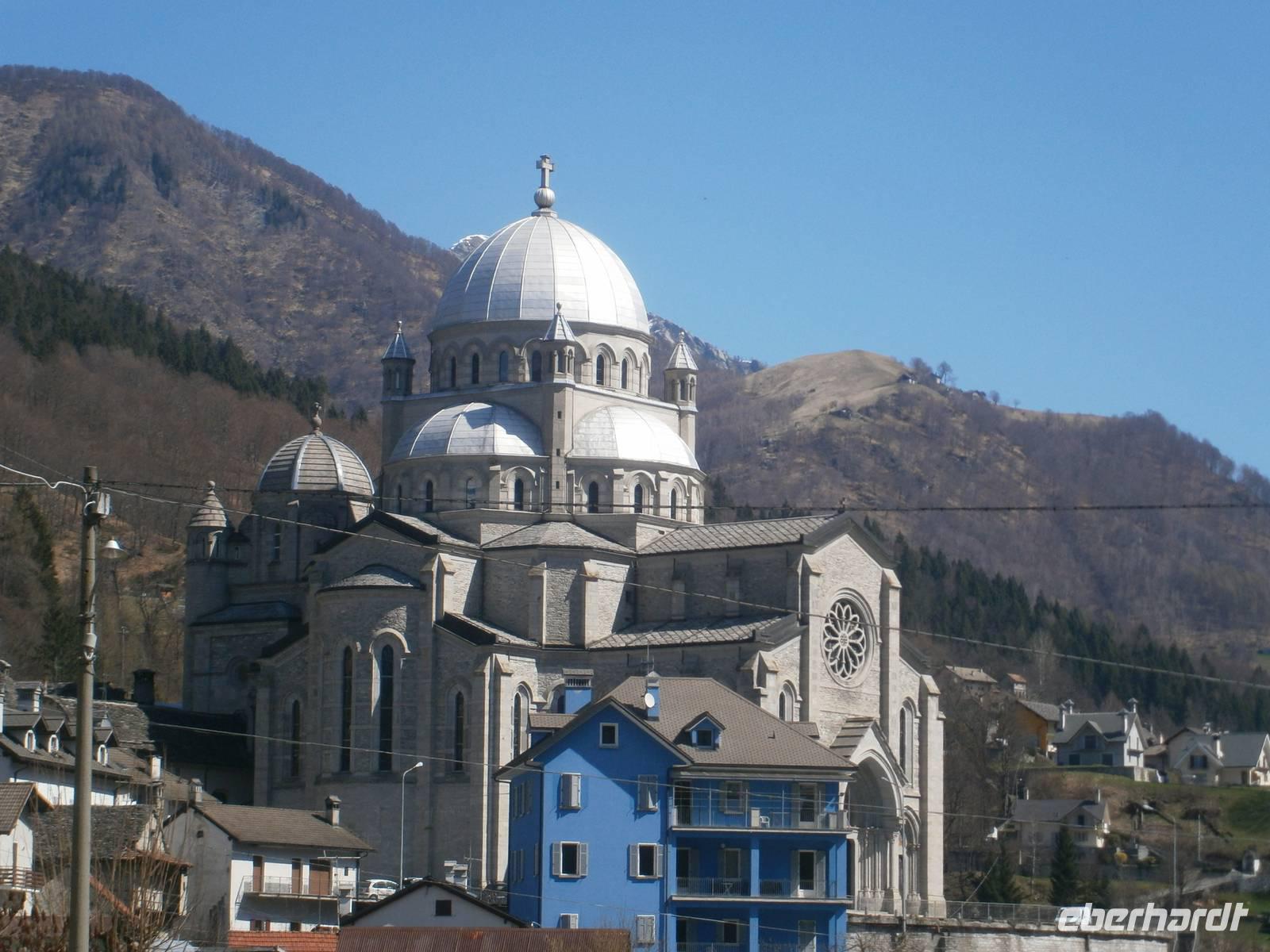 zu fahren. Pünktlich um 08.15 Uhr bringt uns unser Bus bringt uns an diesem Morgen nach Domodossola, Ausgangsort für die Fahrt mit der Centovallibahn. Die Bahnstrecke, 52 km lang, führt uns über 83 Brücken und 31 Tunnel. Es ist schwierig das richtige Fotomotiv zu finden und manch Reisegast drückt im falschen Moment auf den Auslöser seiner Kamera. Durch das „Centovalli" - 100 Täler - , führt uns die Bahnreise durch viele kleine Ortschaften und eine atmberaubende Landschaft. Blauer Himmel und Sonnenschein lässt diese Reise zu einem unvergesslichen Erlebnis werden. In Santa Maria Maggiore, gelegen auf ca. 800 Metern Höhe, erreichen wir den höchsten Punkt. Der Ort ist das historische Zentrum des Valle Vigezzo. Es beherbergt unter anderem das Museum für die Schornsteinfeger, in Erinnerung an die „Kaminfegerkinder". In Re, einem kleinen Ort im Valle Vigezzo, besichtigen wir die Wallfahrtskirche „ Madonna des Blutes „. . Die Basilika, eine Kombination aus alter und neuer Kirche wurde 1956 geweiht. Eine Legende beschreibt das ein Bewohner des Dorfes das Fresko mit der stillenden Madonna mit einem Stein beworfen hat, wonach die Madonna zu bluten anfing. Im innern der alten Kirche finden wir das Bildnis der Madonna und auch den Schrein, wo sich die Ampulle mit einem mit blutgetränktem Stück Stoff befindet. Die neue Kirche wurde im byzantinischen Stil aus Granit erbaut. Das Baumaterial stammt aus den umliegenden Steinbrüchen. Die Silberkuppel ist 51 m hoch. Im Anschluss an den Aufenthalt setzen wir die Fahrt mit der Bahn fort, nach Locarno. Hier haben wir Zeit für eine ausgiebige Mittagspause und die Möglichkeit mit der Standseilbahn zur Wallfahrtskirche Madonna del Sasso aufzufahren. Die Kirche ist das Wahrzeichen der Stadt, errichtet im 15. Jahrhundert, nach dem dem Mönch Bartolomeo da Ivrea die Jungfrau Maria erschienen sein soll. In den letzten Jahren umfangreich renoviert, erstrahlt die Kirche im neuen Glanz. Zum Abschluss des heutigen Reisetages legen wir noch einen kurzen Zwischenstop am Kamelienpark von Locarno ein. Der Park ist ein kleines Schmuckstück und bezaubert den Besucher auf 5000 qm mit 520 verschiedenen Arten. Er huldigt der Kamelie, die als Symbol für den Frühling in Locarno gilt.