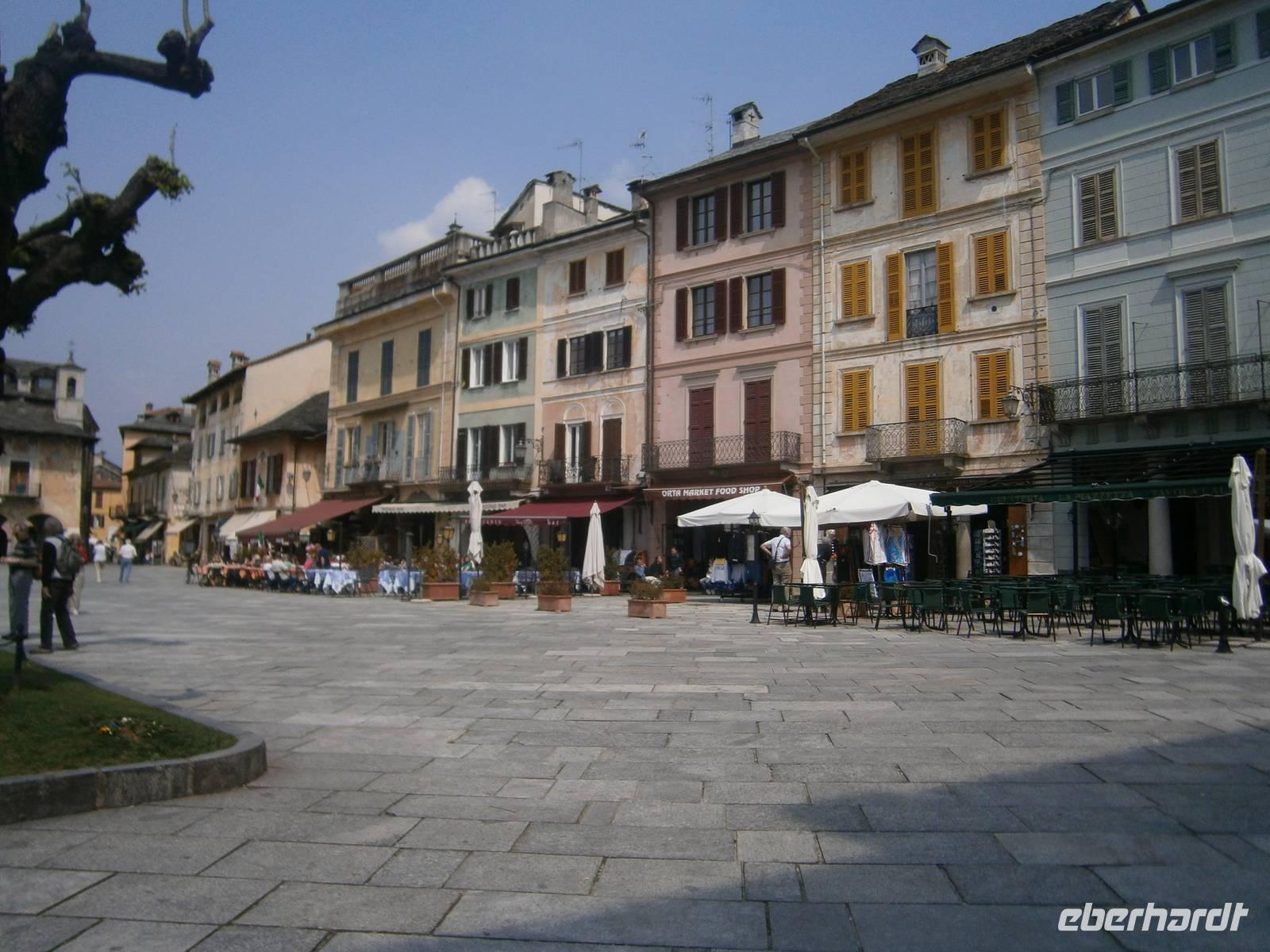 Rund um den Lago Maggiore ist in verschiedenen Orten „Wochenmarkt." Wieder fahren wir die Uferstraße entlang, diesmal auf der anderen Seite. Durch Stresa, Belgirate, Lesa, Meina und erreichen Arona, wirtschaftliches und touristisches Zentrum am See. Hier ist an diesem Dienstag Markttag. Von der Uferpromenade genießt man den Ausblick auf die gegenüber liegende Seite des Sees und erblickt die „Rocca di Angera". Eine dreiflügelige Burganlage, jeder Flügel steht für eine ehemalige einflussreiche Familie hier am Lago Maggiore. Die Borromeos, die Visconti und die Sforza. Nach einem ausgiebigen Aufenthalt erreichen wir zur Mittagszeit den Parkplatz an der Villa Crespi in Orta. Es bleibt Zeit für die Mittagspause, bevor uns das „Bähnle" in Richtung Altstadt von Orta bringt, die bis auf wenige Ausnahmen Autofrei ist, deshalb müssen wir auch in die malerische Altstadt spazieren. Es bleibt unseren Gästen Zeit für die kleine Pause, bevor uns ein Privatboot zur kleinen Insel San Giulio bringt. Sie ist fast vollständig bebaut und war schon immer Ziel für Reisende und Wallfahrer. Die Basilika di San Giulio soll auf den Griechen Julius zurückgehen, der die Insel im 4. Jahrhundert von Drachen und Schlangen befreit haben soll. Julius, mit einer Goldmaske, ruht in der Krypta in einem gläsernen Sarg. Am Nachmittag bringt uns der kleine Zug wieder zurück zum Parkplatz und von dort fahren wir zurück zum Hotel.