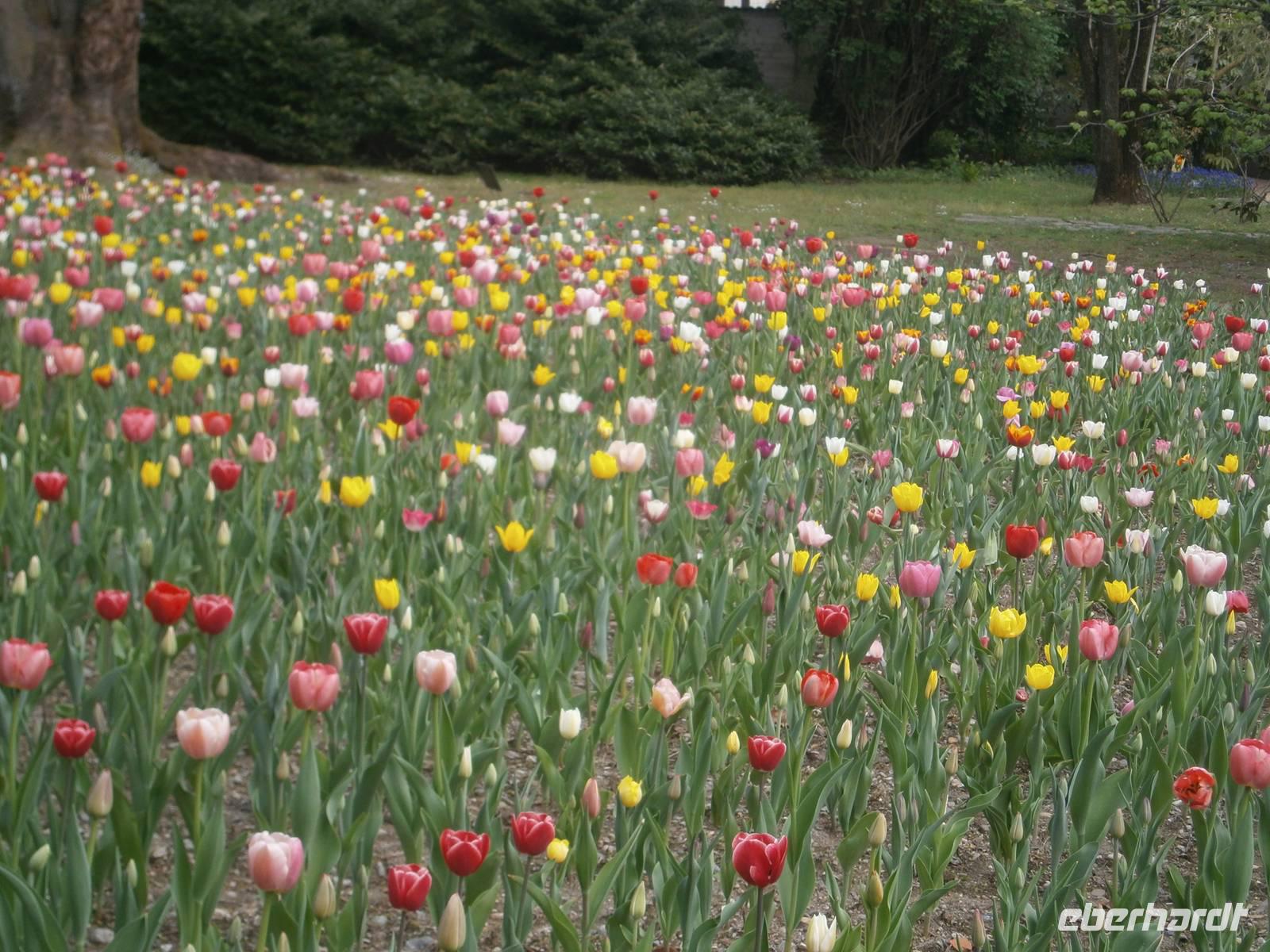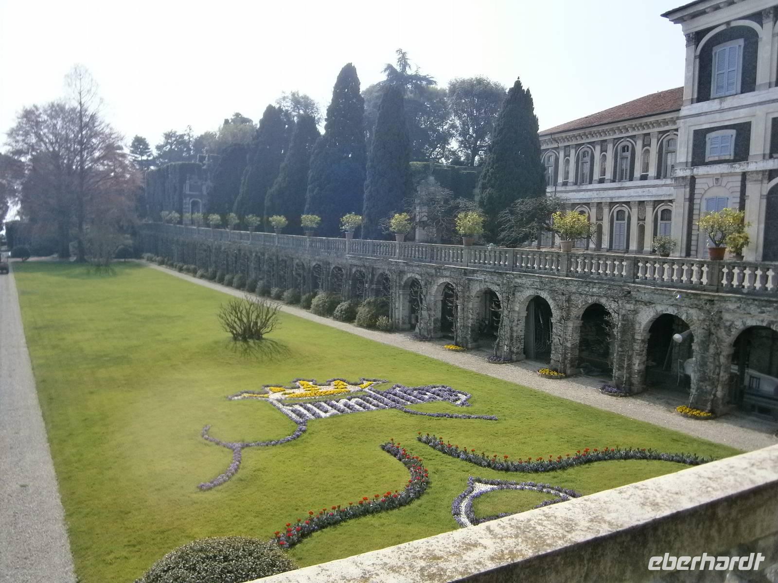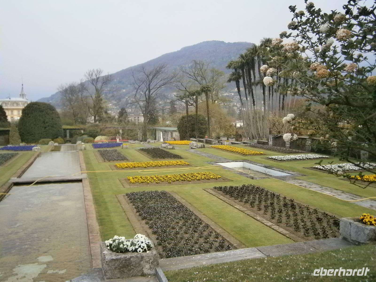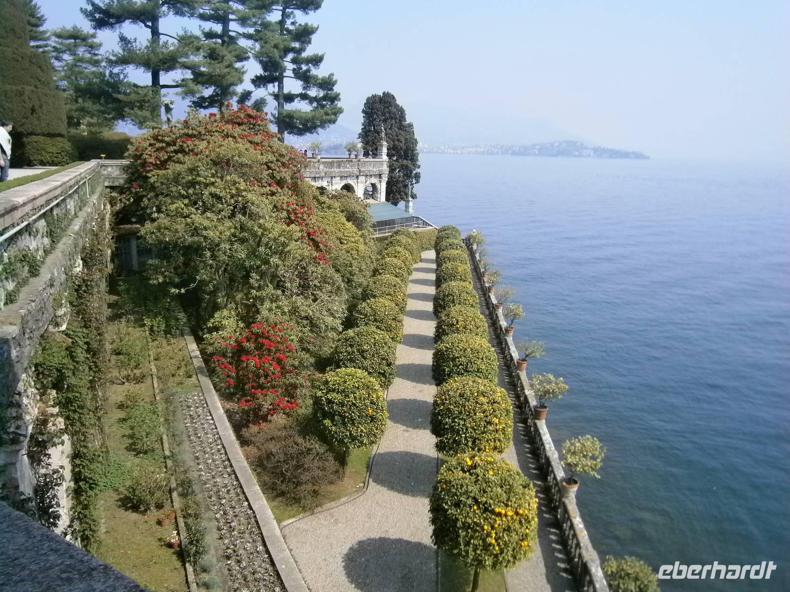 Eine Parkanlage, 20 Hektar groß, mit exotischen Pflanzen und Blüten zu jeder Jahreszeit. Jetzt schreitet man förmlich durch ein Blumenmeer aus Tulpen, Narzissen, Pantoffelblumen und Stiefmütterchen. Blühende Kamelien, Magnolien und Rhododendren entfalten ihre Pracht. Der schottische Kapitän Neil Mc Eacharn erwarb 1930 die Villa mit der dazu gehörigen Parkanlage. Er begann mit den Umbaumaßnahem und kaufte noch zusätzlich Land um die Anlage zu erweitern. Heute gehört der Park der Villa Taranto zu den Sehenswürdigkeiten, gerade für Liebhaber der Botanik aus der ganzen Welt. Der Nachmittag steht dann unseren Reisegästen zur individuellen Verfügung, bevor wir am Abend zum Essen auf die Isola Pescatori fahren wollen. Doch ausgerechnet zu dieser Zeit entlädt sich ein Gewitter über dem See. Biss'l mulmig ist es uns allen, bei der Überfahrt. Der Bootsführer dreht extra für uns noch eine Runde um die Insel, denn bei diesem Regenguss verspürt keiner der Reisegäste Lust , durch bzw. über die Pfützen zu springen. Ausklingen lassen wir diesen Tag und unsere Reise an den „Bergsee der Südalpen" bei einem leckeren Abendessen mit Geräucherten Lendenstücken, Risotto mit Castelmagno - Käse, Lachstranche in Weissweinsauce und dem Dessert des Hauses.