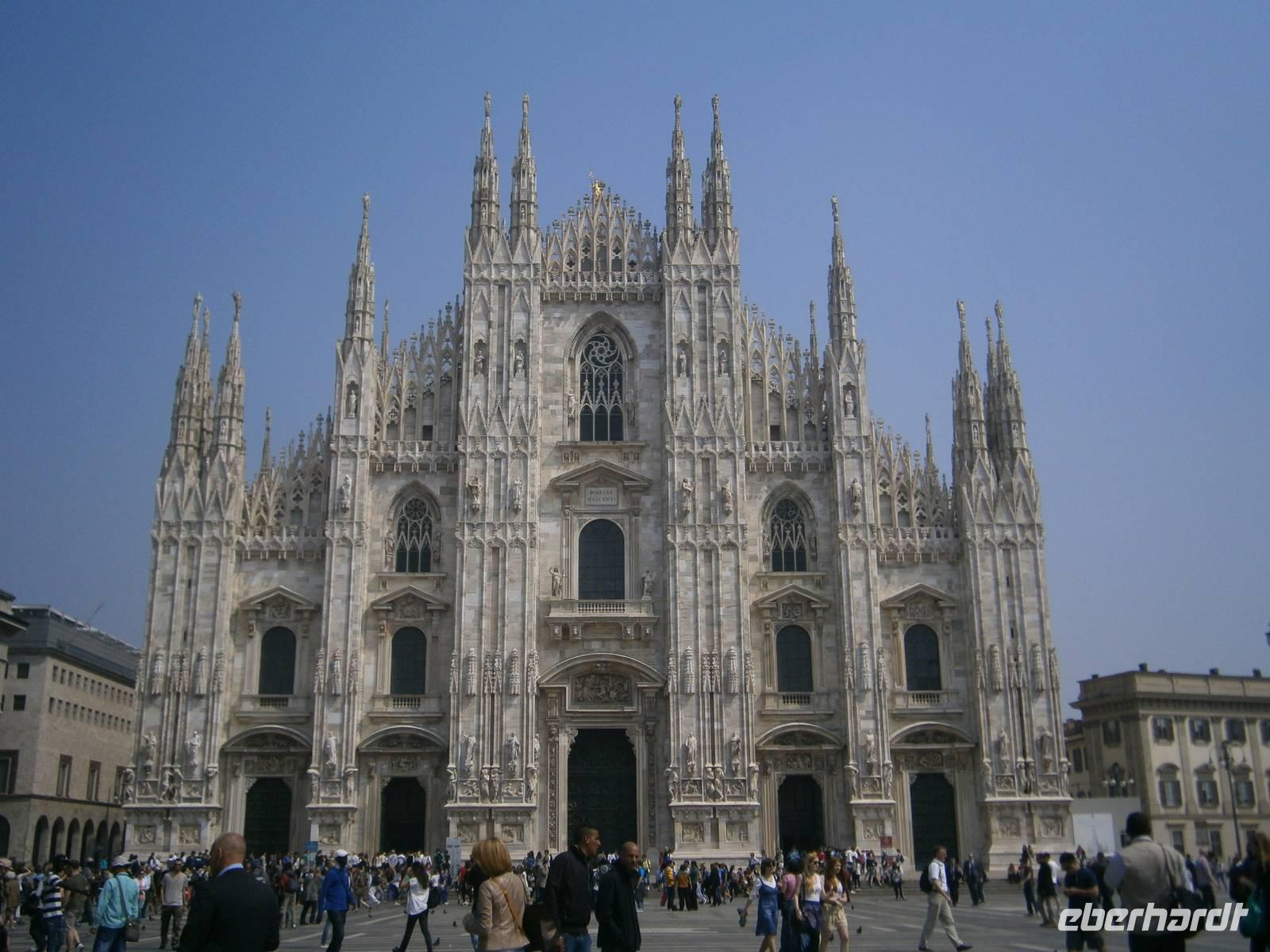 Hier treffen wir am Castello Sforzesco unsere Stadtführerin Fedra und fahren mit ihr zuerst zum Monumentalfriedhof.. Nach einer kurzen Besichtigung und der Fahrt zurück ins Stadtzentrum verlassen wir an der Mailänder Scala den Bus und beginnen unseren Stadtrundgang. Glück für uns, die Scala ist geöffnet. Also nutzen wir die Chance um diese auch von innen zu besichtigen. Ein Blick in den Saal und der Rundgang durch das Museum runden den zusätzlichen Besuch des berühmten Opernhauses ab. Durch die Galleria Vittorio Emmanuele erreichen wir die Piazza del Duomo, überragt vom Dom. Eines der berühmtesten Bauwerke Italiens. Der Bau wurde Ende des 14. Jahrhunderts begonnen und erst Mitte des 19. Jahrhunderts ganz fertig gestellt. Die anschließende Freizeit, nach der Stadtführung, nutzen unsere Gäste zum bummeln durch die Stadt und einige steigen dem Mailänder Dom, im wahrsten Sinne des Wortes, aufs Dach. Zur angegebenen Zeit sind dann alle Gäste wieder pünktlich am Treffpunkt und es geht zurück zum Hotel.