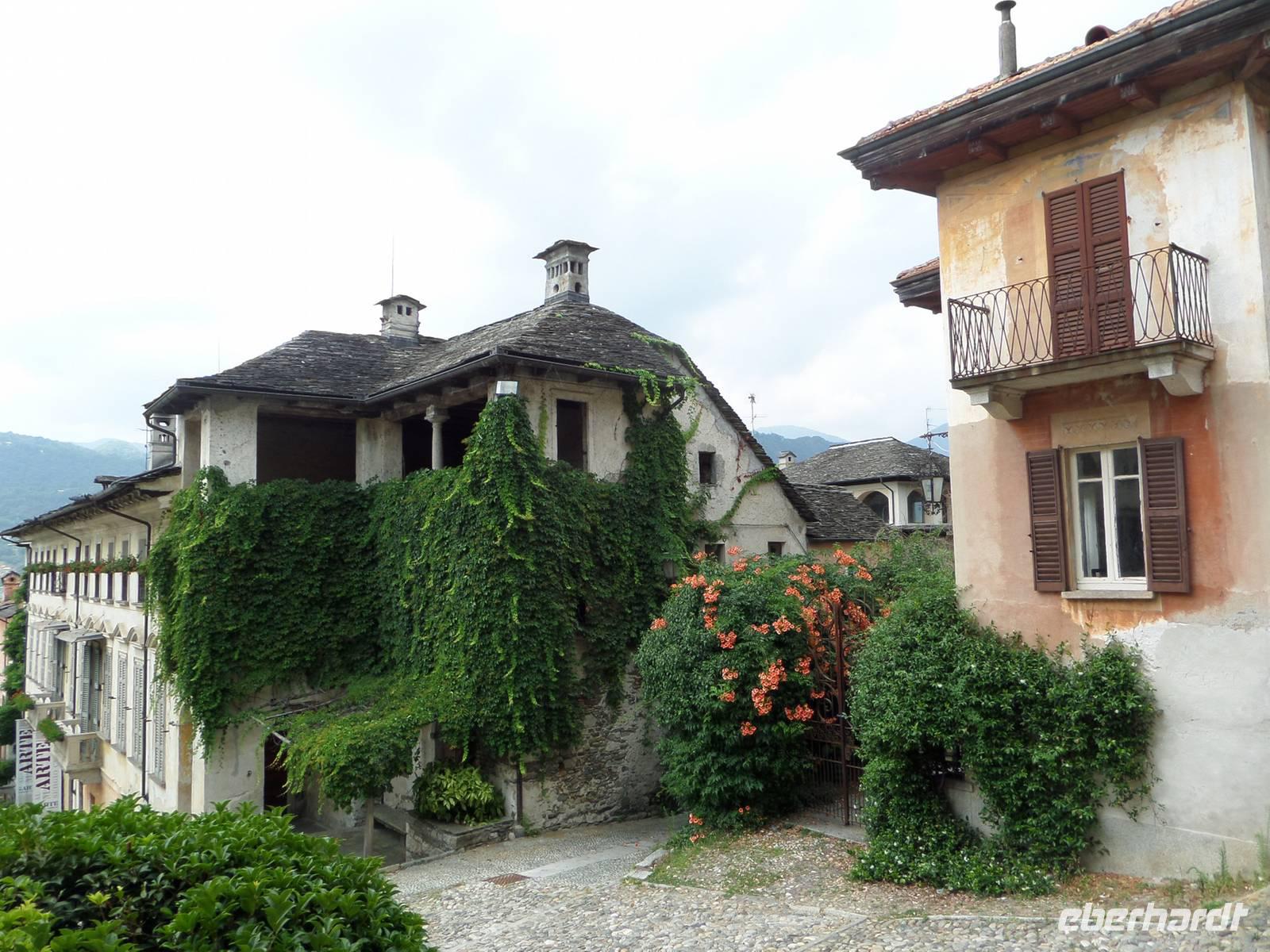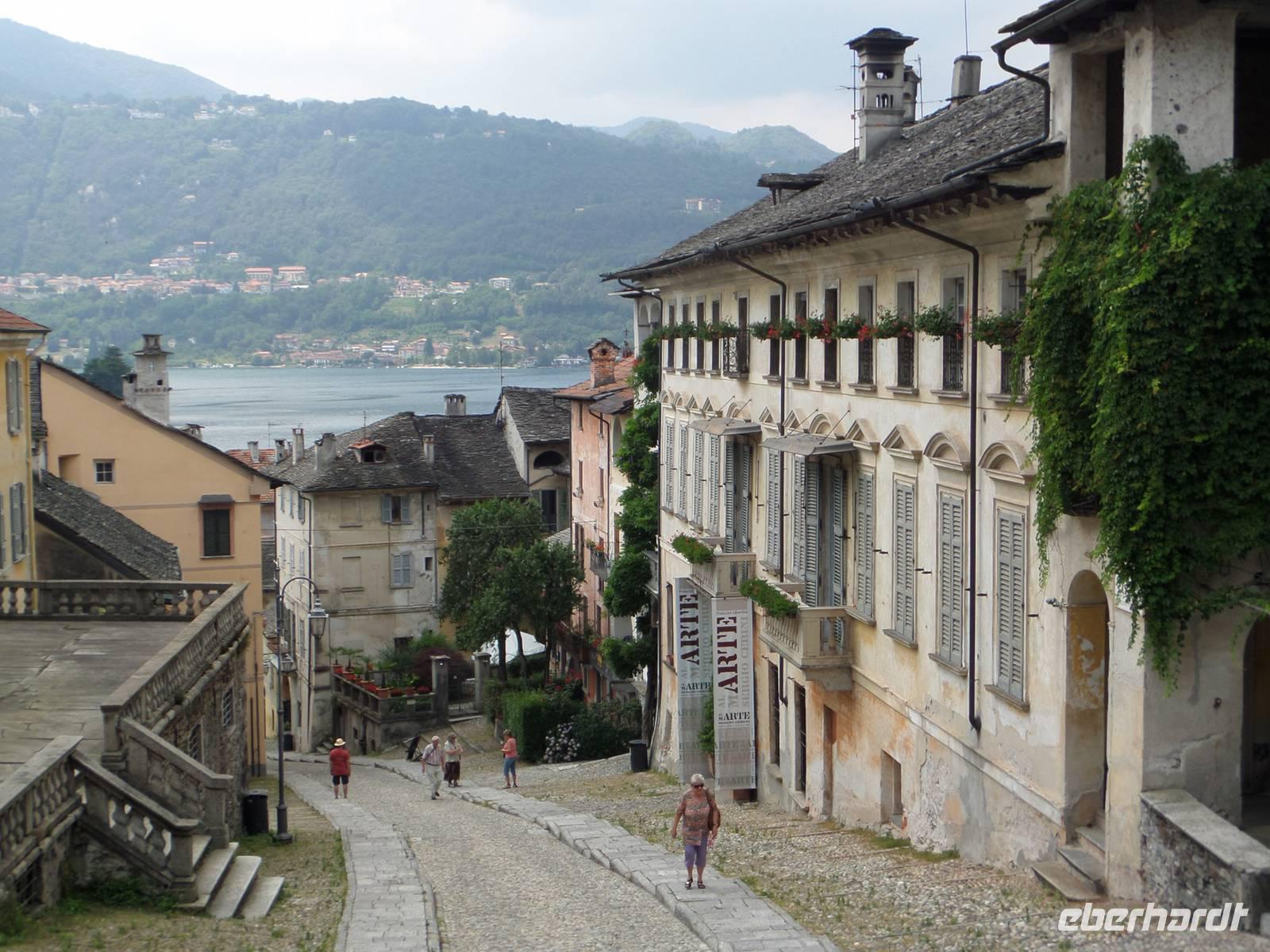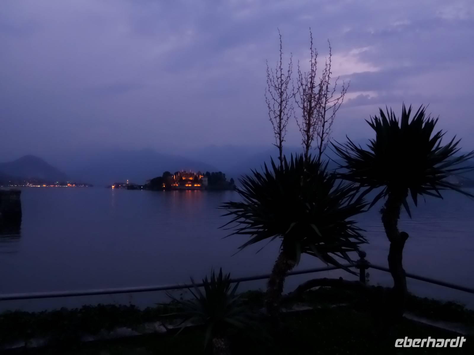 Mittags fahren wir zum Ortasee und mit einer kleinen für uns bestellten Bahn ins Städtchen, ein romantischer Ort! Vorher gibt es wieder Würstchen, wer noch nichts gefunden hat... Ein Boot bringt uns sofort zur kleinen Insel San Giulio, benannt nach dem griechischen Diakon Julius, der hier am Ende des 4. Jahrhunderts lebte und eine kleine Kirche errichtete. Die Silhouette der Insel wird heute beherrscht vom mächtigen ehemaligen Bischofspalast und von der Basilika. Man kann nur auf einen vorgegebenen Rundweg in ca 15 Minuten über die Insel spazieren. Dann ist Zeit, Orta zu erkunden, ein letzter Eisbecher oder Cappuccino ... Mit der Bahn geht es 16 Uhr zurück zum Bus und ins Hotel. Am Abend fahren wir zum Abschluss dieser schönen Eberhardt-Reise mit dem Schiff zum Abendessen hinüber zur Isola Pescatori. Vorher umrunden wir noch die Insel. Es wird ein schöner Abend mit leckerem Essen und Getränken. Nun noch schnell die Koffer packen - und die schönen Erinnerungen an unsere Reise an den Lago Maggiore kommen mit hinein!
