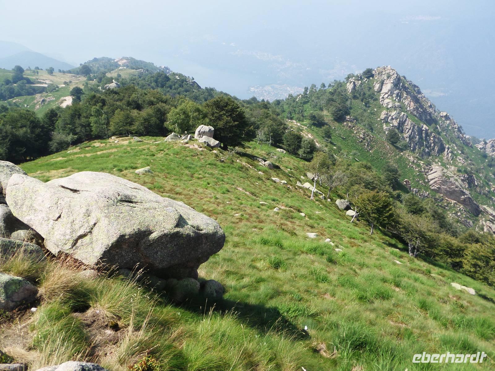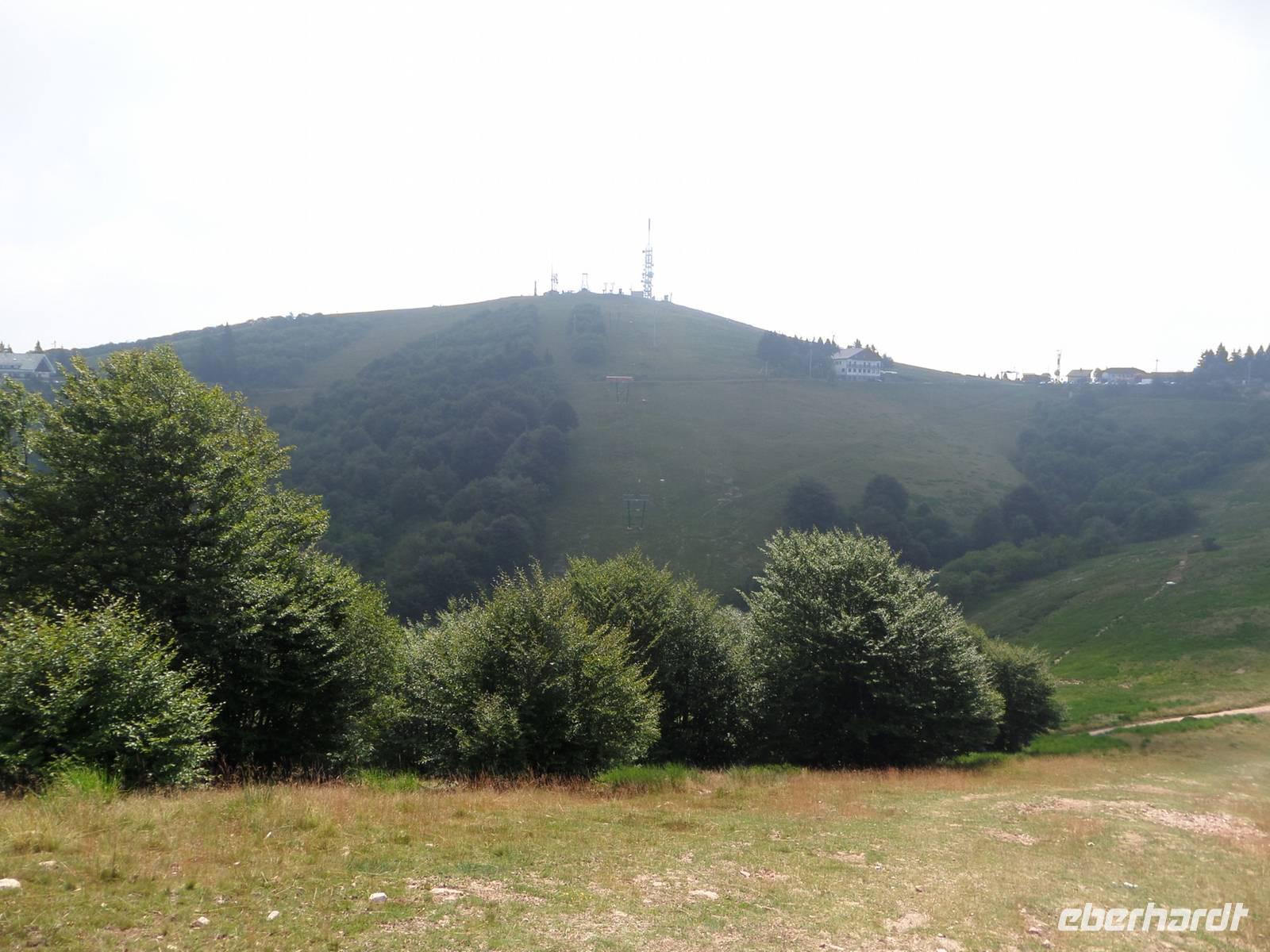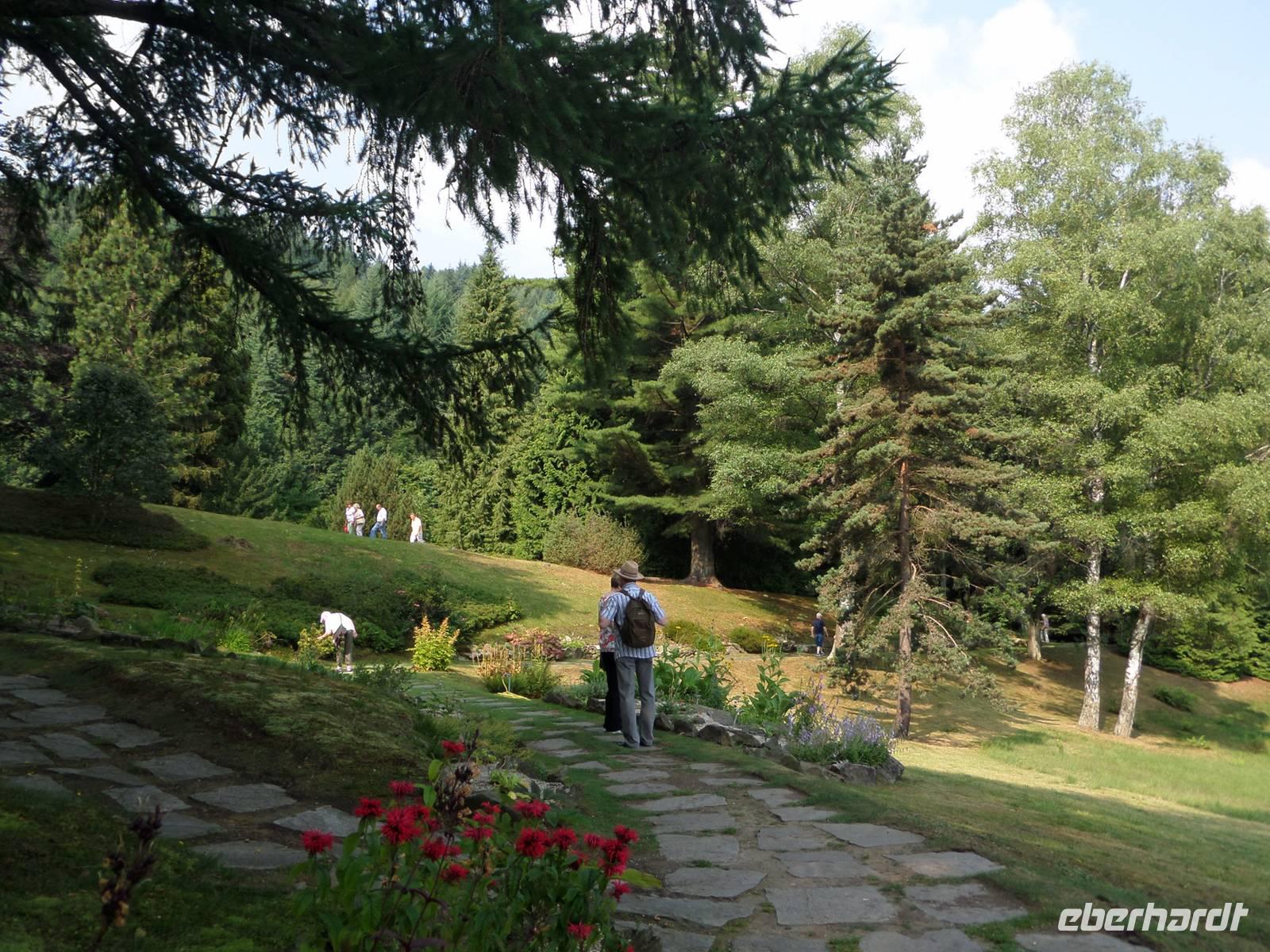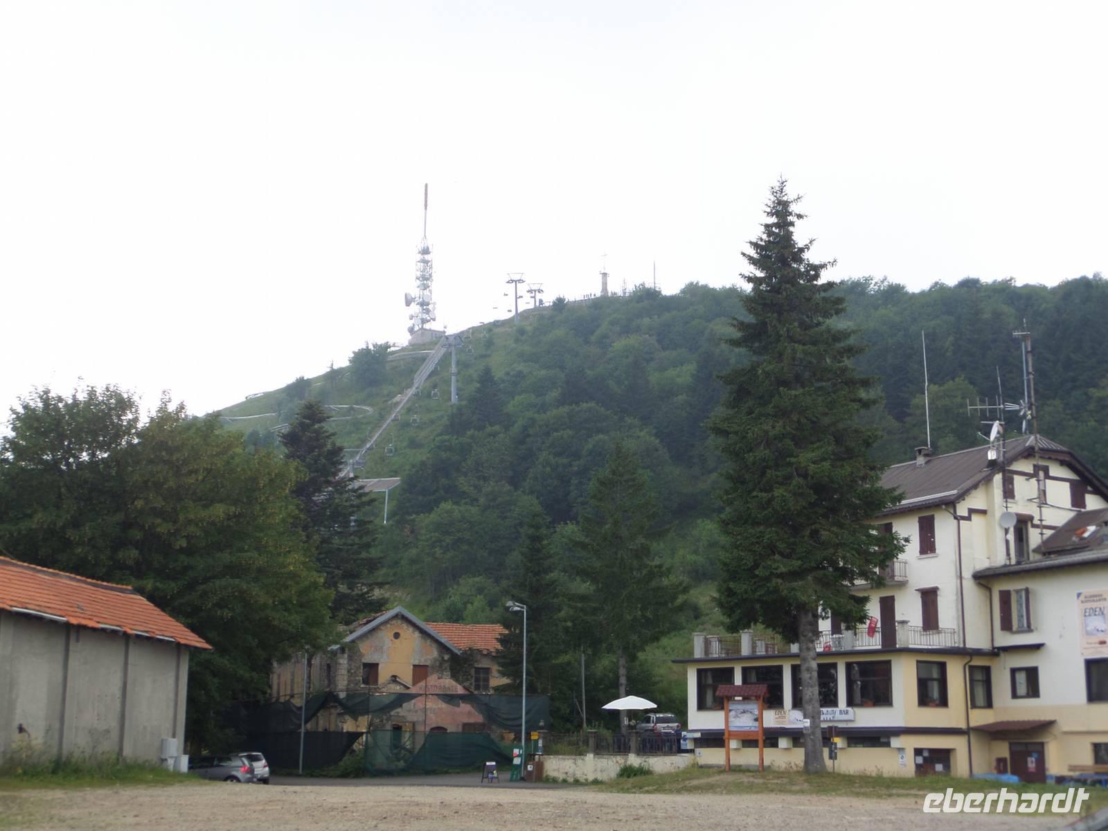 Der 1.491 Meter hohe Monte Mottarone ist der Hausberg von Stresa. Nur wenige Minuten sind es bis zur Seilbahn. Heute fahren wir mit Petra auf den Berg. Mit der Kabinenbahn geht es bis auf 1385 m und weiter mit dem Sessellift zum Gipfel. Da noch andere Gäste anstehen, fahren wir in zwei Gruppen ab 9.30 Uhr nach oben. Wir genießen die Seeblicke schon aus der Kabinenbahn. An der Mittelstation in 803 m Höhe müssen wir umsteigen und statten zuerst dem Alpino Garten mit mehr als 1000 Pflanzen einen Besuch ab. Allerdings hält sich die Blütenvielfalt in Grenzen, so dass wir uns nicht zu lange aufhalten und zur zweiten Etappe starten. Weiter geht es dann noch bis zum Gipfel mit dem Sessellift. Leider ist von der gepriesenen Aussicht auf sieben Seen und die Monte Rosa Gruppe nicht viel zu sehen. Wir können nur Lago Maggiore und Ortasee erkennen. Die Sonne scheint und einige Gäste unternehmen eine der vielen Wanderungen, die hier oben möglich sind. Es herrschen angenehme Temperaturen, denn unten am See sind über 30 Grad. Auch Rodeln macht Spaß. Andere genießen den Nachmittag am See.