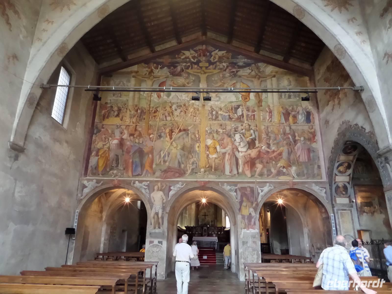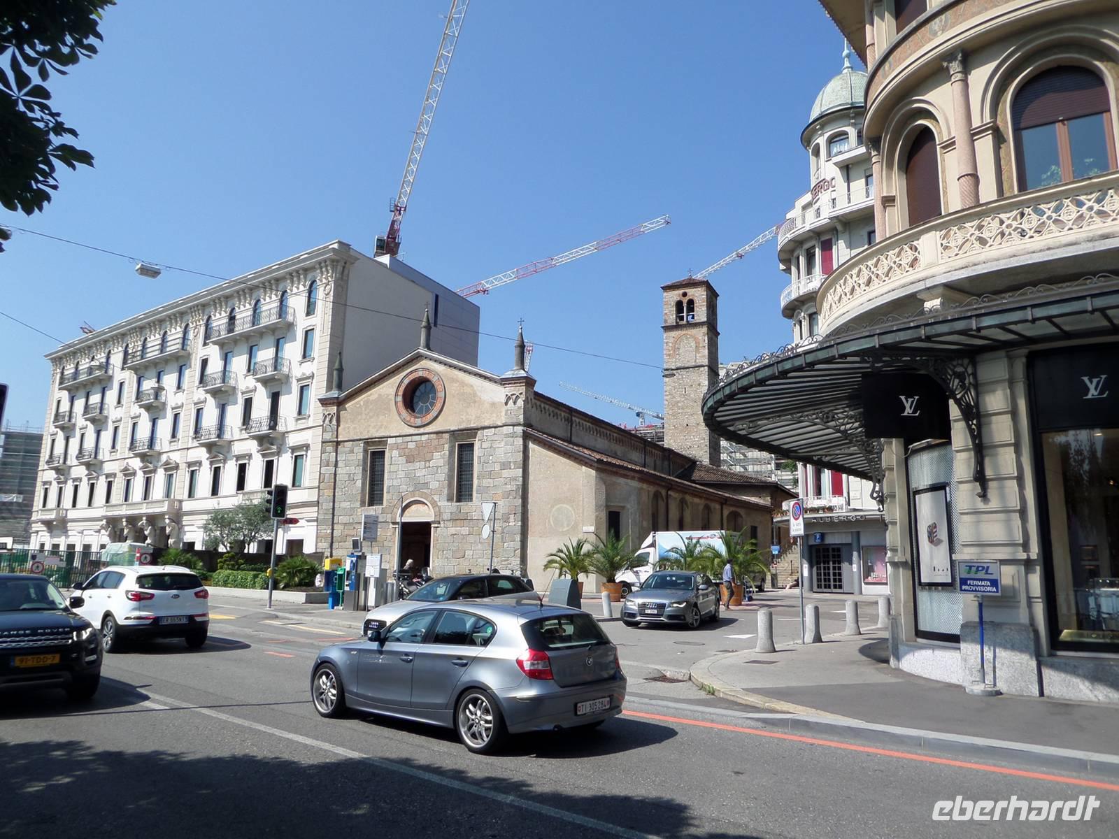 Am Lago Maggiore fahren wir wieder nach Norden in die Schweiz, Richtung Locarno und weiter nach Lugano. Am Luganer See geben sich die Reichen und Schönen ein Stelldichein und leben in den Villen über dem See. Heute sind wir da! Wir hatten wieder etwas Stau, so bleibt nicht allzu viel Zeit für Lugano. Dietmar setzt uns im Zentrum der Stadt ab. Petra bringt uns über die Strandpromenade mit schönem Seeblick zur Kirche Santa Maria degli Angioli. In dieser Kirche findet man die schönsten Fresken der Meister der Renaissance. In den Gemälden ist der Einfluss von Leonardo da Vinci zu erkennen. Sein Schüler Bernardino Luini hat sie Anfang 16.Jh gemalt. In den Geschäften der modernen Stadt gibt es auch allerhand zu schauen.