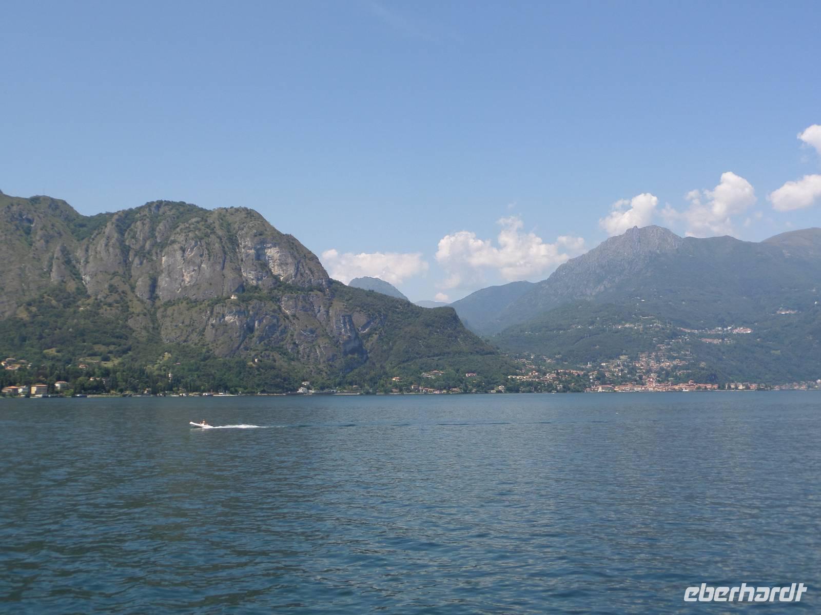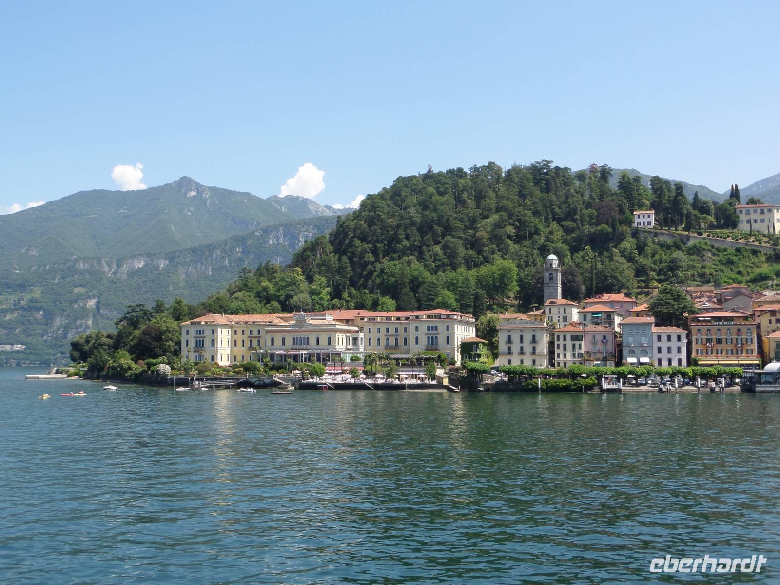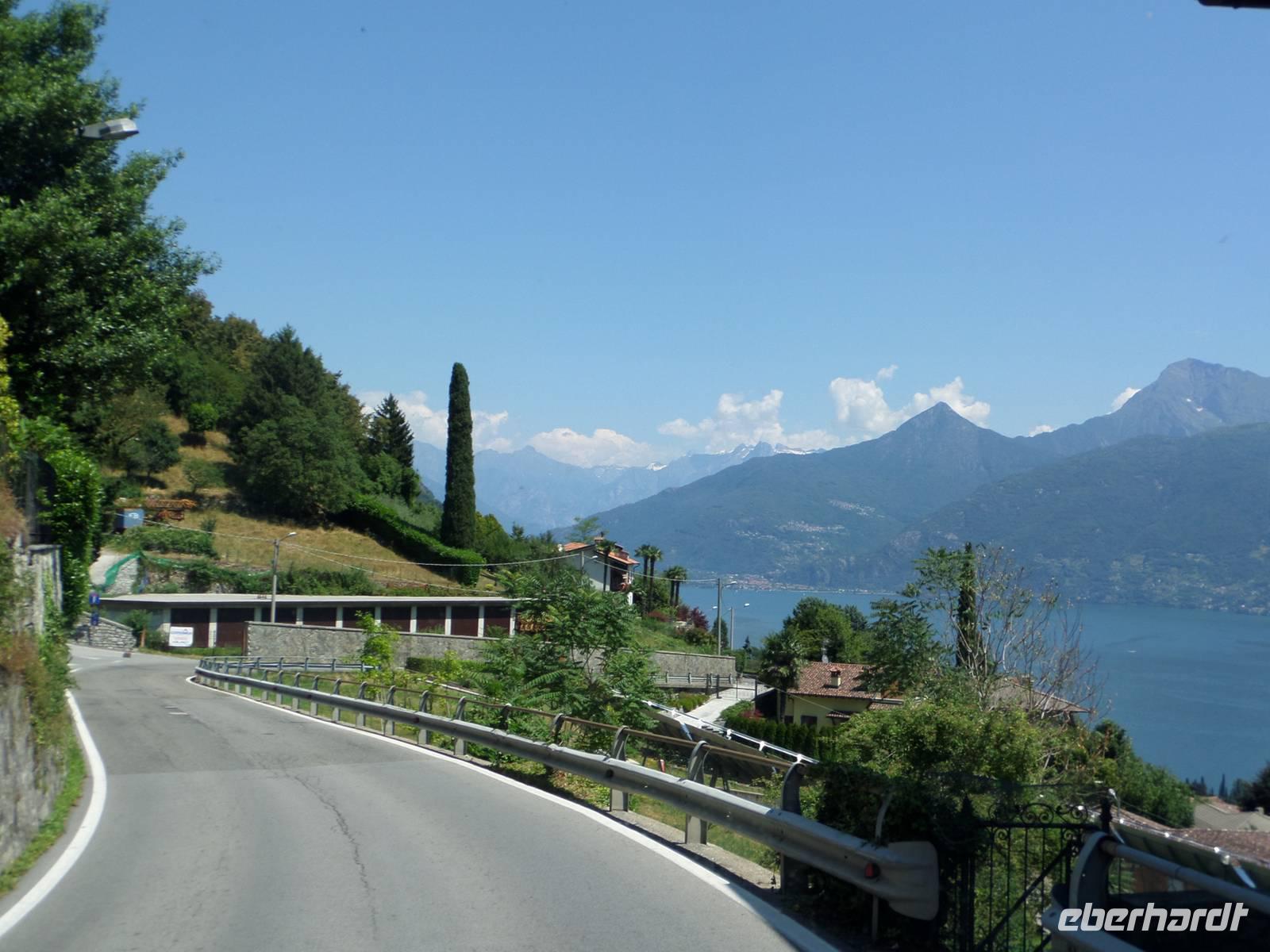 Aber wir wollen noch zum Comer See. Da es einen neuen Tunnel gibt, können wir es mit unserem Bus wagen, am Luganer See über Gandria nach Menaggio zu fahren und sparen natürlich Zeit. Für viele ist der Comer See der schönste oberitalienische See, mit der imposanten Bergkulisse und der mediterranen Vegetation. Schon in den vergangenen Jahrhunderten war er ein beliebtes Reiseziel. Heute sind bereits wieder einige berühmte Villen in russischer Hand!