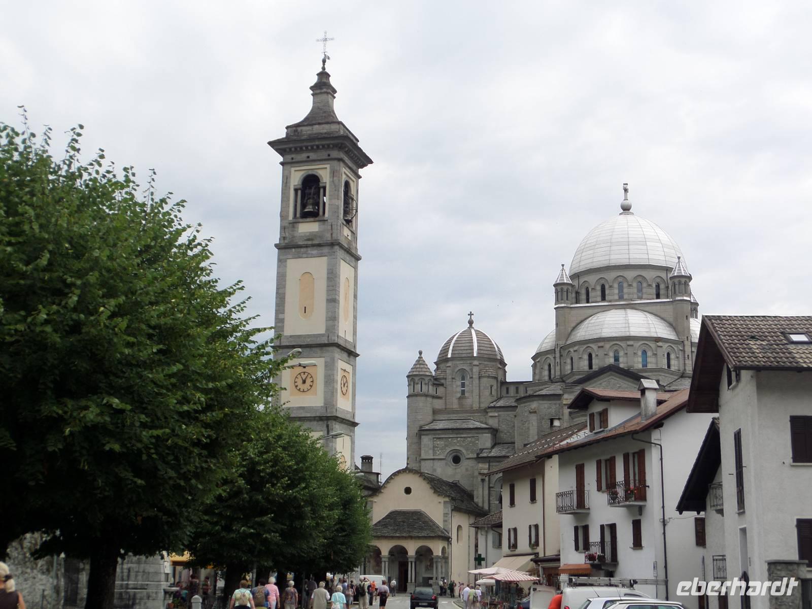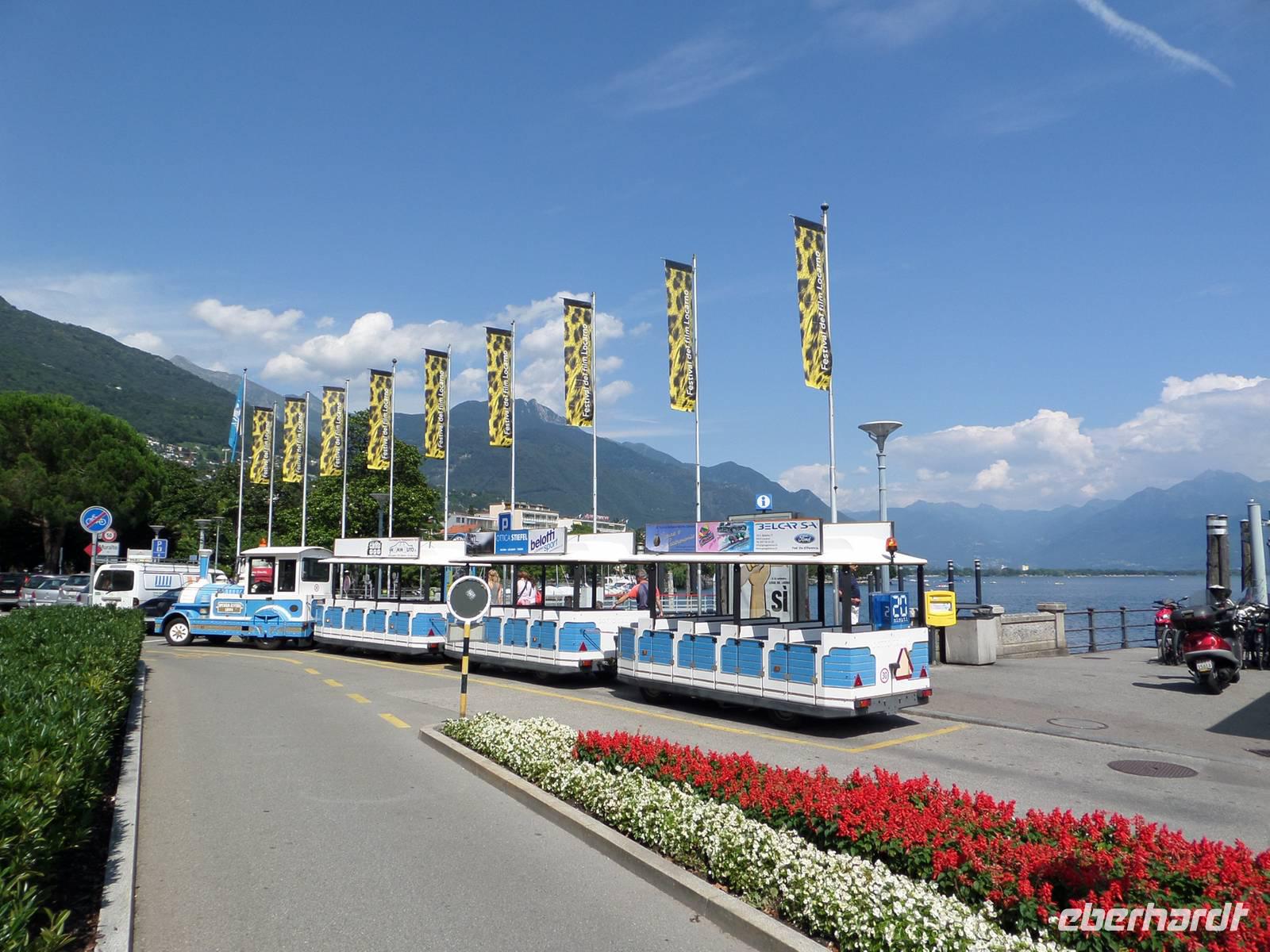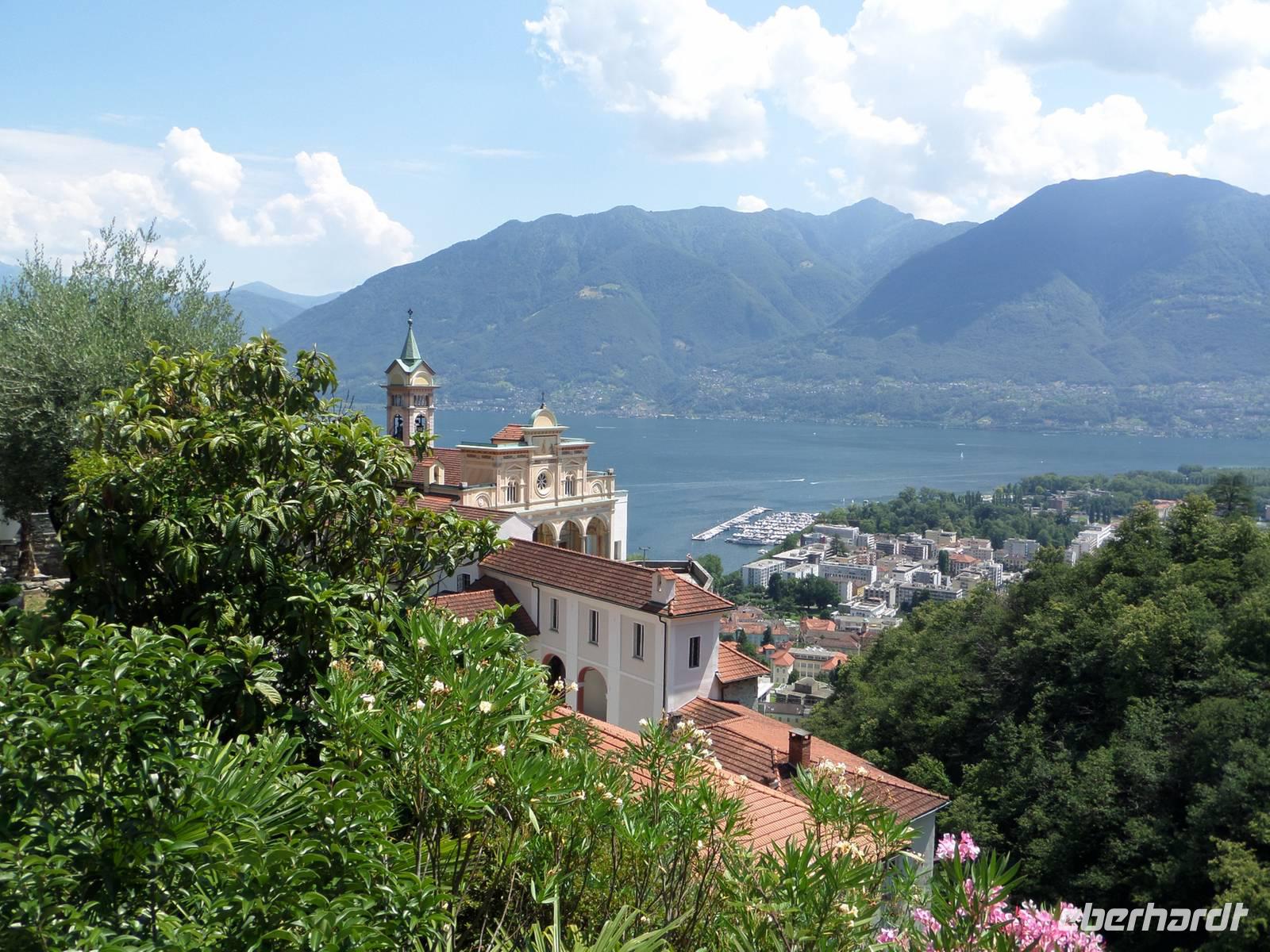 Sie verbindet die Strecke der Gotthardbahn mit der Bahnlinie durch den Simplon. Auf halbem Wege besuchen wir im bekannten Wallfahrtsort Re den gigantischen Bau der Wallfahrtskirche Madonna del Sangue, der Blutmadonna, aus dem 16. Jahrhundert. Sie erinnert an ein Wunder von 1494. Das Madonnenbild soll nach einem Steinwurf 20 Tage lang blutige Tränen geweint haben. Herbeigeeilten geschahen Wunder. Nach einer kurzen Besichtigung und einem kleinen Mittagsimbiss fahren wir mit der nächsten Bahn weiter in die Schweiz nach Locarno! Dort lädt uns Petra zu einer Zahnradbahn-Fahrt zur bekannten Wallfahrtskirche Madonna del Sasso ein. Aber nur die Hälfte der Gäste möchte die herrliche Aussicht über den See genießen. Es ist aber auch sehr heiß. Viele spazieren lieber auf die Promenade am See, um im Schatten zu ruhen. Oder zur Pizza Grande, der Mittelpunkt der Altstadt, wo schon die Vorbereitungen für das Filmfestival im Gange sind. Kleine Gassen laden auch noch zum Entdecken ein, und natürlich die tollen Geschäfte zum Einkaufen.