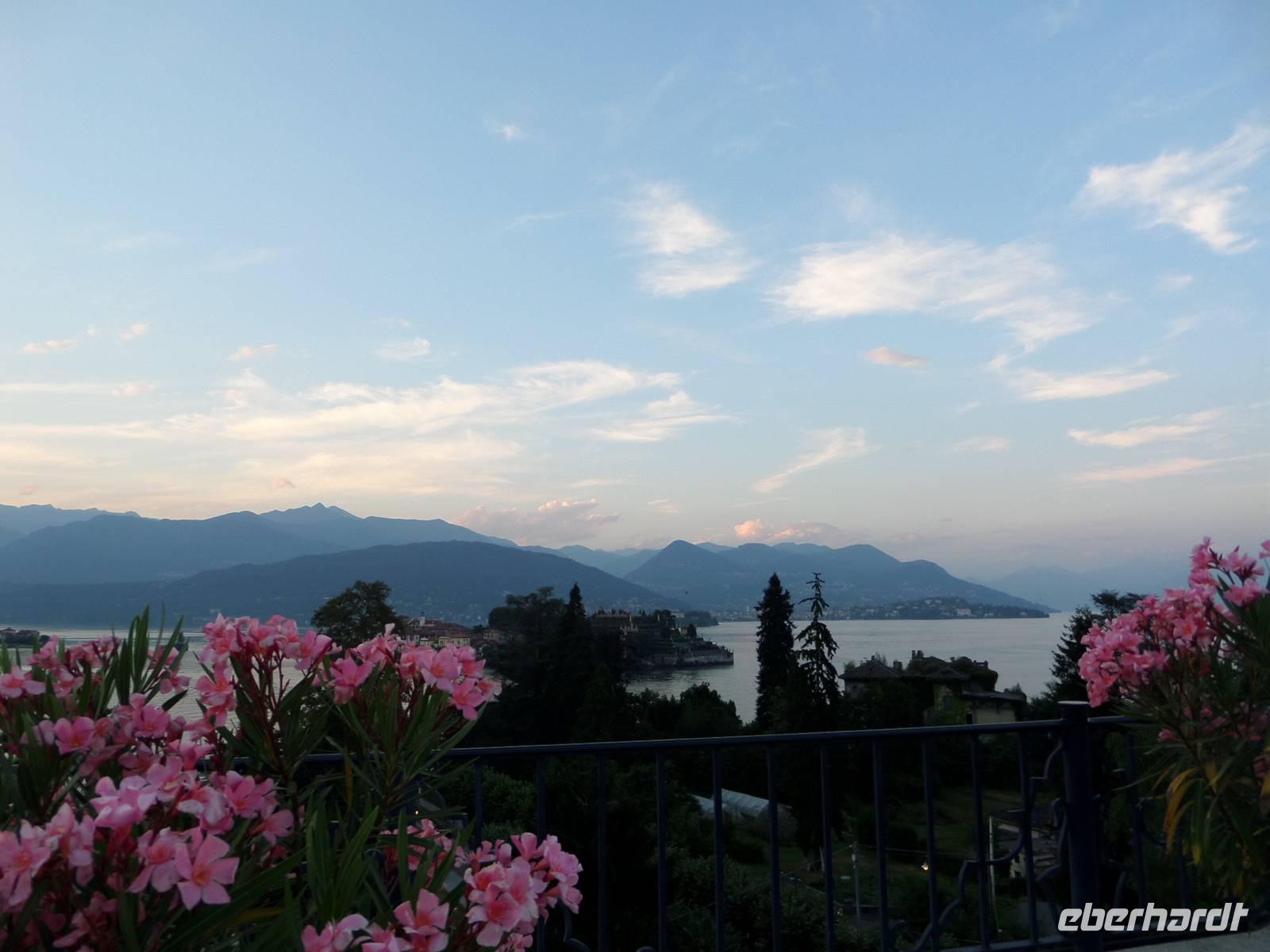 Mit unserem 5-Sterne-Bus der Firma Puschmann starten wir morgens um Sechs in Dresden mit unserer Reiseleiterin Petra zur Fahrt nach Italien. Am Rasthof Fränkische Schweiz übernimmt unser Stammfahrer Dietmar den Bus. Vorbei an Nürnberg und Ulm führt uns die Fahrt zum Bodensee, und weiter durch die Schweiz. Leider haben wir immer wieder kleinere Staus, so dass wir zeitlich doch ganz schön in Verzug geraten. Zuerst im Rheintal, und dann den Hinterrhein folgend, geht es hinauf zum San Bernardino. Den Berg durchquerten wir im 6,6 km langen Tunnel. Durchs das Mesolcina-Tal führt uns die Fahrt ins Tessin, und wir machen erste Bekanntschaft mit dem schönen Lago Maggiore. Vorbei an Locarno fahren wir am See entlang nach Italien, ins Hotel Royal in Stresa.