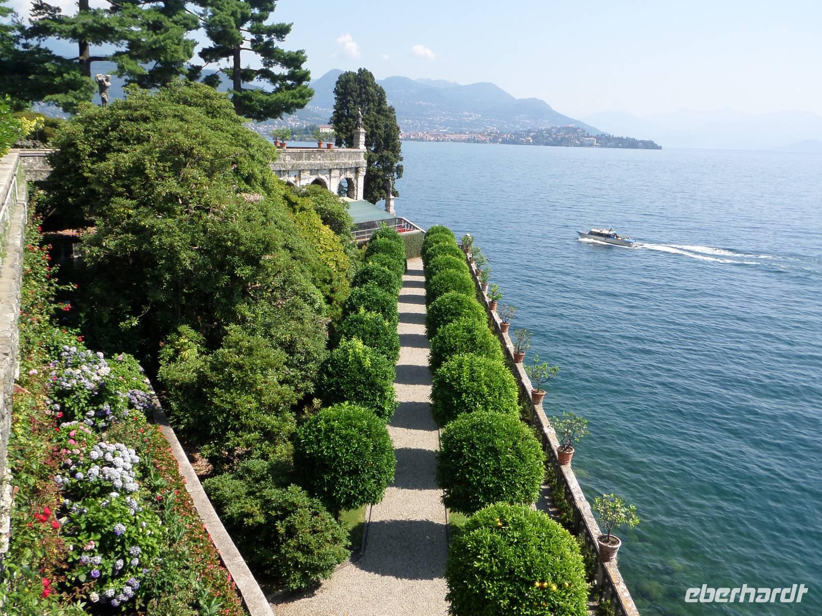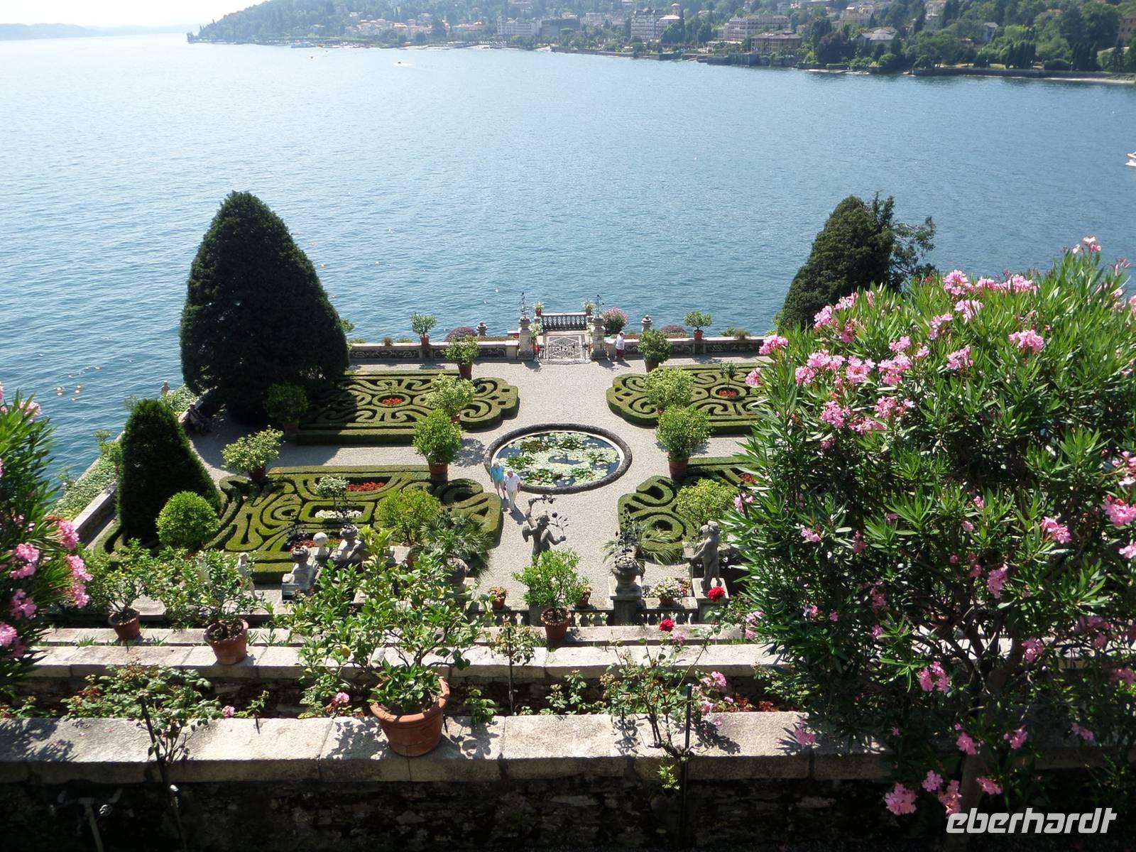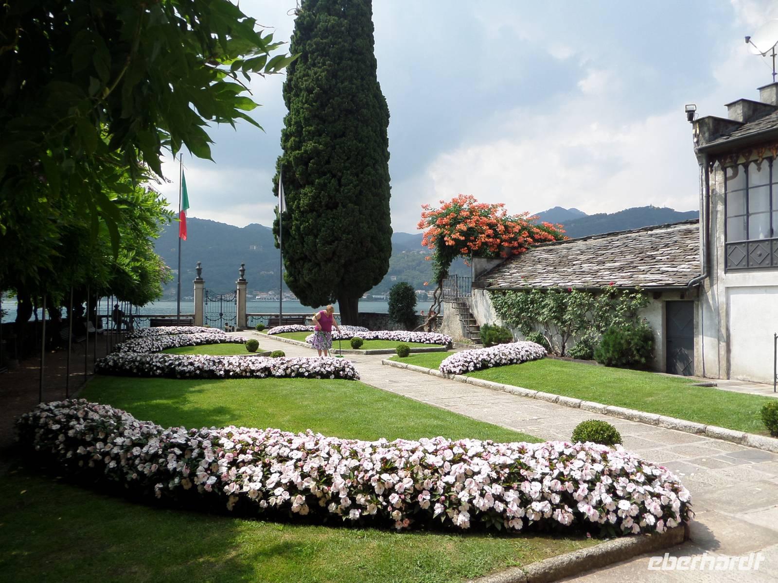 Heute können wir zu den Inseln im Borromäischen Golf fahren, die direkt vor unserer Haustür liegen, oder den Tag individuell verbringen. Fast alle Gäste lassen sich diese Gelegenheit natürlich nicht entgehen. In fünf Minuten sind wir an der Bootsanlegestelle und fahren mit einem Privatboot zur Isola Bella, der schönsten der vier Perlen im Borromäischen Golf, wie diese Inseln genannt werden. Alexandre Dumas schwärmte von der Insel - es sei ein Ort von unvergleichlichem Zauber!