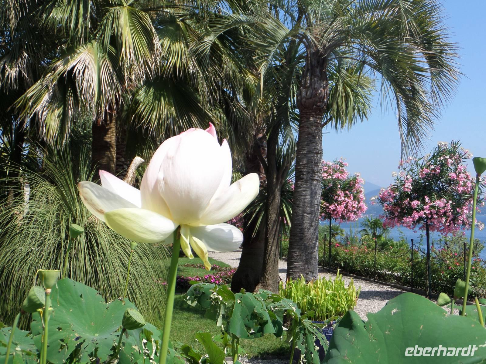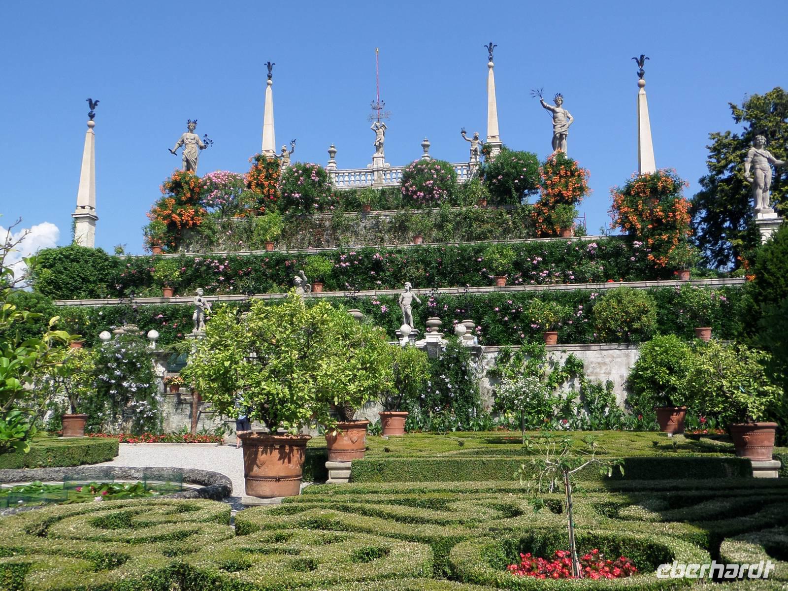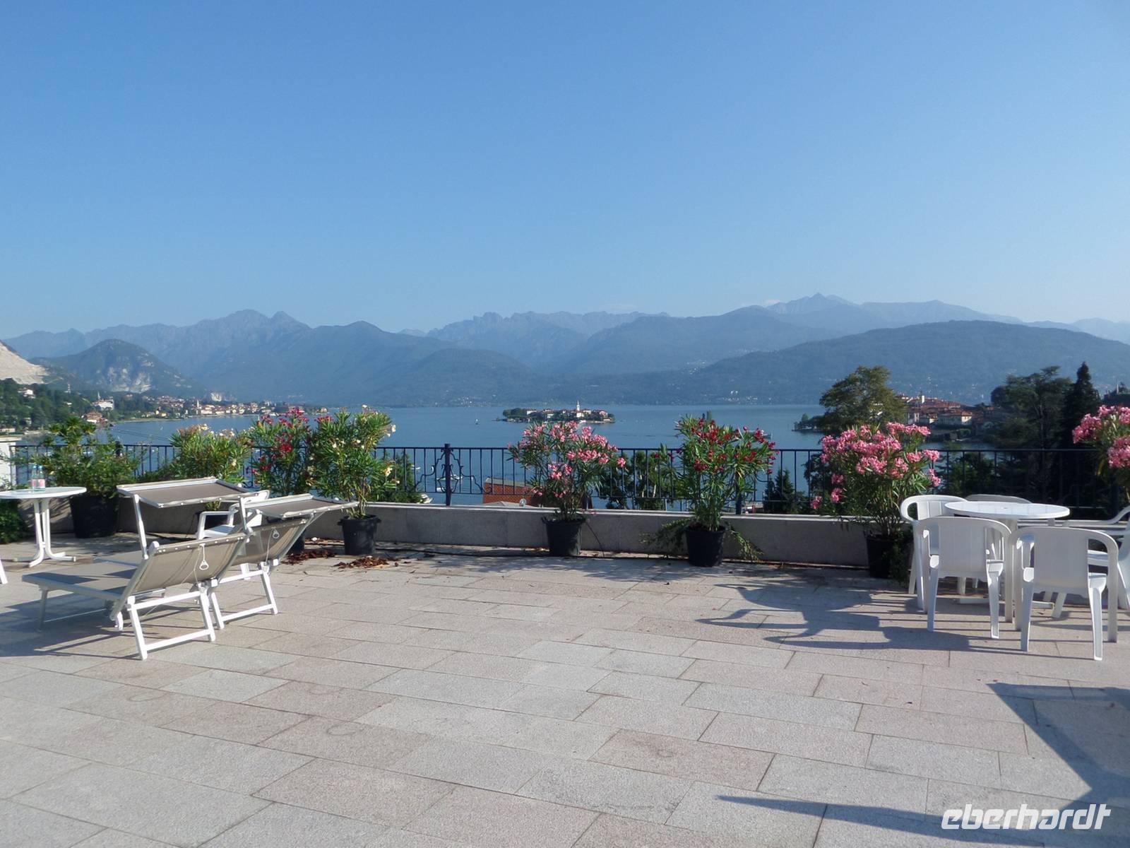 Heute können wir zu den Inseln im Borromäischen Golf fahren, die direkt vor unserer Haustür liegen, oder den Tag individuell verbringen. Fast alle Gäste lassen sich diese Gelegenheit natürlich nicht entgehen. In fünf Minuten sind wir an der Bootsanlegestelle und fahren mit einem Privatboot zur Isola Bella, der schönsten der vier Perlen im Borromäischen Golf, wie diese Inseln genannt werden. Alexandre Dumas schwärmte von der Insel - es sei ein Ort von unvergleichlichem Zauber!