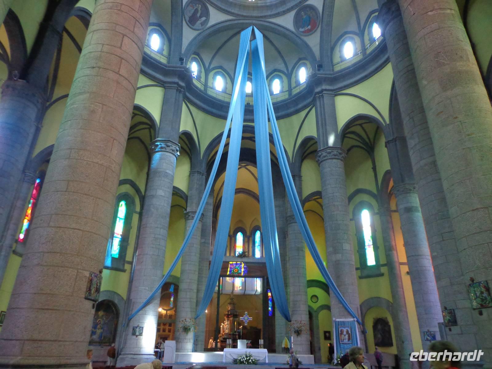 Die Kirche ist eine Kombination aus alter und neuer Kirche. Die Neue Wallfahrtskirche, aus Granit im byzantinischen Stil wurde 1956 geweiht. Im Inneren führen blaue Bänder den Blickfang in die Silberkuppel, welche 51 m hoch ist.