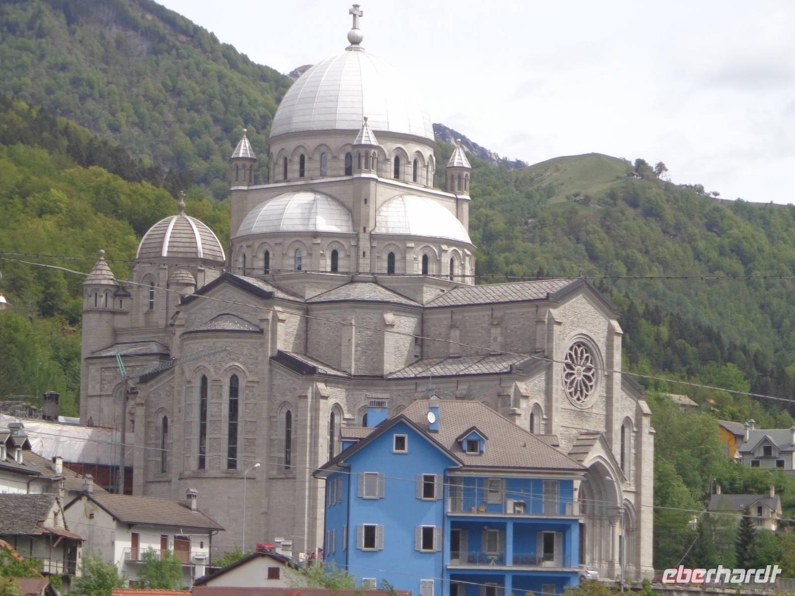 Nach einem reichhaltigen Frühstück bringt uns unser Bus an diesem Morgen nach Domodossola - Abfahrtsstelle für die Fahrt mit der Centovallibahn. Die Bahnreise durch einhundert Täler führt uns über 83 Brücken und durch 23 Tunnel. Während der Fahrt ist es ein bisschen schwierig das passende Fotomotiv zu finden, manch einer unserer Reisegäste drückt im falschen Moment auf den Auslöser seiner Kamera. Der Zug fährt durch eine wilde Landschaft, über die Hochebene von Santa Maria Maggiore und erreicht in Re schließlich den Bahnhof. Der Ort ist bekannt geworden durch die Wallfahrtskirche. Eine Legende beschreibt das ein Bewohner des Dorfes das Fresko mit der stillenden Madonna mit einem Stein beworfen hat, wonach die Madonna zu bluten anfing.