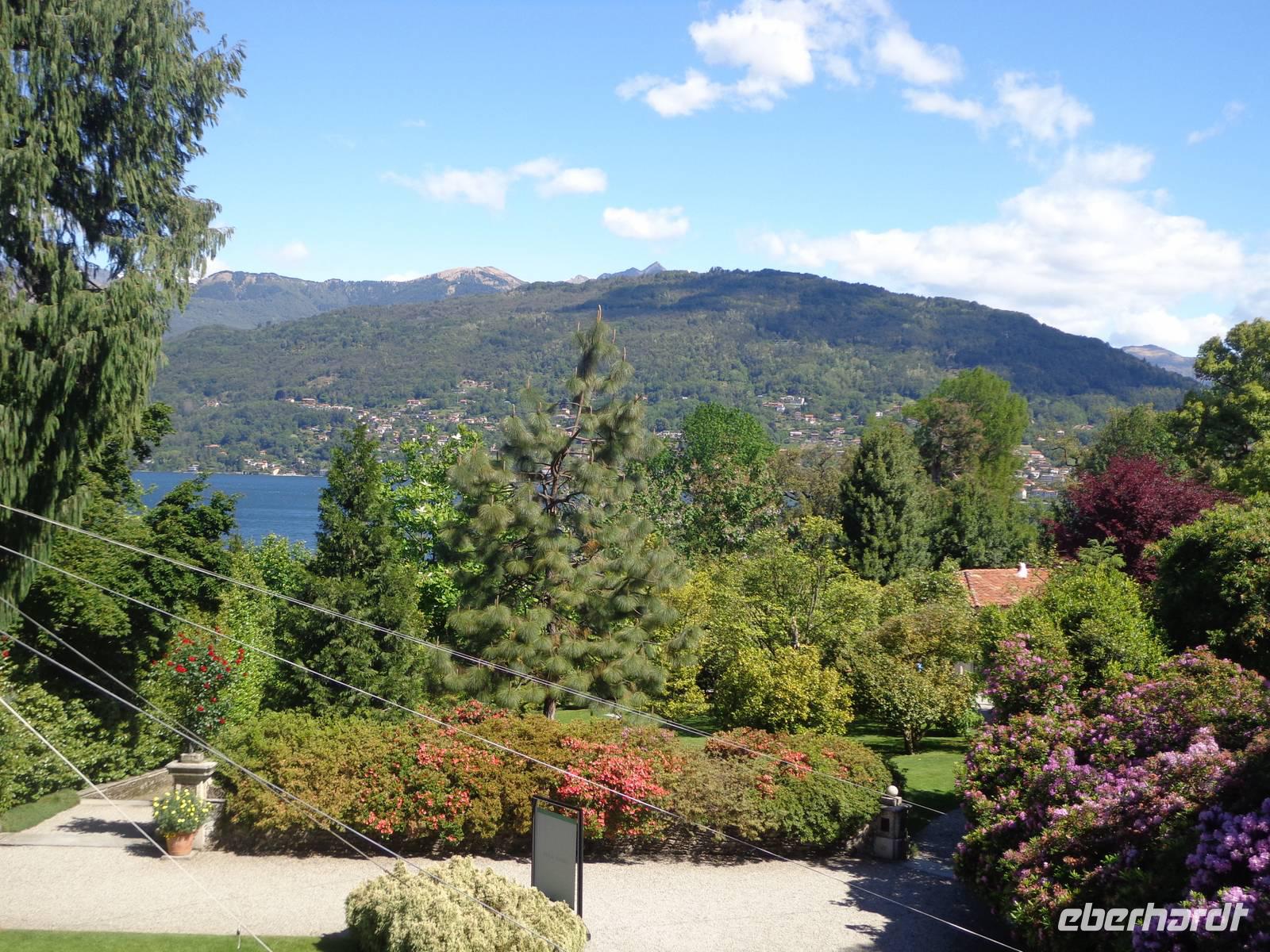 Der Ort hat eine prächtige Uferpromenade, auf der einen Seite die mondänen Hotels, die an Glanzzeiten erinnern, auf der anderen Seite der glitzernde See, mit Aussichten auf die Isola Bella.