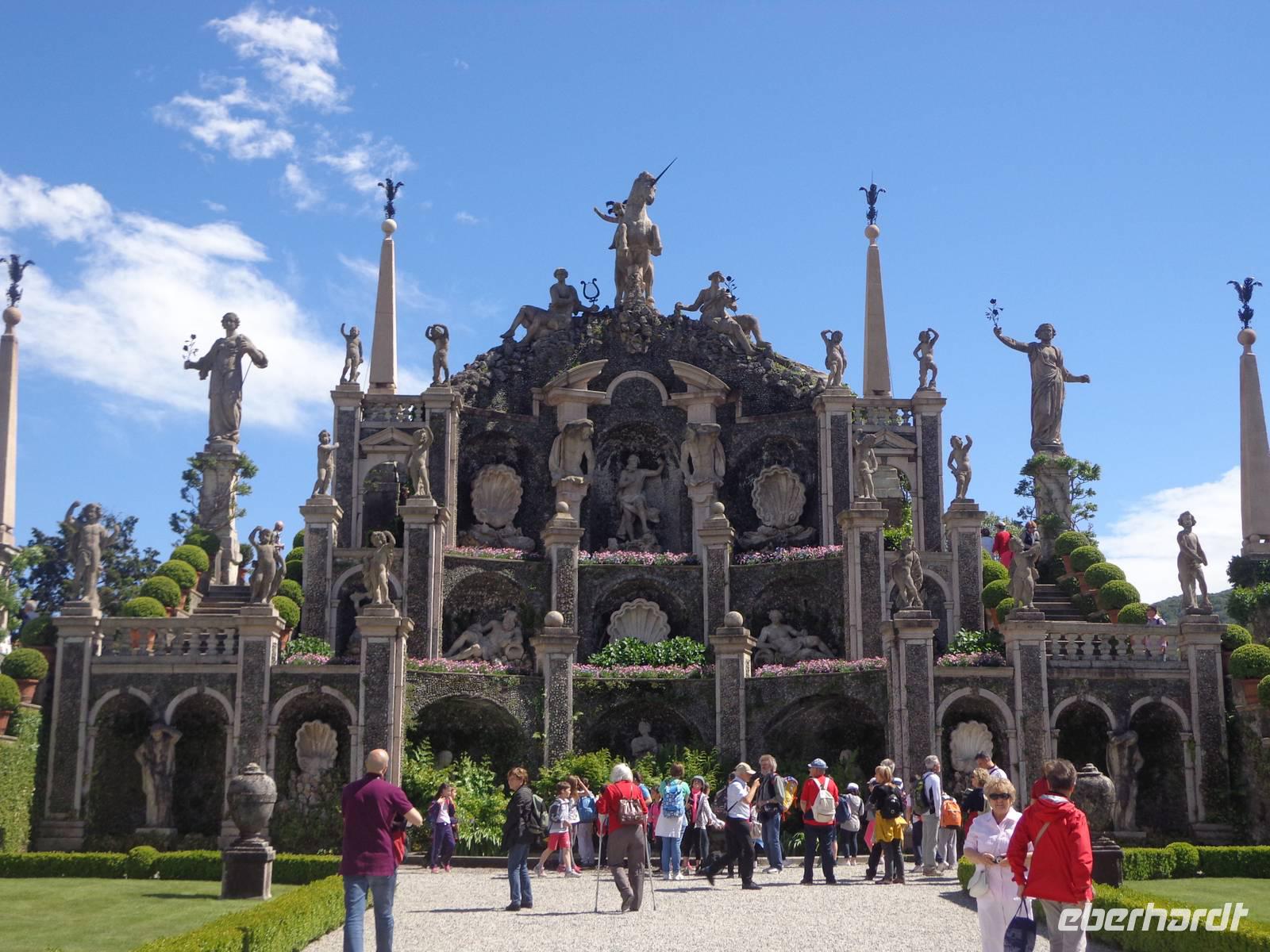 Die berühmteste der Inseln im borromäischen Golf ist ein von Menschenhand geschaffenes Kunstwerk. Ein Palazzo mit einem terrassenförmig angelegtem Barockgarten. Während der Besichtigung sehen wir u.a. den „Saal der Medaillen", den „Saal Napoleons", den Ballsaal, die Bibliothek und steigen schließlich in die Grotten hinab deren Wände und Decken mit Steinmosaiken versehen sind. Nach einem ausgiebigen Bummel durch den „Italienischen Garten" auf der Insel bringen uns die Boote zurück auf das Festland.