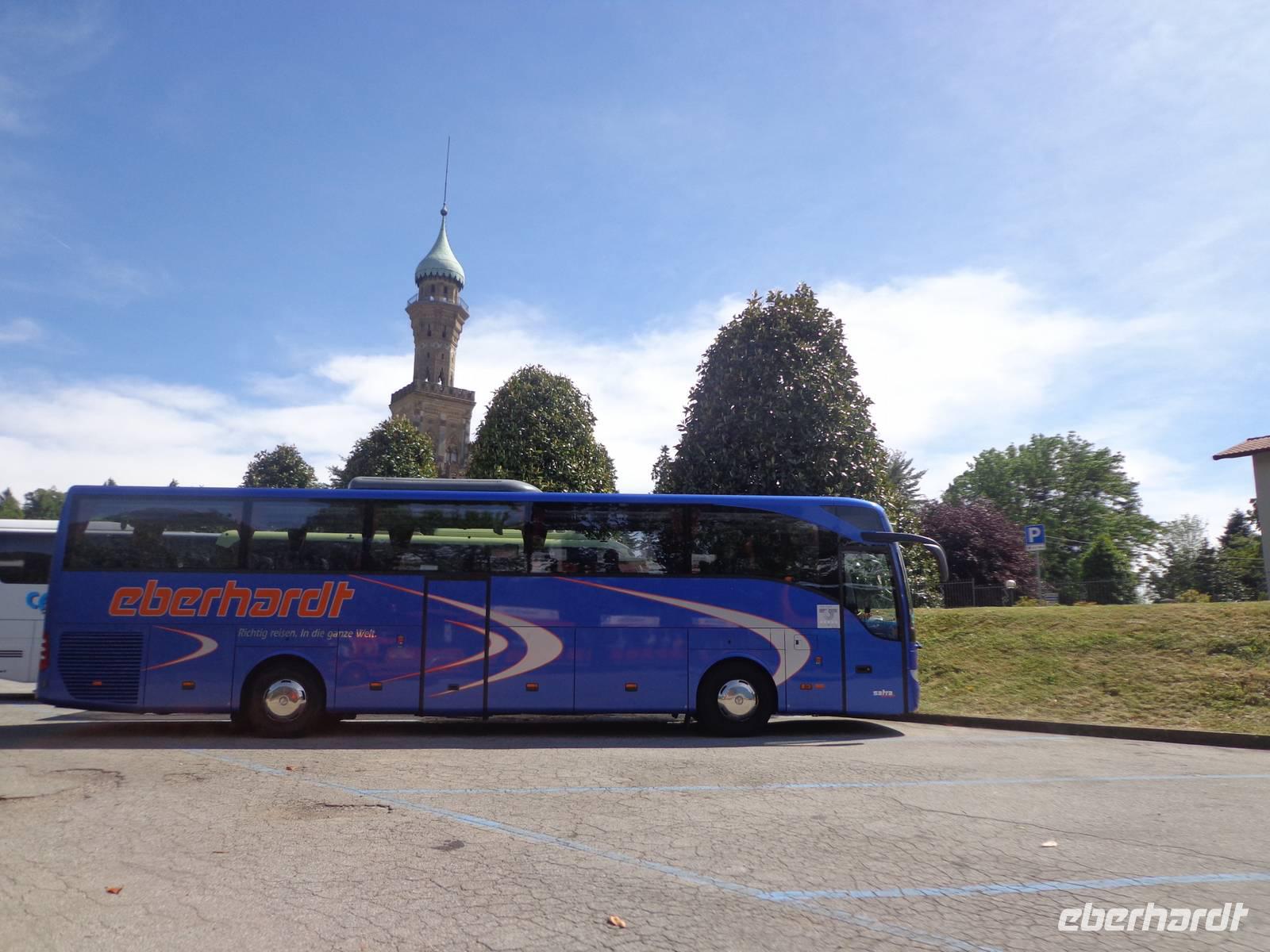 Am Vormittag besuchen wir den Wochenmarkt in Stresa. Er befindet sich etwas versteckt im kleinen Altstadtkern der Stadt. Hier gibt es viele Dinge zu kaufen. Angefangen vom frischen Obst und Gemüse, über Käse und Schinken bis hin zu Textilien, Taschen, Schuhen und Dingen des täglichen Bedarfs. Zur Mittagszeit fahren wir dann mit unserem Bus nach Orta. Unser Buschauffeur hat noch eine Überraschung für unsere Gäste; es gibt Bratwurst. Gut gestärkt bringt uns das „Bähnle" in Richtung Orta. Das letzte Stück laufen wir zu Fuß, denn die Altstadt von Orta ist für den öffentlichen Verkehr gesperrt. Von der Piazza Motta aus bringen uns zwei Boote zur kleinen Insel San Giulio. Markantes Bauwerk der Insel ist die romanische Basilika mit der barocken Ausstattung. Von hier führt ein Rundweg um die Insel - die Straße der Ruhe und Meditation. Unseren Gästen bleibt in Anschluss noch genügend Zeit um den beschaulichen Ort Orta zu geniessen, über die Piazza Motta zu spazieren oder über die Granitstufen zur Kirche Santa Maria Assunata zu gelangen. Mit der kleinen Bahn gelangen wir wieder an der Villa Crespi an, wo unser Bus parkt. Die Villa wurde Ende des 19. Jahrhunderts gebaut. Auftraggeber war die lombardische Unternehmerfamilie Crespi. Heute ist die Villa ein Hotel.