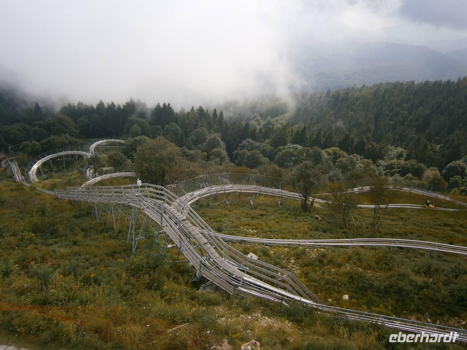 Unser Hotel liegt unweit der Talstation des Mottarone, der "Hausberg" von Stresa. Mit der Kabinenbahn fährt man bis zur Mittelstation. Von hier aus führt ein bequemer Weg zum Giardino Botanico Alpinia. Im Garten gedeihen ca. 1000 verschiedene botanische Pflanzen, vorwiegend aus dem Alpenraum. Je nach Jahreszeit entfalten sie ihre Blüten. Von einem Aaussichtspunkt aus genießt man einen wunderschönen Blick auf den Lago Maggiore und die Inseln im borromäischen Golf. Sie liegen dem Besucher sprichwörtlich zu Füssen. Von der Mittelstation aus fährt eine Kabinenbahn weiter bis auf eine Höhe in Metern. Seit dem Jahr 2009 gibt es die Möglichkeit mit dem Sessellift bis zum Gipfel (1419 m) hinauf zu fahren. Von hier aus hat man bei guter Sicht die Ausblicke auf die umliegenden sieben Seen und auf das Monte Rosa Massiv. Doch leider haben wir nicht die allerbesten Aussichten. Um den Gipfel ziehen immer wieder Wolken und wir können "nur" den Lago d'Orta und den Lago Maggiore erkennen. Die Aussicht auf den Lago di Varese, Lago di Mergozzo, Lago di Monate, Lago di Commabbio und den Lago di Biandronno bleibt uns verwehrt. Am Nachmittag haben unsere Gäste ausreichend Zeit um an der Uferpromenade entlang nach Stresa zu bummeln.