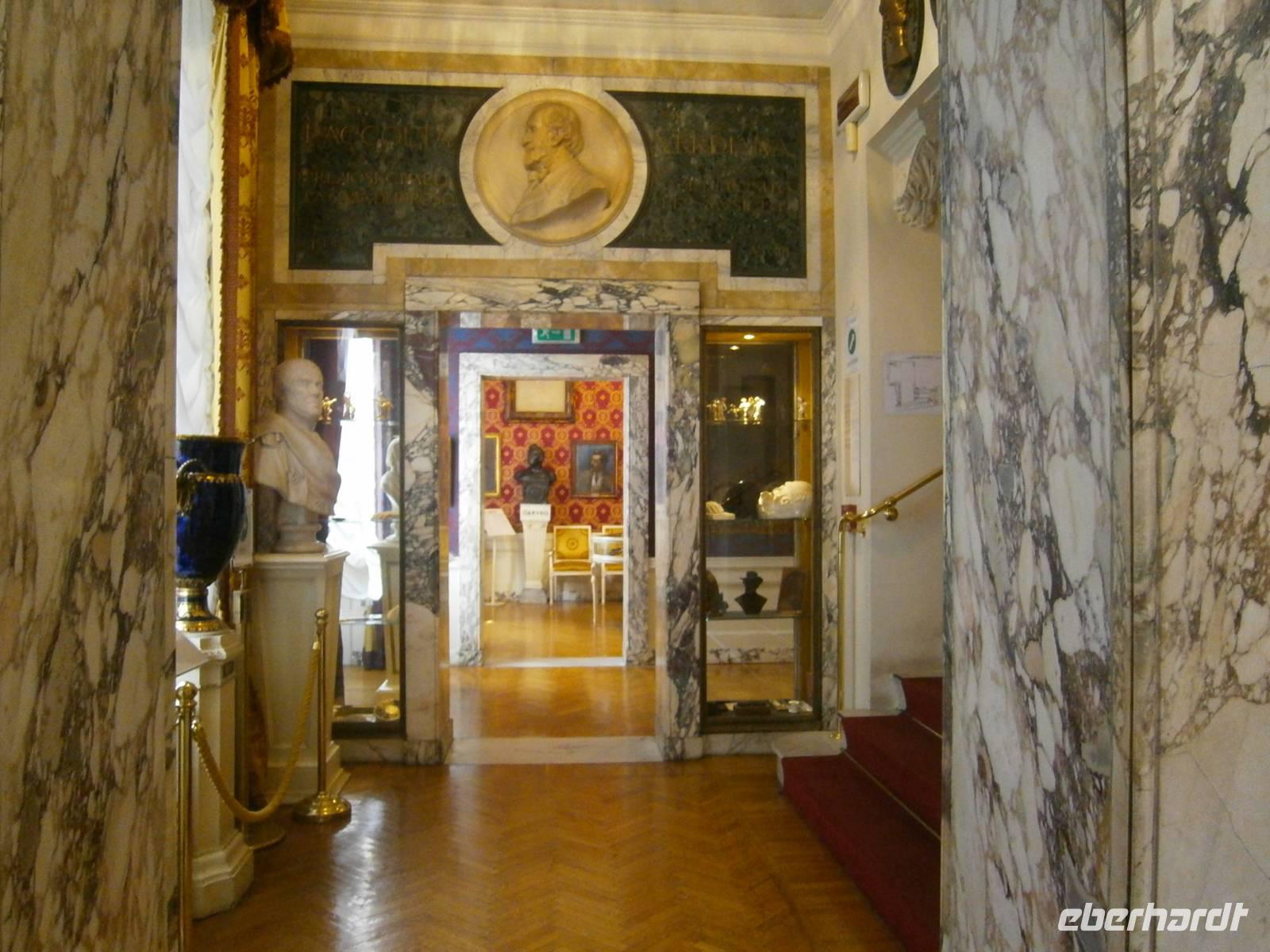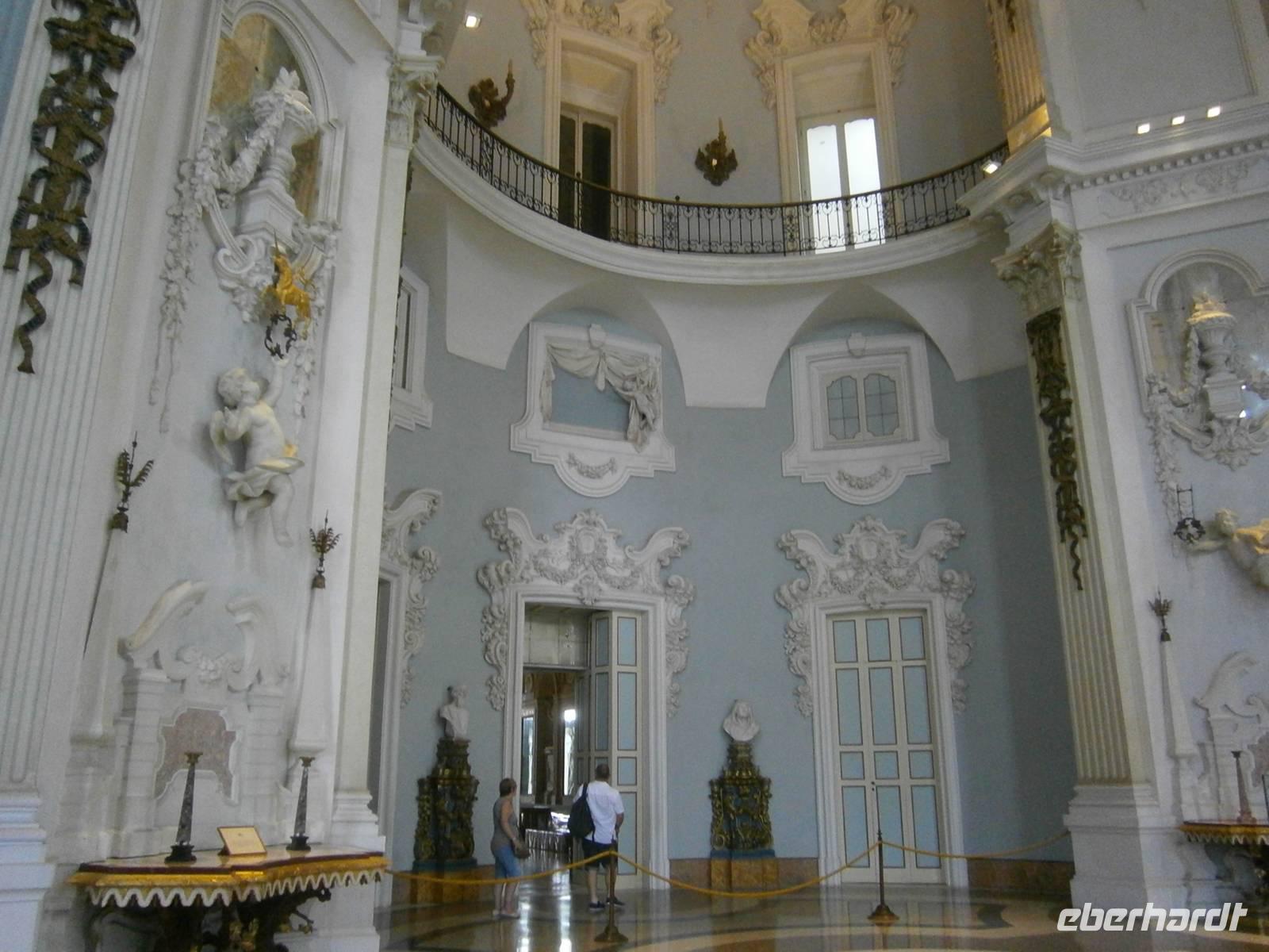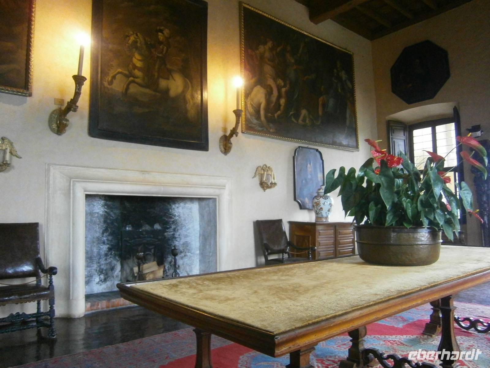 Privatboote bringen uns, nach der Mittagspause, zur Mutterinsel. Die Isola Madre - ist die Größte der vier Inseln. Auf ihr steht auch ein Palazzo der Familie Boromeo. In diesem wohnte man. Bestes Beispiel dafür sind die Kamine, die in fast jedem Zimmer noch heute vorhanden sind. Der Palast ist mit Möbeln ausgestattet die nicht zur ursprünglichen Einrichtung gehörten, vielmehr stammen diese aus den verschiedenen Palästen der Familie Boromeo in Mailand. Mit Anna, unserer Gästeführerin, besichtigen wir den Palast. Gobelins, Keramik, Gemälde aus dem 17. Jahrhundert zählen ebenso zu den Ausstellungsstücken wie auch das Marionettentheater und die Puppensammlung. Vor dem Palast erhebt sich eine prächtige Zypresse aus Kaschmir. In der Nacht zum 28. Juni 2006 fegte ein Sturm über die Isola Madre. Ihm konnte die Zypresse nicht stand halten und wurde aus ihren Wurzeln gerissen. Die umfangreichen Rettungsmaßnahmen haben sich gelohnt. Die Zypresse erholt sich von Jahr zu Jahr und ist eine der Hauptattraktionen der Insel. Die Gartenanlage auf der Isola Madre zählt zu den ältesten und wichtigsten in Italien. Auch hier stolzieren Fasane und Pfaue würdigen Schrittes durch den botanischen Garten und bieten so manch reizvolles Fotomotiv für unsere Gäste.