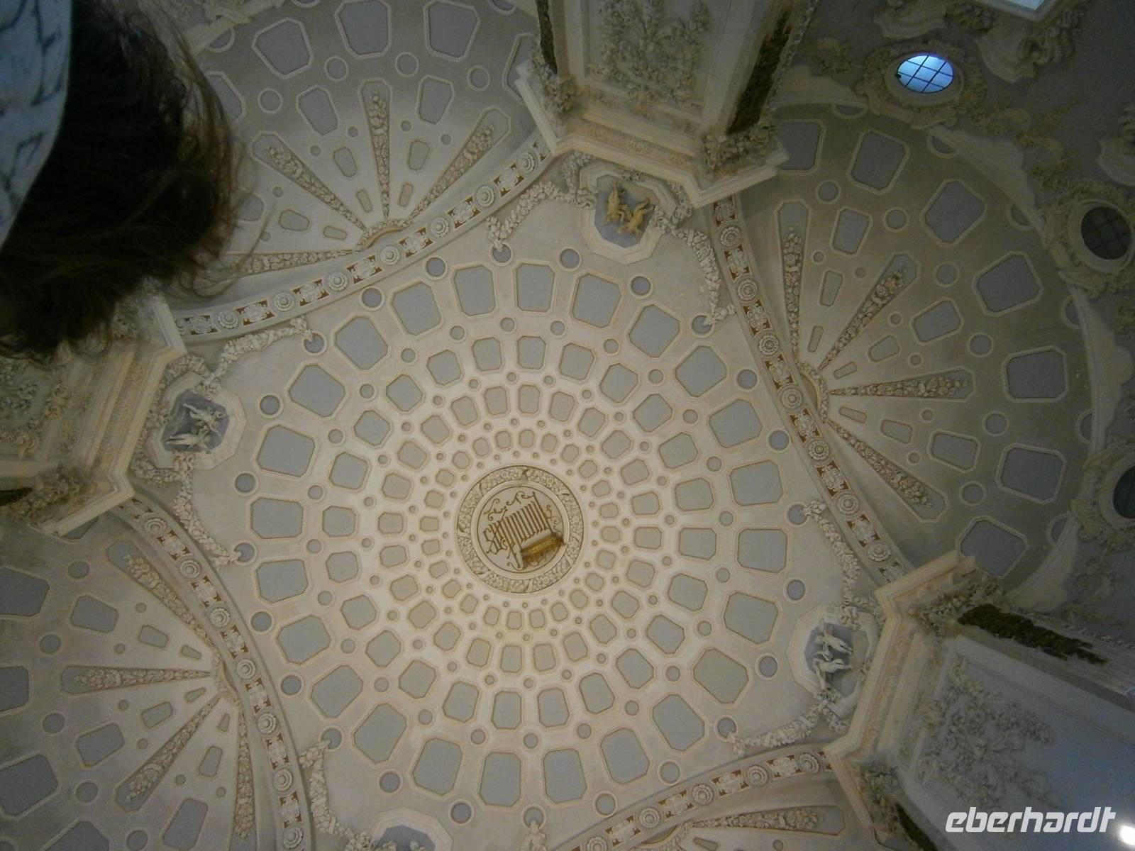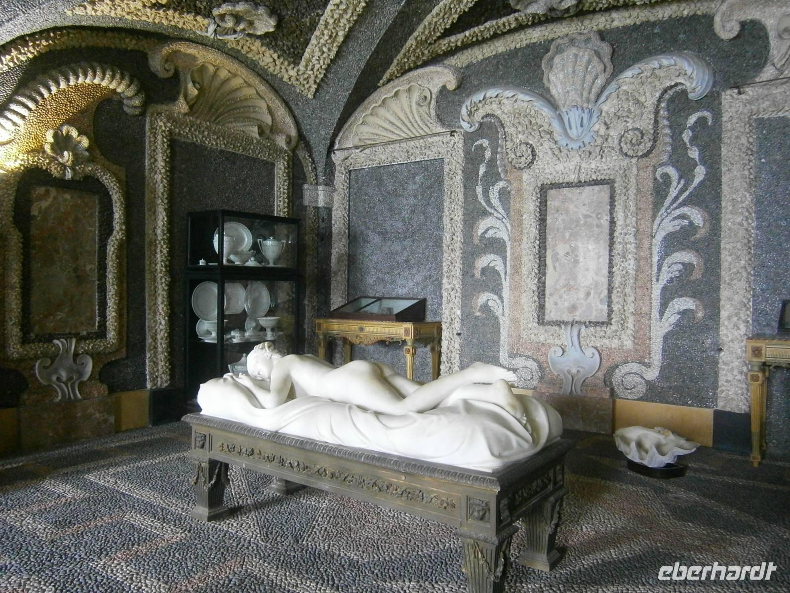 Die erste Insel, die wir besuchen, ist die Isola Bella. Carlo III. benannte die Insel, als Zeichen seiner Liebe, nach seiner Frau „Isabella von Adda". Gemeinsam mit dem Gästeführer Matteo besichtigen wir den Palazzo. Über den Treppenaufgang erreichen wir zuerst den Saal der Medaillen, dann den Saal der Musik und gelangen schließlich in das Zimmer von Napoleon. Im Saal der Zuccharelli, einem toskanischen Maler, sehen wir Bilder mit der Burg von Arona (hier wurde der Heilige Karl Boromeo geboren) und der Burg von Angera (Geburtsort von Kardinal Federico Boromeo). Im Konservationssaal bestaunen wir den Tisch in der Mitte des Saales. Die Tischplatte zieren allerfeinste Mosaikarbeiten, die eine Vielfalt von Blumen darstellt. Der Tisch war ein Geschenk von Papst Leo XII. an den Grafen Giberto Boromeo. Vom Tanzsaal aus steigen wir hinab in die Grotten. Die verschiedenen Grottensäle bestechen durch ihre meisterhafte Ausgestaltung mit Muscheln und Kieseln aus dem Lago Maggiore und als farblicher Kontrast dunkles vulkanisches Gestein. Durch den Saal der Wandteppiche erreicht man die Gartenanlage der Isola Bella. Mitte des 17. Jahrhunderts begann man mit den ersten Arbeiten und ein halbes Jahrhundert später war die gesamte Insel bepflanzt. Der Garten ist in zehn ineinander greifende Terrassen gegliedert. Auf dem höchsten Punkt, zirka 40 m über dem Lago Maggiore, befindet sich ein Einhorn - das Symbol der Familie Boromeo. Der Garten wird vervollkommnet durch Skulpturen, Wasserspiele und frei laufende Pfaue. Charles Dickens bezeichnete die Insel als „phantastisch und exzentrisch".