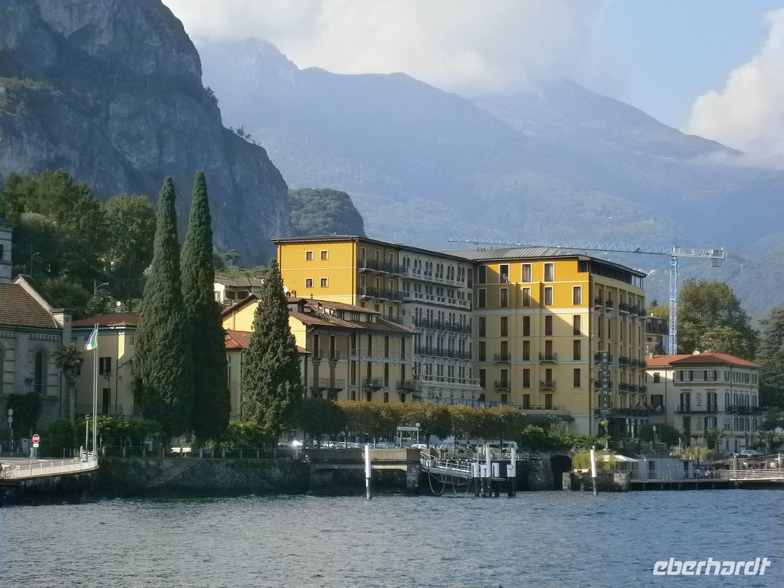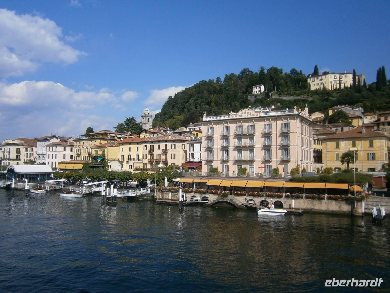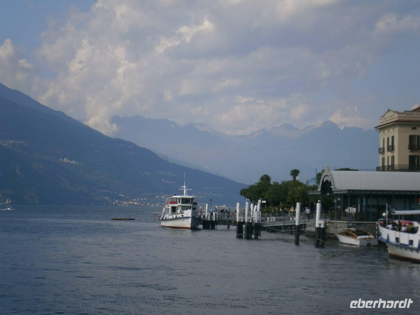 Von Caddenabbia aus fahren wir mit dem Linienschiff hinüber nach Ballagio, gelegen auf einer Halbinsel. Eingerahmt von den beiden Seearmen Lecco und Como, benannt nach den großen Städten am See. Der kleine charmante Ort, mit den romantischen kleinen Gassen, zählt zu den beliebtesten Reisezielen am See. So weilten unter anderem John F. Kennedy, Charlie Chaplin und Konrad Adenauer in Bellagio. Eine kleine Statue von K. Adenauer steht in der Nähe der Abfahrtsstelle der Fährschiffe. Unsere Fahrt führt uns weiter entlang des Comer Sees. Die Römer nannten ihn Lacus Larius, daher nennen ihn die Einheimischen auch heute noch „Lario". Der See ist zirka 50 km lang und an der breitesten Stelle knapp 4 km breit, hat eine Fläche von 146 qkm und ist somit der dritt größte See in Oberitalien. Durch seine reizvolle Lage zog er schon immer zahlreiche Bewunderer an. Giuseppe Verdi komponierte an seinen Ufern „La Traviata" und Stendhal ließ sich vom See berauschen „Wenn du nichts als ein Herz und ein Hemd besitzt, so verkaufe dein Hemd und stille dein Herz - reise an den See von Como."