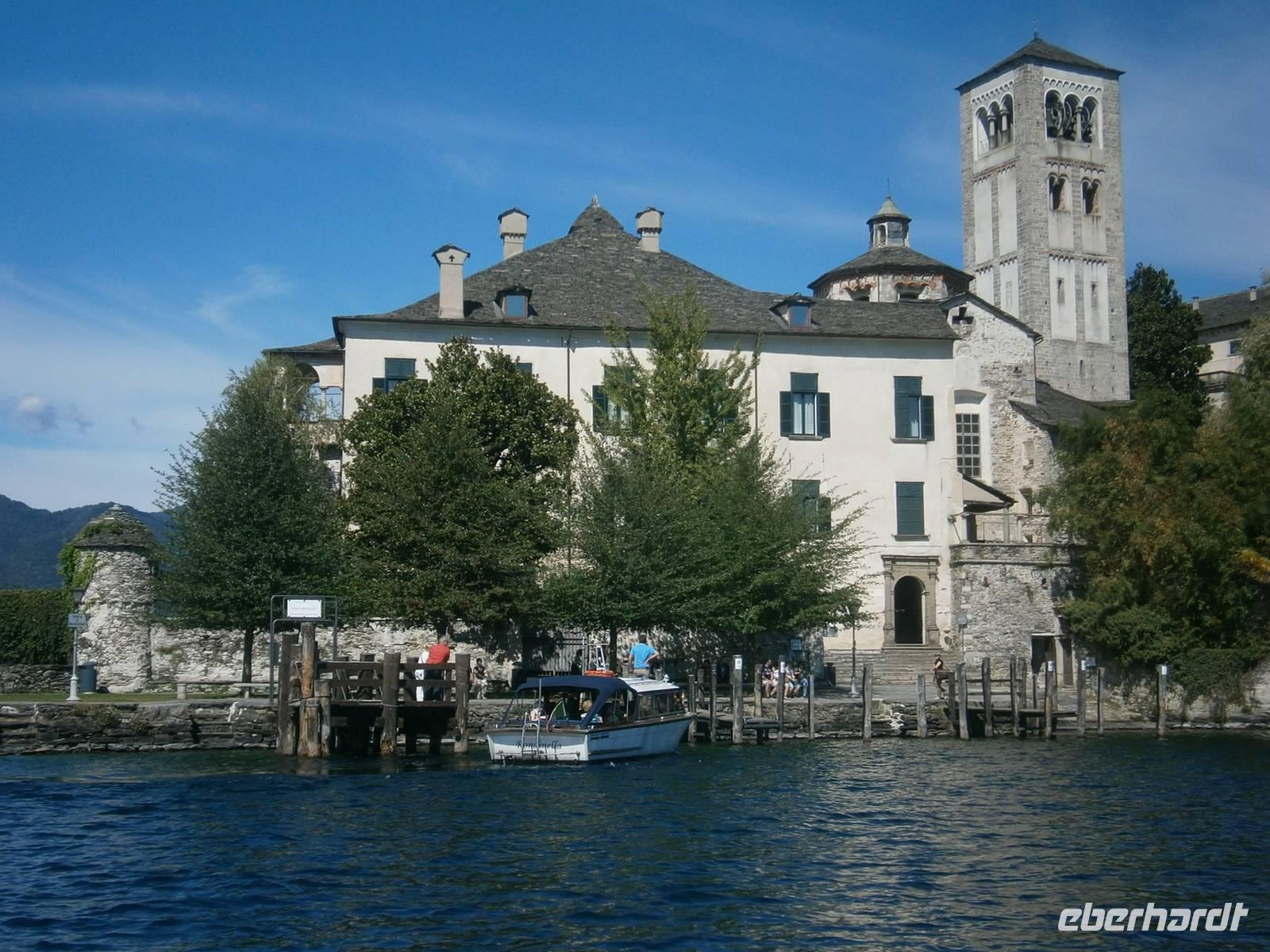 Mittelpunkt von Orta ist die Piazza Motta. Hier steht auch das ehemalige Rathaus, der Palazzo della Communita aus dem 16. Jahrhundert mit offenem Laubengang und Wandmalereien an der Außenfront. Von der Piazza aus starten wir mit zwei Booten zur Insel San Giulio. Markantes Bauwerk der Insel ist die romanische Basilika mit der barocken Ausstattung. Von hier führt ein Rundweg um die Insel - die Straße der Insel ist ein Weg der besonderen Art. Er beginnt an einer Stelle und kehrt zu ihr zurück. Den Weg der Stille und den Weg der Meditation begleiten kleine Tafeln mit verschiedenen Sprüchen. Zum Beispiel; „Höre der Stille zu" - „Lausche auf das Wasser, auf den Wind, auf deine Schritte..." - „Wenn du es erreichst, das zu sein was du bist, dann bist du alles" - „Sei einfach, sei wie du bist".