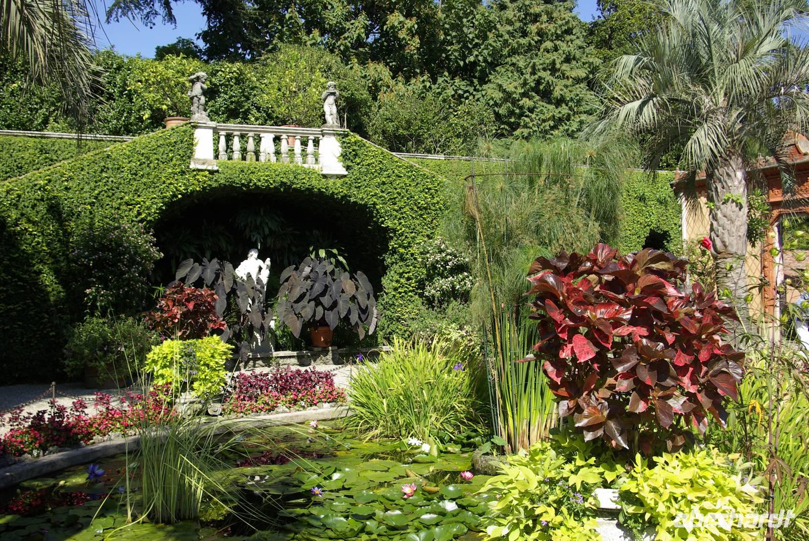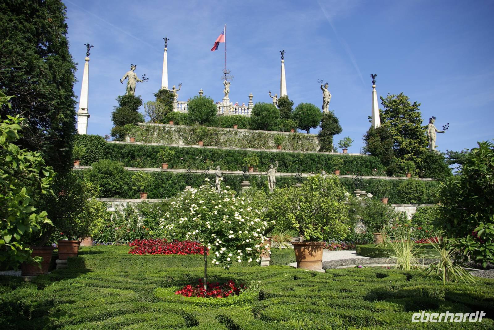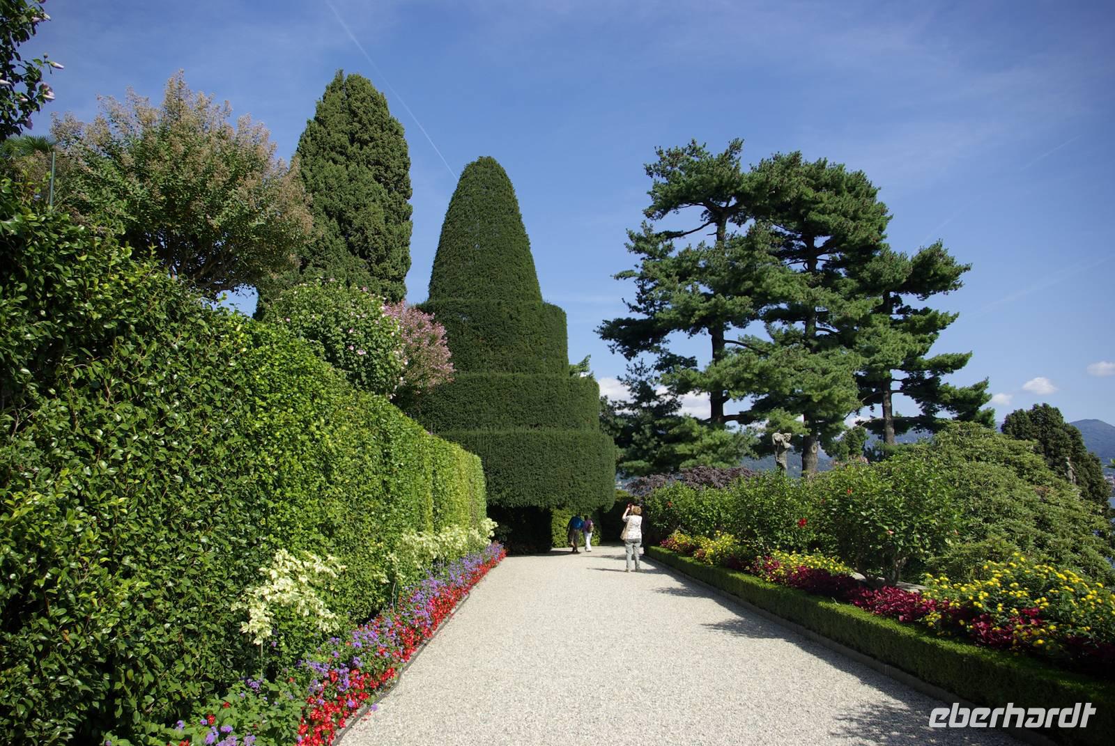 Ab 1501 begann Lancilotto Borromeo, einer der fünf Söhne von Giovanni III Borromeo und Cleofe Pio di Carpi, auf der Insel Zitrusfrüchte zu züchten, die er zusammen mit einem Gärtner aus Ligurien kommen ließ. Er befahl außerdem den Bau eines Herrenhauses, das zum Kern der Palastanlagen werden sollte, die ab 1580 unter Renato I. Borromeo im Renaissancestil erweitert wurden. Ab etwa 1823 bis 1825 wandelten Giacomo und Francesco Rovelli, Gartenbauer aus Monza, die kultivierten Teile der Insel in einen Landschaftsgarten im Englischen Stil um und bewahrten damit auch den ursprünglich erhaltenen Wald im Nordwesten der Insel. Dies geschah auf Anregung der Grafen Giberto V Borromeo und Vitaliano IX Borromeo Arese. Der Englische Garten auf der Isola Madre gilt als herausragendes Beispiel von Gartenbaukunst in Italien. Nach einer humorvollen Palastführung konnte man den Garten mit seinen seltenen Gehölzen und den exotischen Vögeln individuell erkunden, bevor die Boote wieder zurück nach Stresa fuhren. Der letzte Tag stand ganz im Zeichen der Heimfahrt. Während fats die gesamte Reisezeit ein herrlicher Sonnenschein unser Begleiter war, weinte nun der Himmel in zunehmendem Maße über unsere Heimreise.