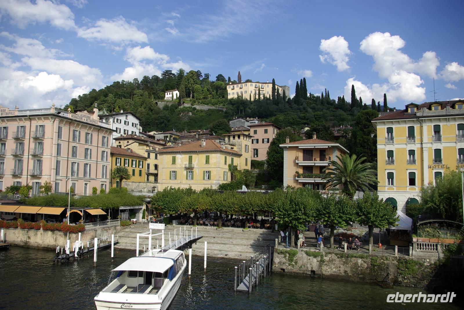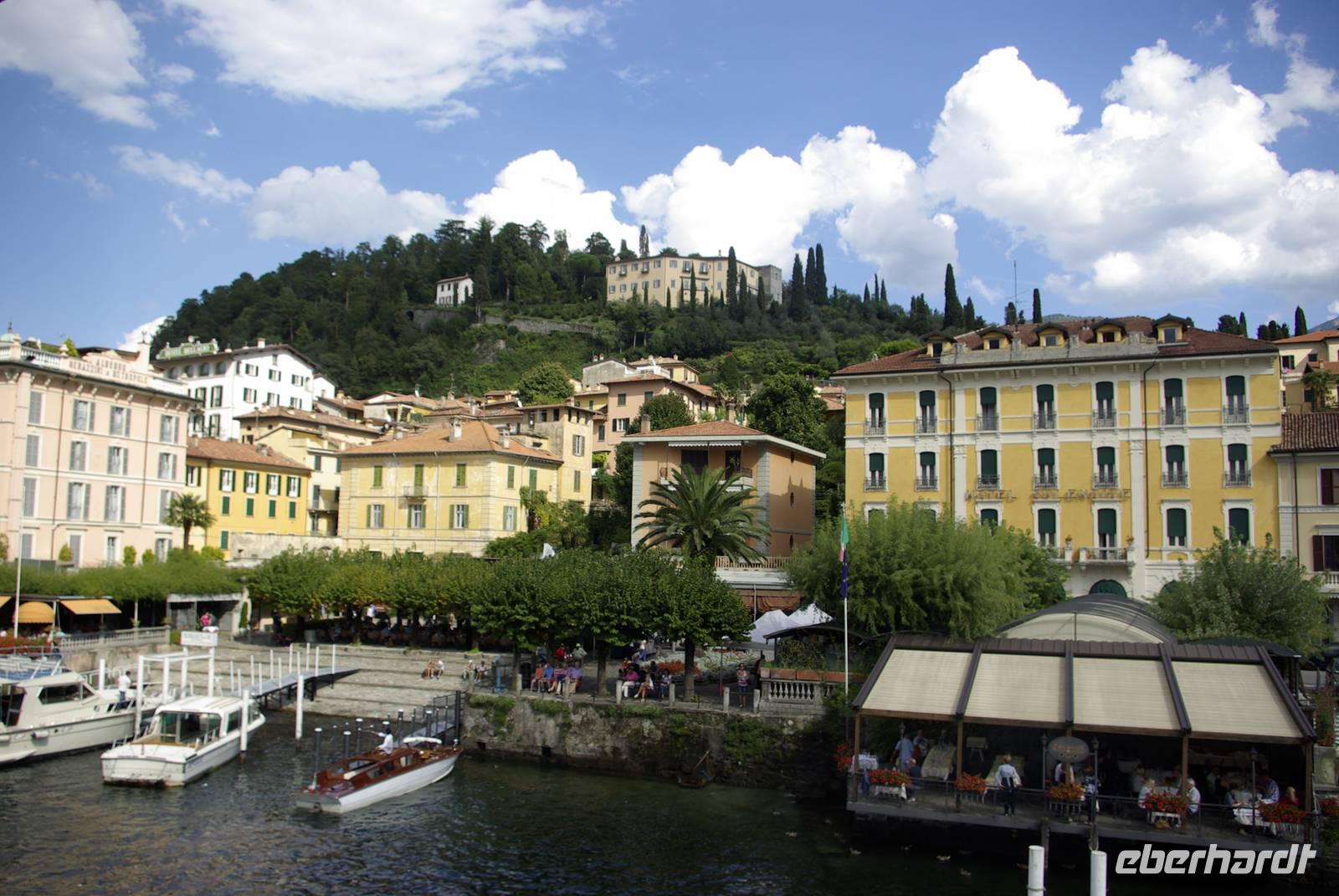 Nach dem Aufenthalt in dieser eher mondän wirkenden Stadt fuhren wir nach Cadenabbia und von dort mit dem Fährschiff ans andere Ufer nach Bellagio. Der Ort ist bekannt für die malerische Lage mit Blick auf die Alpen an der Spitze der Halbinsel, die die zwei südlichen Arme des Sees trennt. In der dortigen Villa Serbelloni hat das Bellagio Center der Rockefeller-Stiftung ihren Sitz. Sehenswert sind auch die romanische Kirche San Giacomo und die Villa Melzi mit ihrem Garten und dem berühmten Denkmal von Dante und Béatrice.