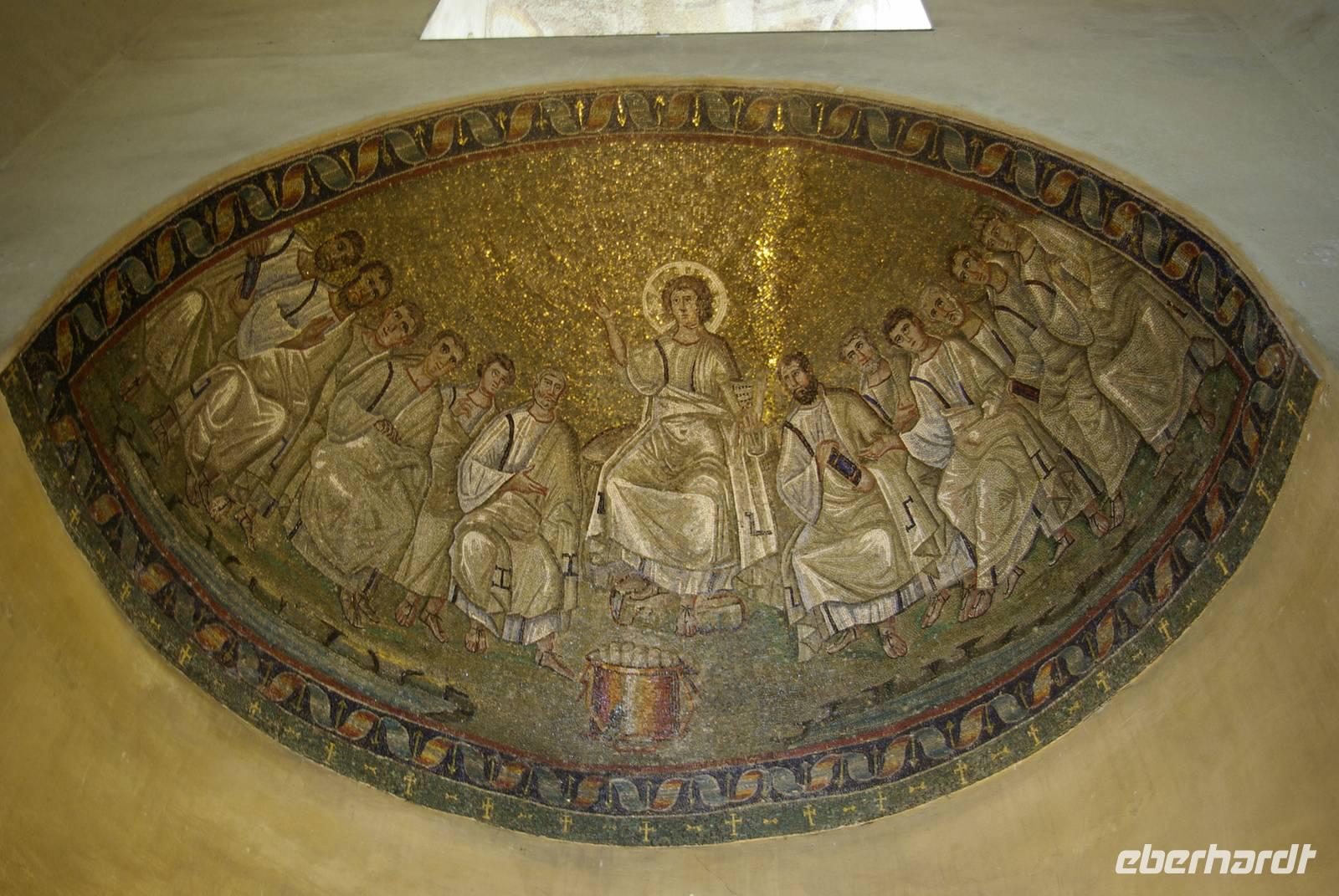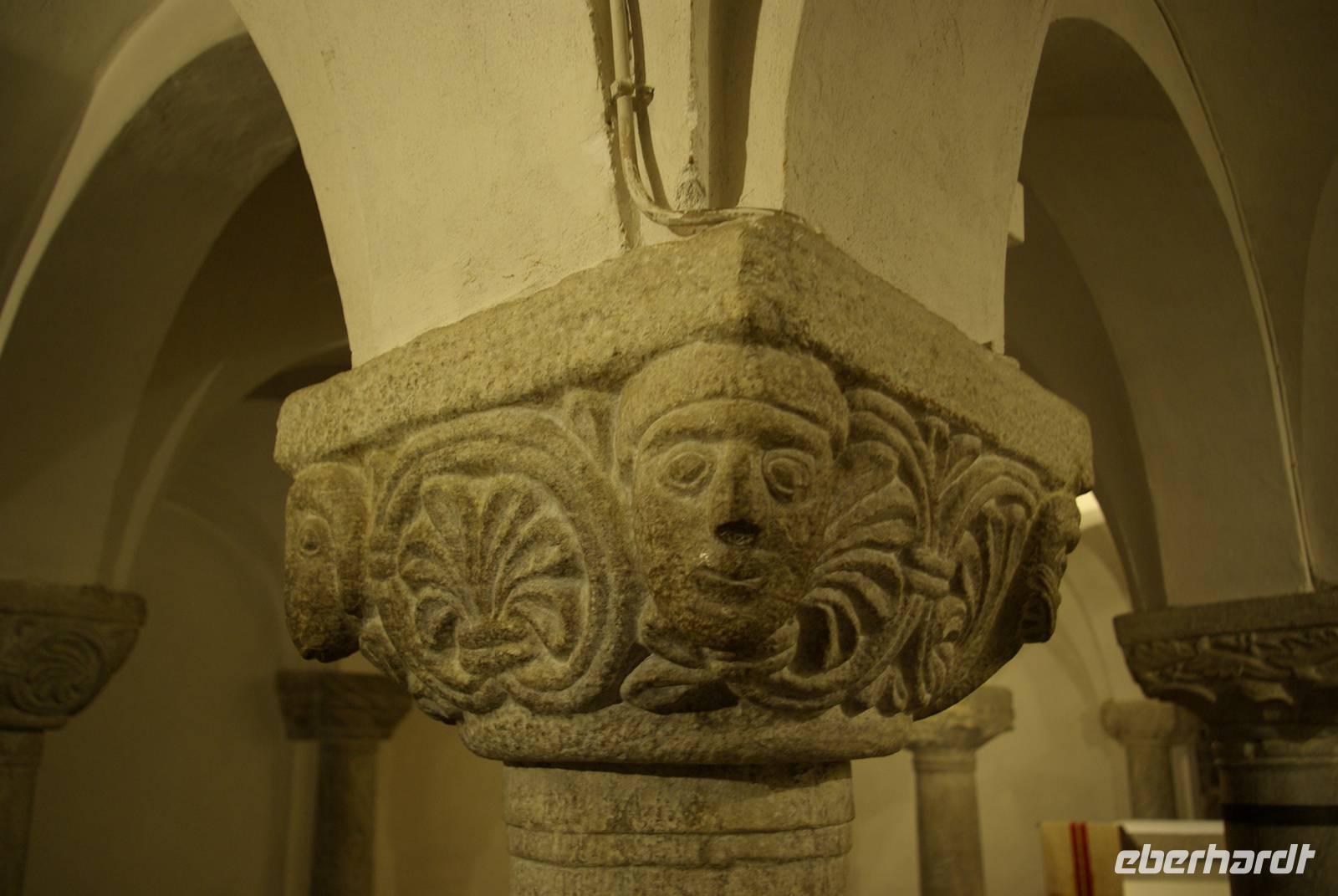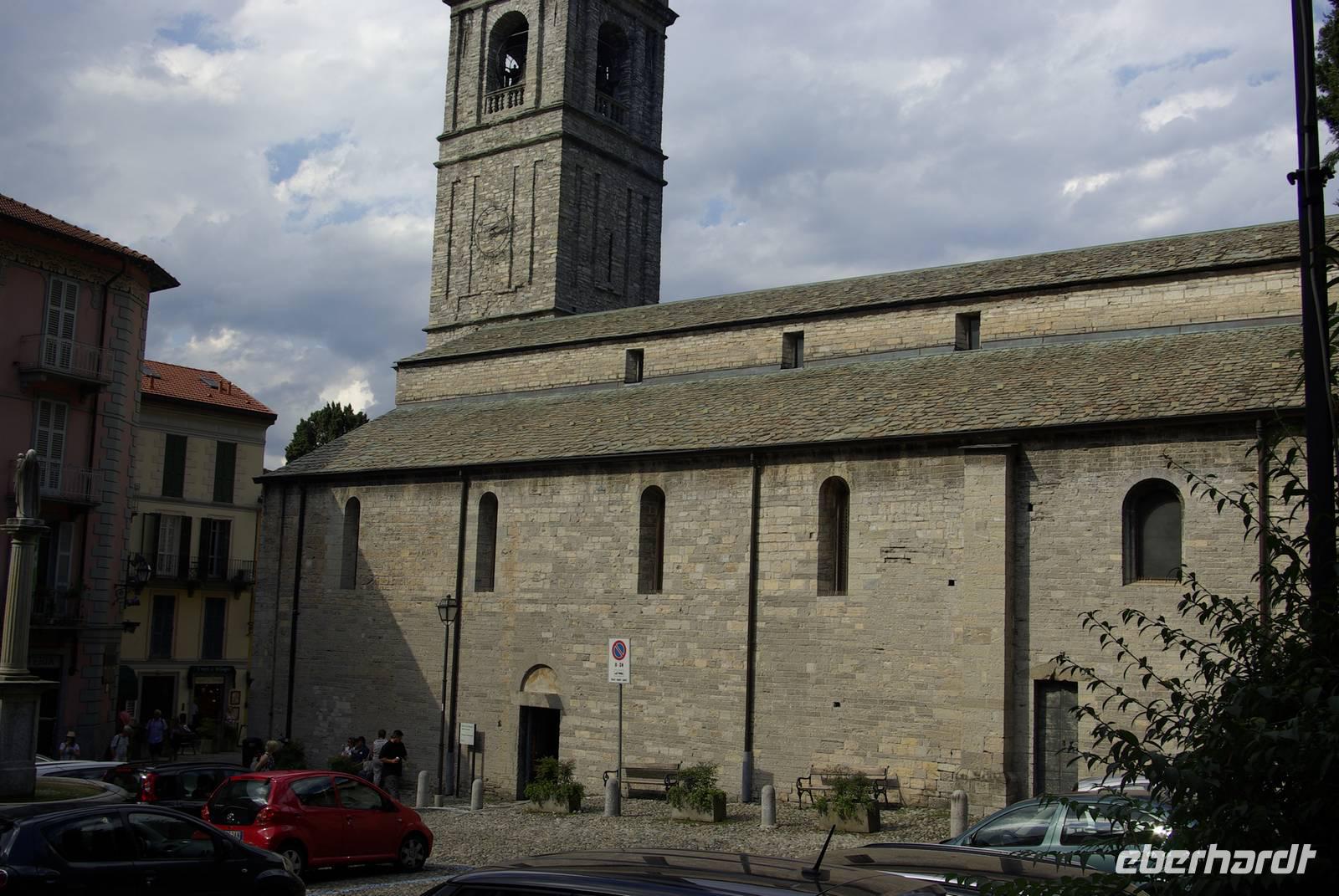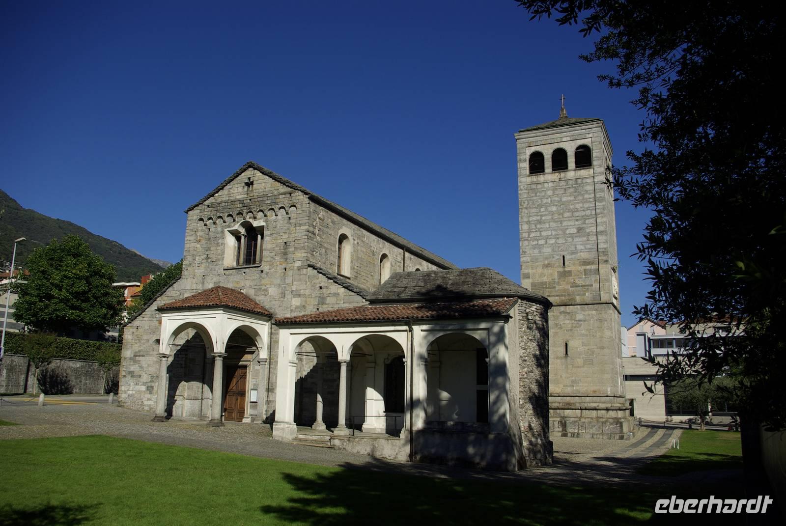 Wir fuhren mit einer kleinen Bahn vom Busbahnhof Orta hinunter zum See und mit einem Boot zur Insel, wo wir direkt vor der alten Klosterkirche anlandeten. Die dreischiffige Kirche mit romanischem Gepräge wurde im 12. Jahrhundert nach dem Vorbild der alten Kathedrale von Novara errichtet. Innen befindet sich ein wertvoller Ambo aus grünem Serpentinmarmor aus Oira, der von vier älteren Säulen getragen wird und ein Meisterwerk der romanischen Bildhauerei des 12. Jahrhunderts darstellt. Der Ambo ist mit den vier Symbolen der Evangelisten und Szenen des Kampfes zwischen Gut und Böse verziert.